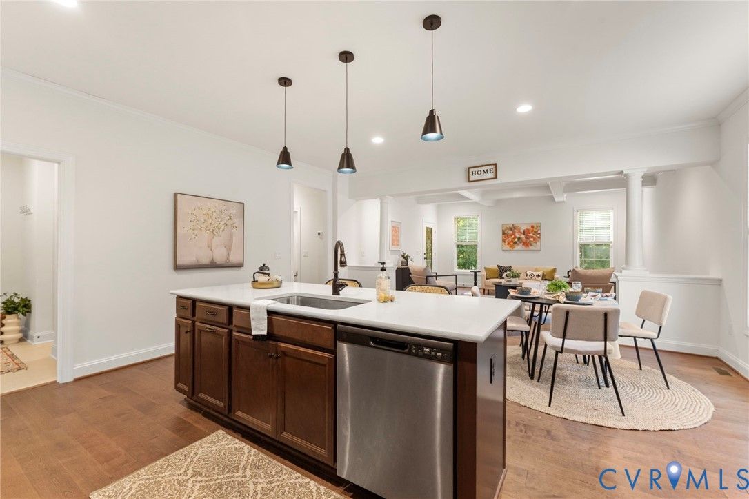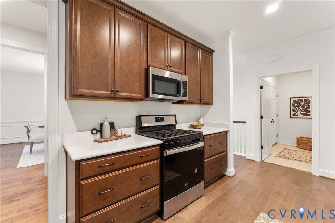 - Butler Pantry, Separate/Formal Dining Room, Double Vanity, Eat-in Kitchen, High Ceilings, Kitchen Island, Bath in Primary Bedroom, Main Level Primary, Pantry, Recessed Lighting, Solid Surface Counters, Walk-In Closet(s)