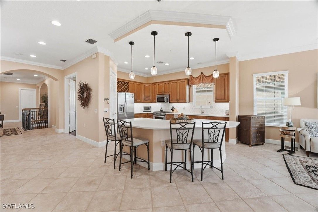 Discover the perfect blend of elegance, comfort, and resort-inspired living at 9134 Cherry Oaks Dr Unit 201, an expansive 3-bedroom + den, 3-bath coach home boasting over 3,000 sq ft of beautifully designed living space. Set within the award-winning community of Fiddler’s Creek, this residence feels like a private retreat yet offers every modern convenience you desire. Step inside to soaring ceilings, abundant natural light, and an inviting great room anchored by refined finishes and architectural detail. The chef-style kitchen features stainless steel appliances, ample counter space, and a welcoming layout ideal for both daily living and entertaining. A versatile den serves perfectly as a home office or media space, while multiple guest suites offer comfort and privacy for visitors. The private screened lanai extends your living space outdoors, capturing peaceful lake and golf-course views, ideal for morning coffee or sunset cocktails. Added luxuries include impact-resistant windows and doors, electric hurricane shutters, and a private elevator, elevating both ease and peace of mind. Fiddler’s Creek offers a true resort-style experience with a 54,000 sq. ft. Club & Spa, a lagoon-style multi-pool complex, state-of-the-art fitness center, full spa services, and an active social calendar. Outdoor recreation thrives with Har-Tru tennis courts, pickleball, bocce, and miles of walking and biking trails surrounded by preserved nature. Optional memberships expand the lifestyle even further, including access to the award-winning Creek Championship Golf Course, the Tarpon Club private beach pavilion, and marina facilities for boating and Gulf access. Dining is exceptional with poolside and fine-dining options right inside the gates. Fiddler’s Creek blends luxury, activity, and natural beauty for a private, resort-rich way of life.