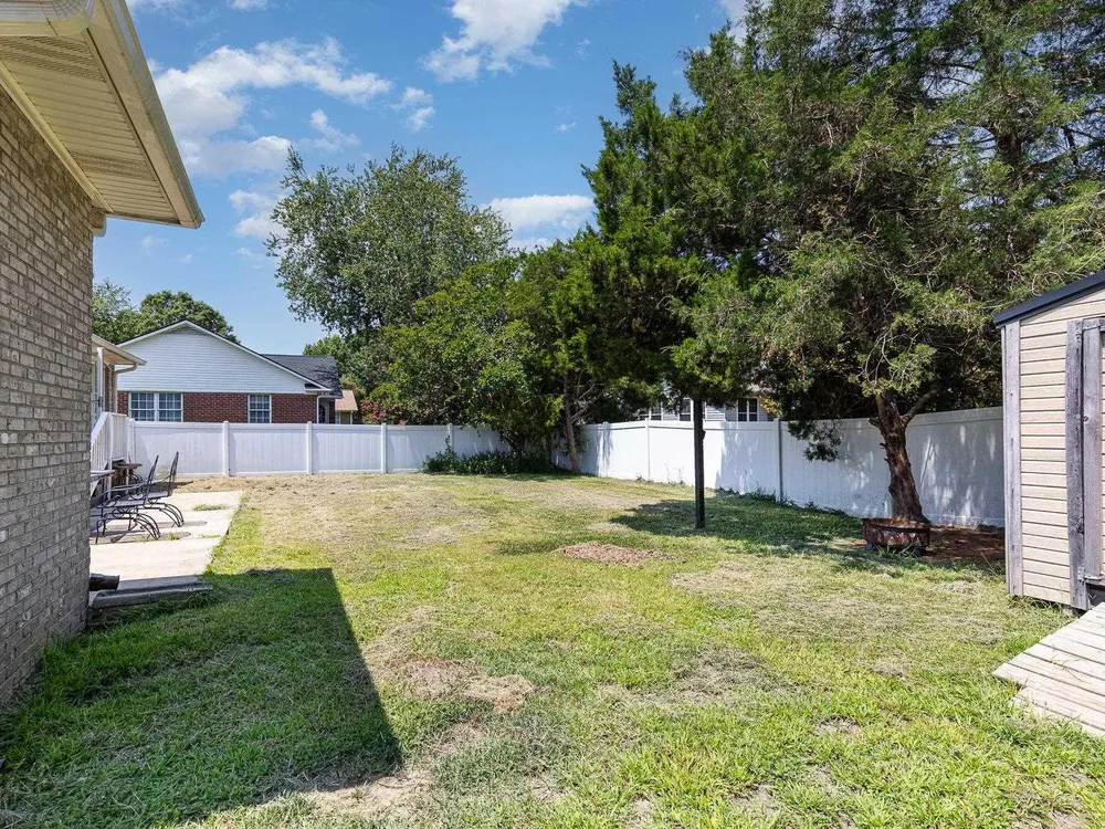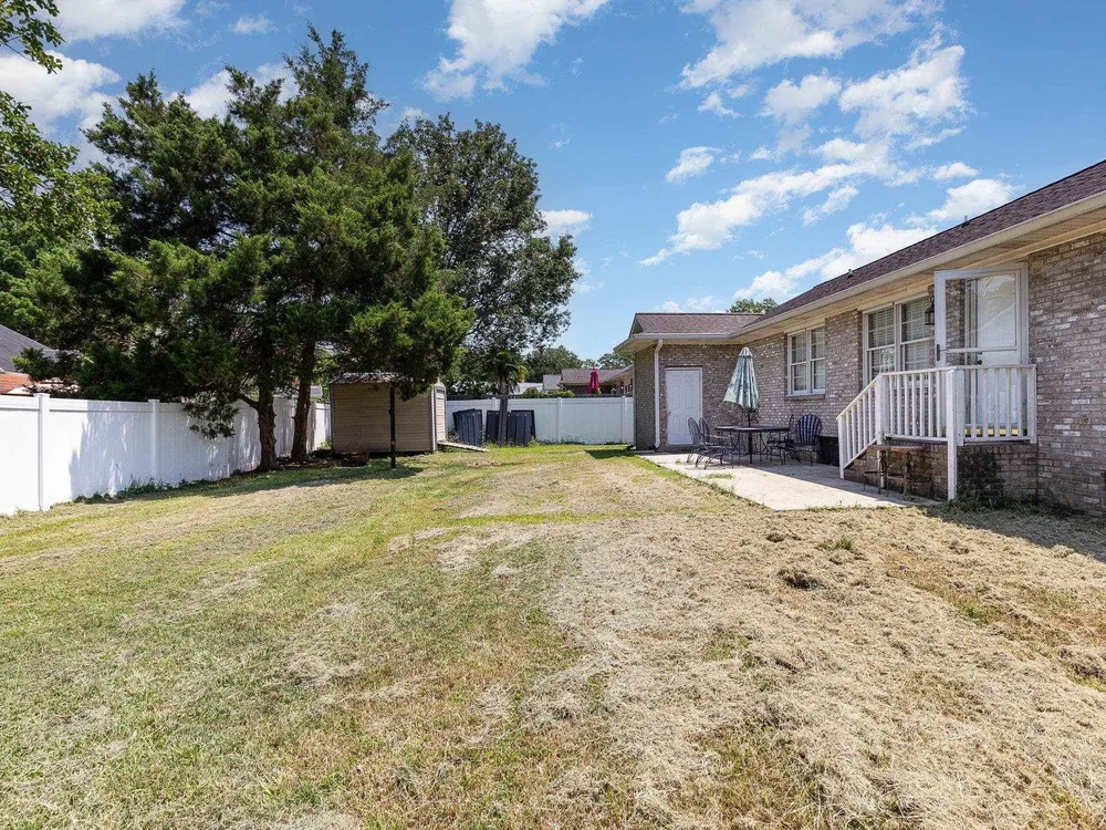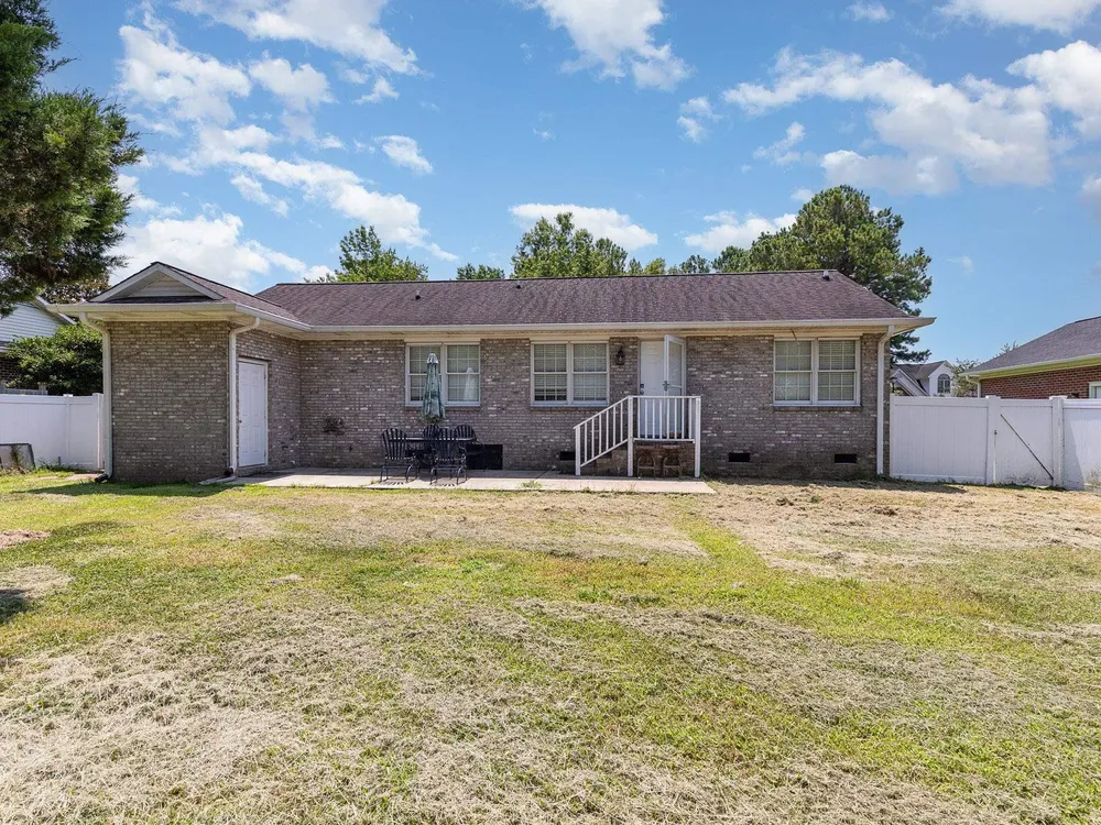 Majestic cottage nestled in Low country oaks , Discover the charm of this delightful Three-bedroom, Two bathroom home nestled in the quaint neighborhood Meadow woods. This residence offers an inviting open floor plan with plantation shutters . Enjoy as you step outside to your own private oasis- a partially fenced backyard complete with concrete pad perfect for grilling among the lush trees and plants. Lovely all brick home located in established community of Meadow woods. This single level 3 bedroom, 2 bath home has a large living room with ceiling fan and LVT tile flooring. Ceiling fans in all bedrooms. Large Master bedroom . large linen closet and double vanity sink. All stainless appliances and an eat in kitchen with wall chair railing. Home has a separate laundry room with installed cabinets. Private and beautifully landscaped fenced backyard. Attached outside storage This home also has custom Hurricane shutters and mounts installed. Owners can host private gatherings at the Meadow woods clubhouse. HOA provides secure storage for RV or boat parking. Meadow woods is conveniently located within close proximity to some of the finest beaches on the east coast, shopping, medical and great restaurants! ! Don't miss the opportunity to make this gem your home. All measurements and square footage are approximate and should be verified by the buyer's agent