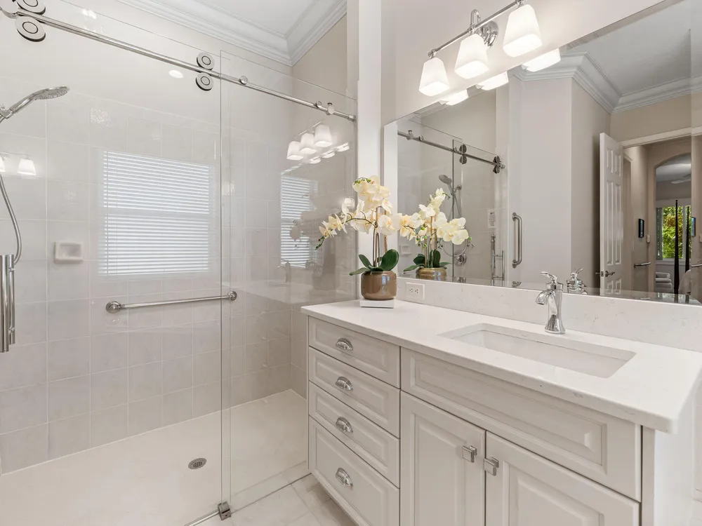 - Closet Cabinetry, Entrance Foyer, Pantry, Split Bedrooms, High Ceilings, Walk-In Closet(s), Attic, Family Room, Great Room, Breakfast Area, Kitchen/Dining Combo, Snack Bar, Dual Sinks, Primary Downstairs, Separate Shower, Bathtub, Storm Shutters, Washer/Dryer Hookup