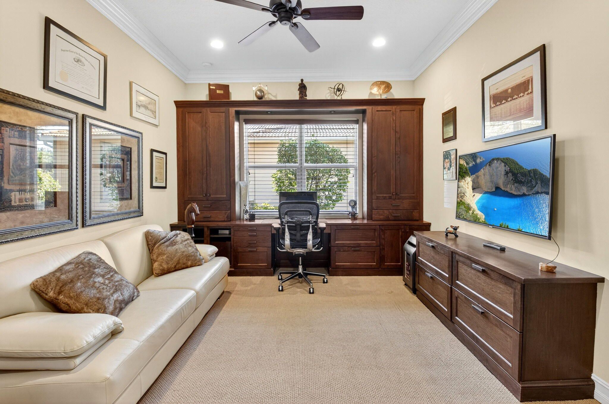- Bar, Custom Mirrors, Entrance Foyer, Kitchen Island, Pantry, Split Bedrooms, High Ceilings, Walk-In Closet(s), Home Office, Family Room, Family/Dining Room, Separate/Formal Dining Room, Snack Bar, Dual Sinks, Primary Downstairs, Separate Shower, Bathtub, Storm Shutters