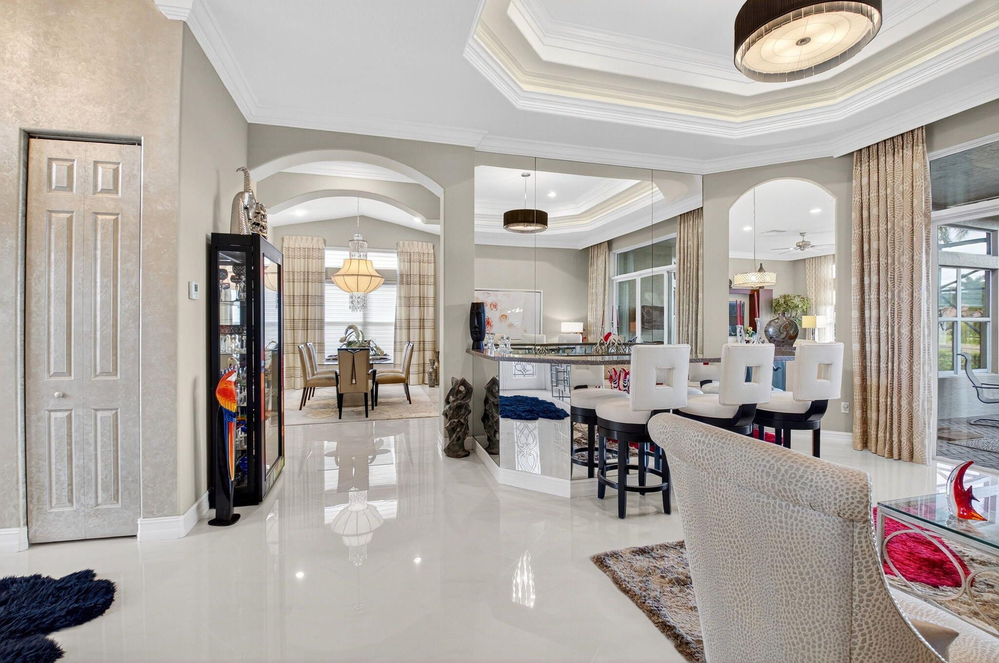 Step inside this exceptional lakefront residence, 3 Bedrooms + Den, and feel the shift--the calm, the space, the quiet luxury that only a truly special home can offer. From the moment you enter, your eyes are drawn to the massive, shimmering lake, setting the stage for a lifestyle centered around beauty and ease.Mornings begin on the expansive screened-in lanai, coffee in hand, watching the water come alive. Evenings are spent with friends gathered in the sophisticated living room, complete with its own custom bar, where conversation flows as effortlessly as the view outside.Every corner of this home tells a story of thoughtful design and no-compromise quality. Designer touches, high-end builder upgrades, and carefully curated details bring comfort and refinement to daily living.