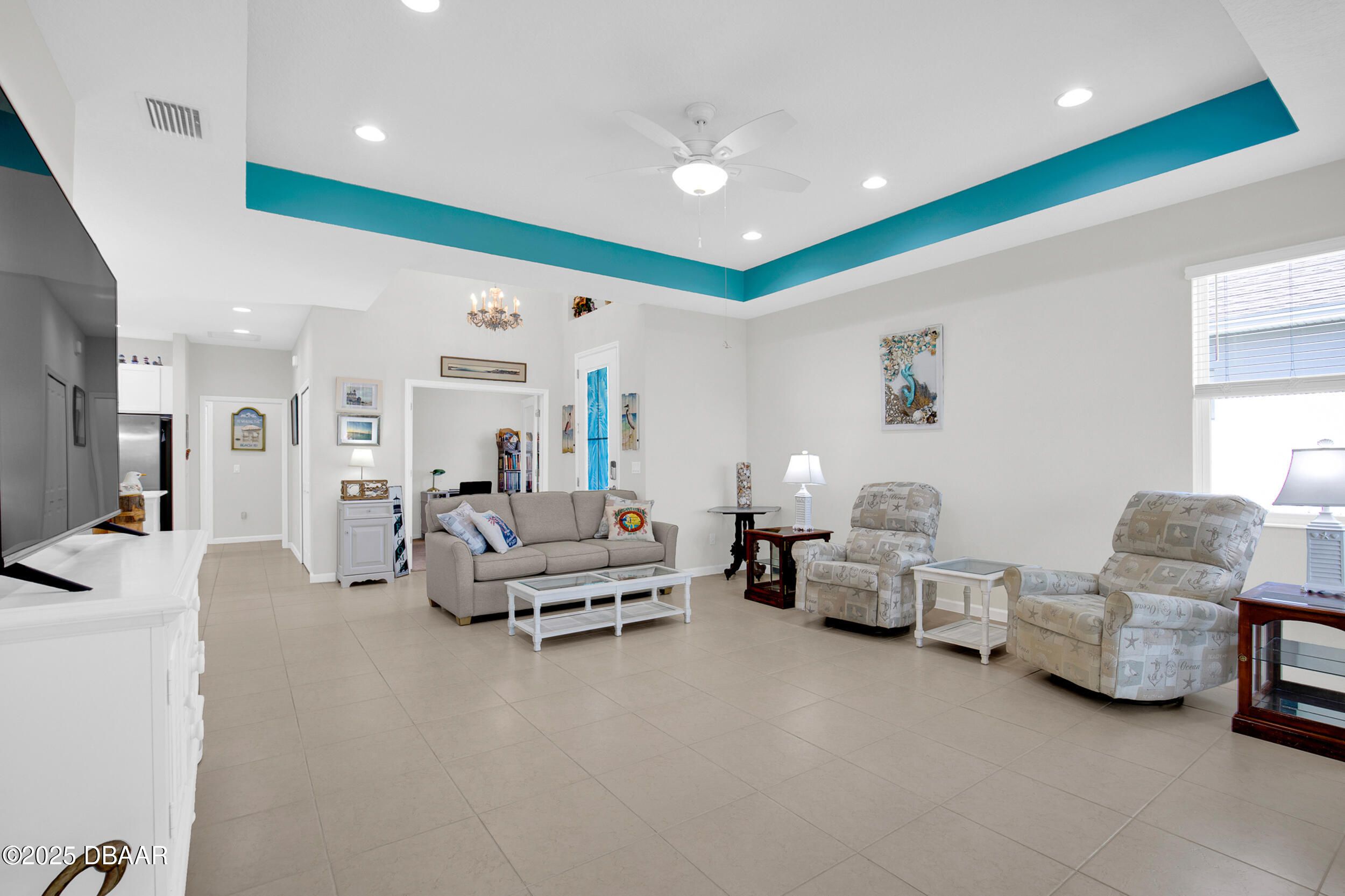 Find your living on island time dream in this beautiful, open Antigua Villa with screened lanai. 2 bd, 2 ba plus den is perfect for entertaining! Bright white soft close kitchen cabinets, quartz countertops, S/S appliances, gas range & designer pendants over the island. Accent paint in dining area & Great Room tray ceiling with recessed lighting brings that paradise feeling in. Comfy primary bedroom has an ensuite bath offering dual oval sinks, seamless glass shower door & huge walk in closet. You'll love the separate guest suite with pocket door for privacy. A den with double glass doors can be used as an extra guest bedroom, office or gym. Preserve view. Golf cart friendly community & this home is close to the Publix shopping center w/ various shops & a short ride to the town center where you will enjoy resort-style amenities including a paradise pool, clubhouse, bar & chill restaurant, fitness center, dog park, tennis & pickle ball courts, shuttle service to private beach club