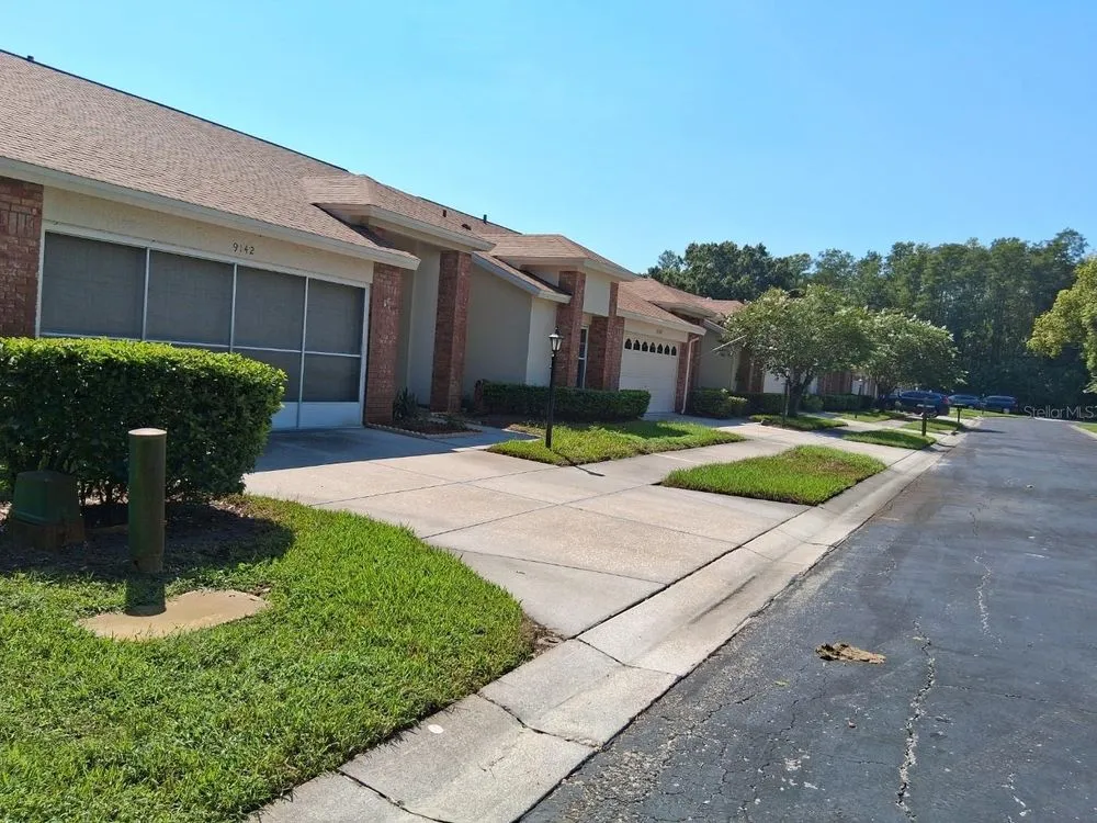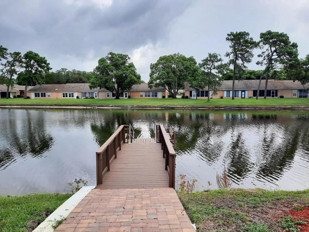 Looking for a condo that’s bigger than a shoe box? With 1728 sq ft of living area, this is easily the largest 55+ condo in the entire New Port Richey area. Plus, it is an end unit with FULL VIEWS OF THE LAKE, and an ATTACHED 2-CAR GARAGE. The location is very PRIVATE at the end of the street with no through traffic. NEW IN 2025: roof, AC, bedroom carpets, & interior paint. The 16’x15’ primary bedroom has a private bath with dual sinks, and TWO walk-in closets. The 12’x12’ guest bedroom also has a LARGE WALK-IN CLOSET. The kitchen features a sweet breakfast area with a bay window, large pantry, and pass-throughs to dining room and family room. The living, family, and dining rooms are open, creating a very large great room (about 630 sq ft!). The great room has laminate flooring while the kitchen & baths have ceramic tile. The condo fee includes most of your homeowner’s insurance, roof replacement, exterior maintenance, grounds care, escrow reserves, and cable TV/internet. You also get access to the Heritage Lake community facilities: tennis courts, shuffleboard, billiards, bocce ball, the large LAKE-FRONT HEATED POOL, sauna, and FISHING PIER! There are lots of planned activities and clubs available. Finally, the trendy shopping and dining of the Trinity area is only 5 minutes away.