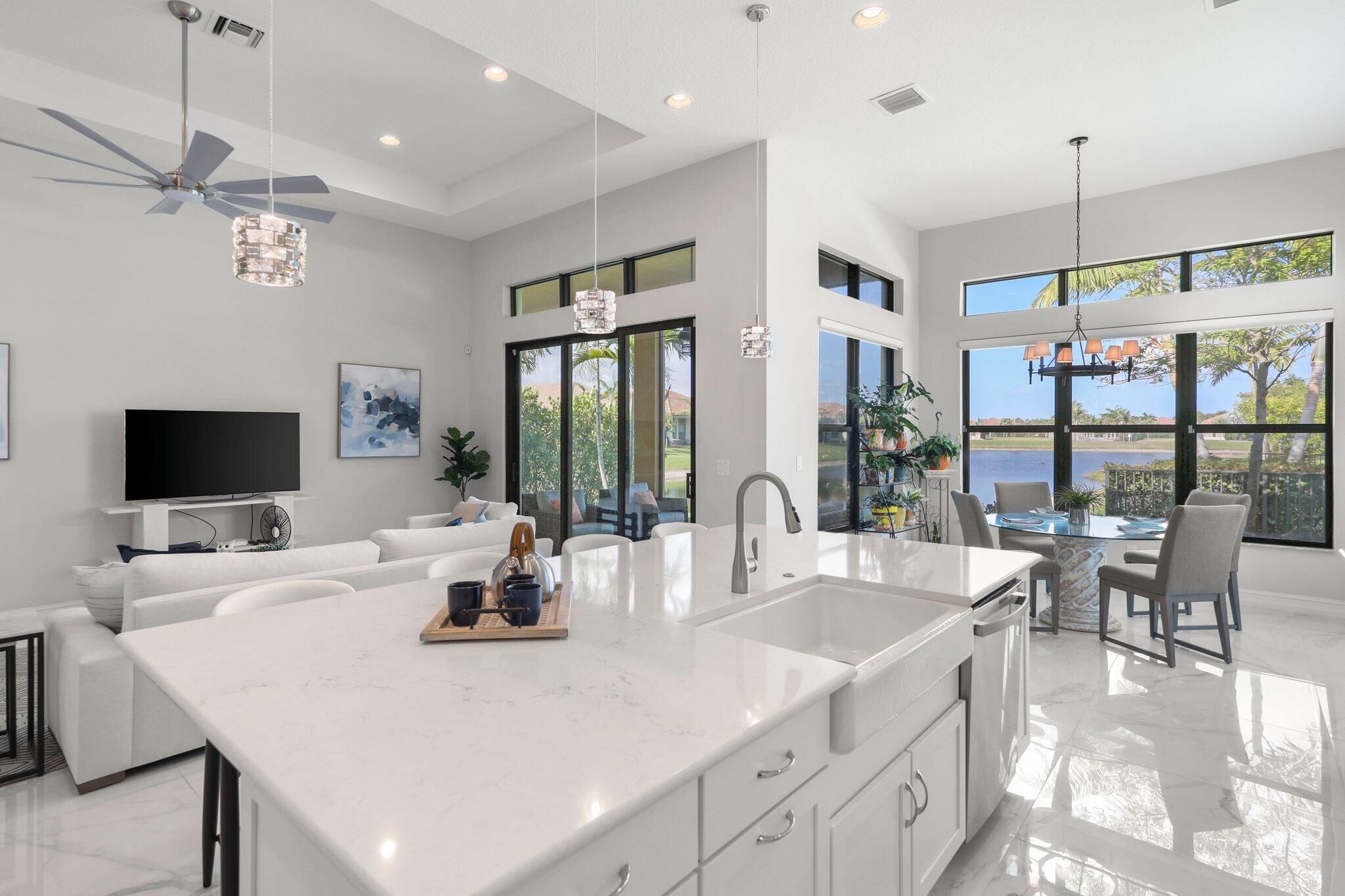 - Entrance Foyer, High Ceilings, Kitchen Island, Pantry, Walk-In Closet(s), Split Bedrooms, Impact Glass, Breakfast Area, Living/Dining Room, Dual Sinks