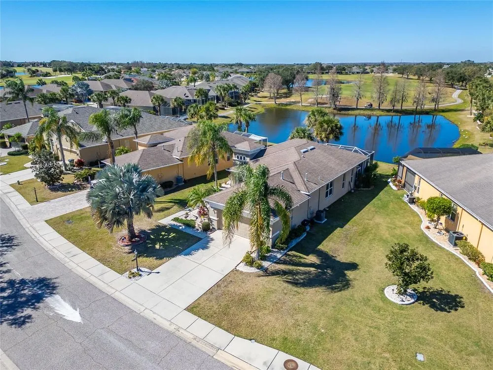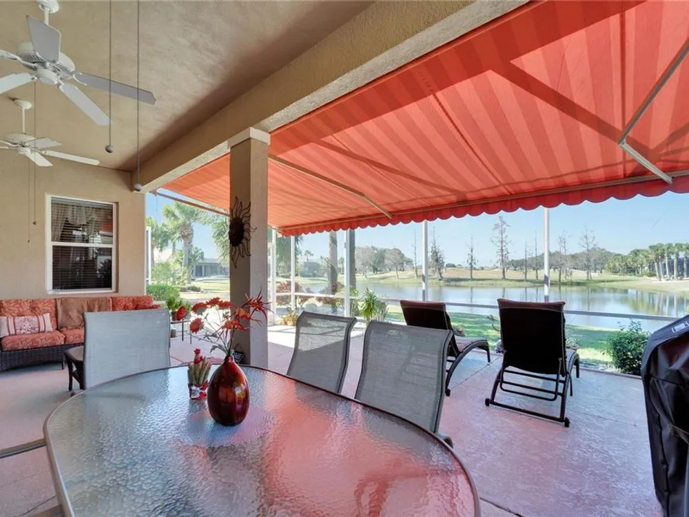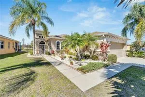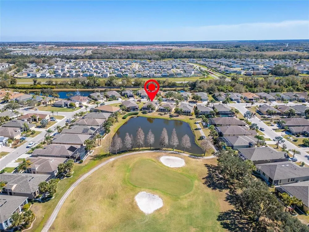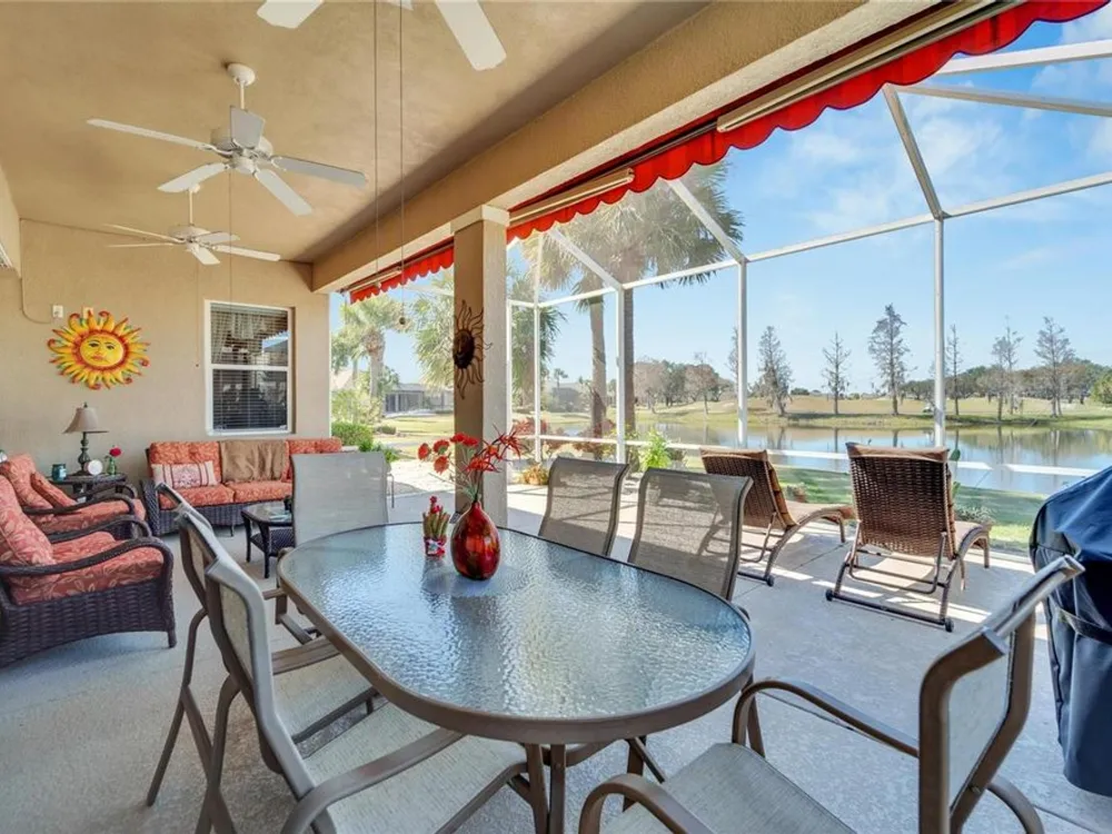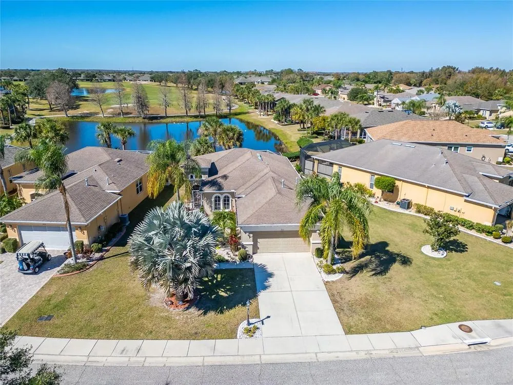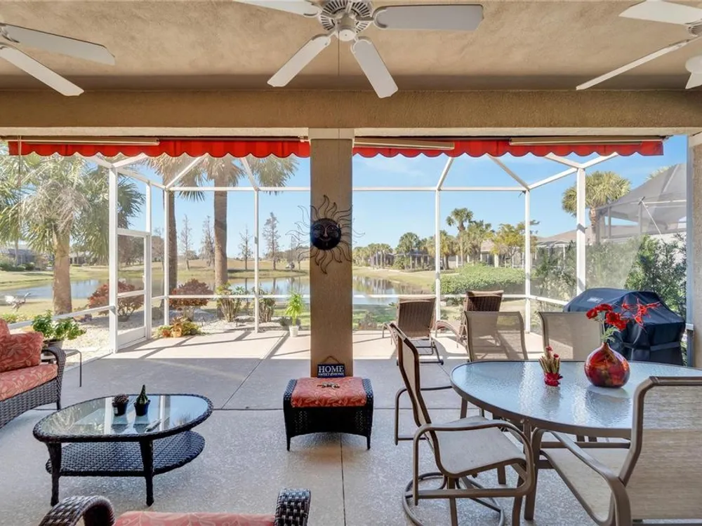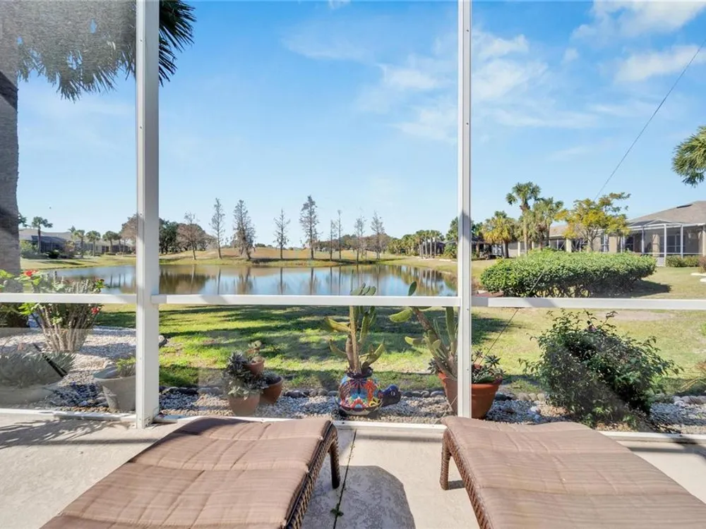 A SIZZLING NEW LISTING!!! Bring all offers, seller motivated! WELCOME TO DREAM RETIREMENT LIVING! The Renaissance Golf Club community is active retirement living at it’s finest! You will never want to leave this 3 bedroom, 2 bathroom home once you see this view. Located on one of Sun City Center’s best kept secrets, Club Renaissance Golf Course, you will be in awe of the view of the 3rd green just beyond the large sparkling pond. Enter through a charming screened in front porch, the perfect spot of your morning coffee. Feel the inviting warmth and light as you move through the foyer into a great room with triple sliding glass doors that open all the way across the back expanding your living area into the paver-covered lanai with an awning perfectly situated facing west for spectacular nightly sunsets. The beautiful kitchen opens to the great room encompassed with granite countertops, gourmet gas range making cooking much more enjoyable! Your large primary bedroom with ensuite comes with dual sinks, a garden tub and walk in closet. The second and third bedrooms are across the home for added privacy. Beautiful arches and wood floors throughout add to the charm of this delightful home. Take in the quiet and tranquility while relaxing in your screened lanai, sipping your favorite beverage awaiting the most captivating SUNSETS! Store your car and golf cart in the 2-car garage. When you want more activities, take your golf cart to the clubhouse where you can enjoy dinner, drinks, fitness classes, the Spa Celeste, a resort-style pool, social activities, and more! Sun City Center has amazing amenities, NEWLY RENOVATED courts for the popular sport of pickleball, numerous social clubs, outdoor and indoor pool, shopping, restaurants, and doctors, and is conveniently located to major highways, airports, Tampa, Sarasota, and award-winning beaches and golf courses. What are you waiting for...come home to a Florida state of mind!