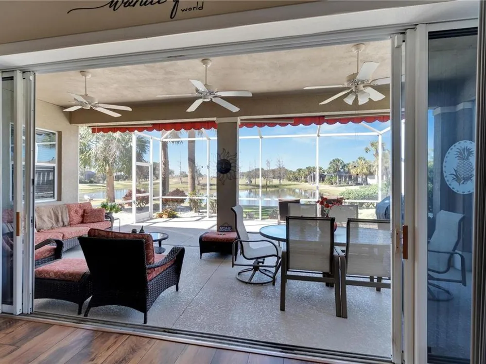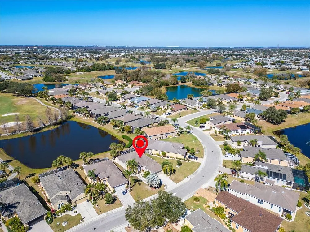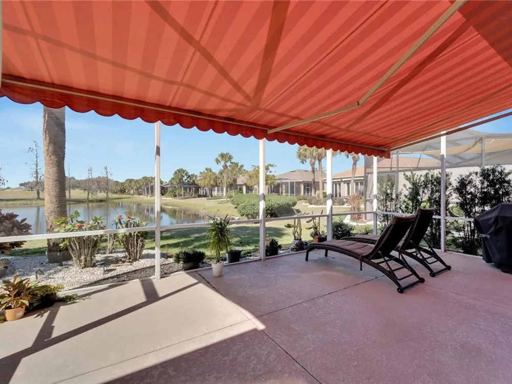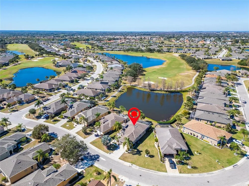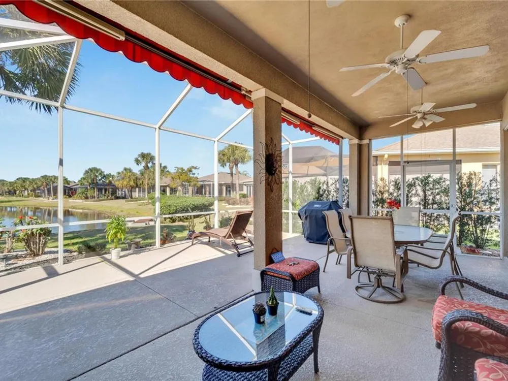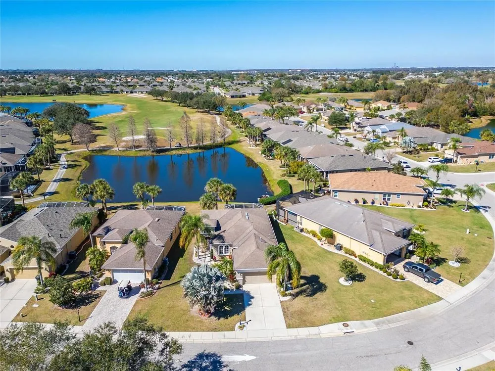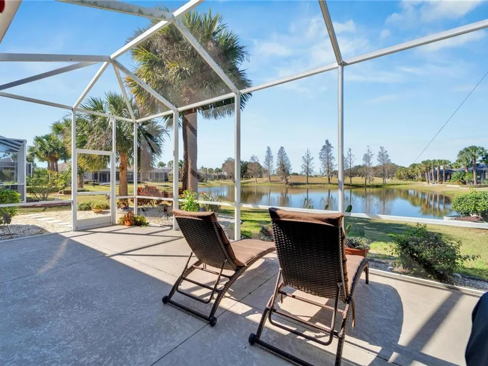 A SIZZLING NEW LISTING!!! Bring all offers, seller motivated! WELCOME TO DREAM RETIREMENT LIVING! The Renaissance Golf Club community is active retirement living at it’s finest! You will never want to leave this 3 bedroom, 2 bathroom home once you see this view. Located on one of Sun City Center’s best kept secrets, Club Renaissance Golf Course, you will be in awe of the view of the 3rd green just beyond the large sparkling pond. Enter through a charming screened in front porch, the perfect spot of your morning coffee. Feel the inviting warmth and light as you move through the foyer into a great room with triple sliding glass doors that open all the way across the back expanding your living area into the paver-covered lanai with an awning perfectly situated facing west for spectacular nightly sunsets. The beautiful kitchen opens to the great room encompassed with granite countertops, gourmet gas range making cooking much more enjoyable! Your large primary bedroom with ensuite comes with dual sinks, a garden tub and walk in closet. The second and third bedrooms are across the home for added privacy. Beautiful arches and wood floors throughout add to the charm of this delightful home. Take in the quiet and tranquility while relaxing in your screened lanai, sipping your favorite beverage awaiting the most captivating SUNSETS! Store your car and golf cart in the 2-car garage. When you want more activities, take your golf cart to the clubhouse where you can enjoy dinner, drinks, fitness classes, the Spa Celeste, a resort-style pool, social activities, and more! Sun City Center has amazing amenities, NEWLY RENOVATED courts for the popular sport of pickleball, numerous social clubs, outdoor and indoor pool, shopping, restaurants, and doctors, and is conveniently located to major highways, airports, Tampa, Sarasota, and award-winning beaches and golf courses. What are you waiting for...come home to a Florida state of mind!
