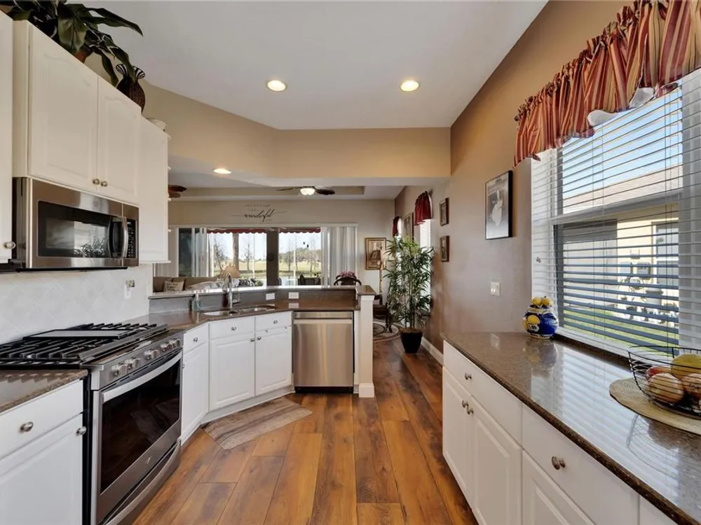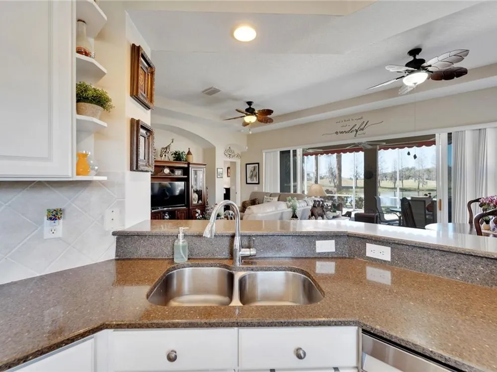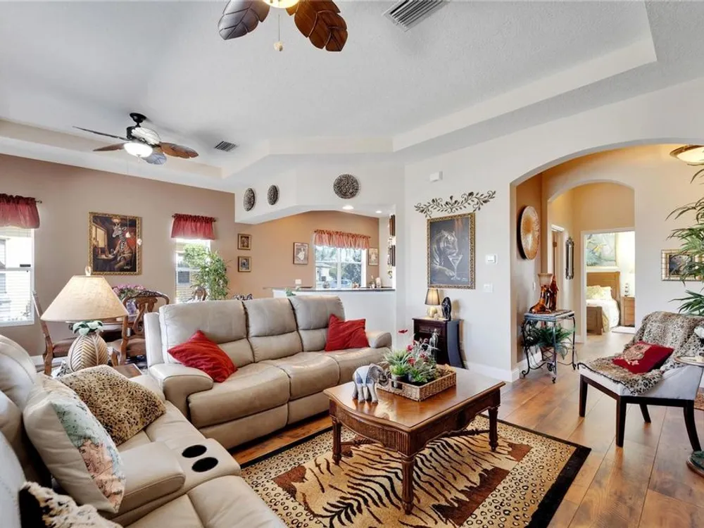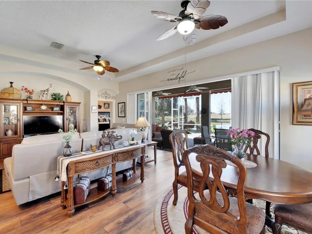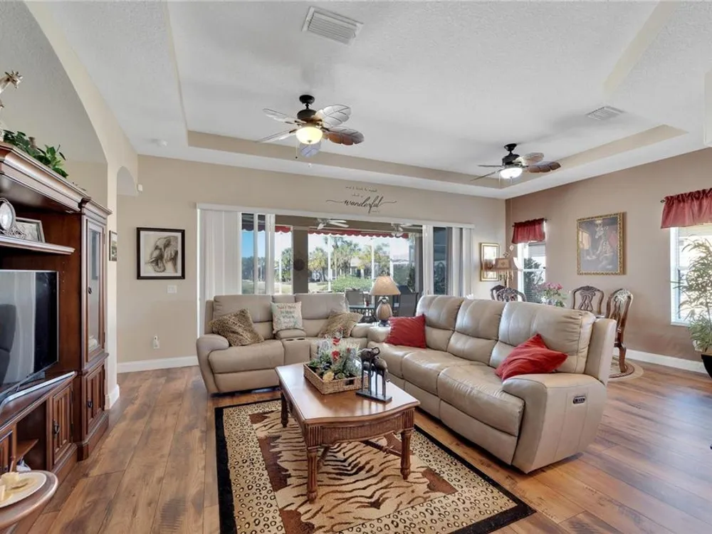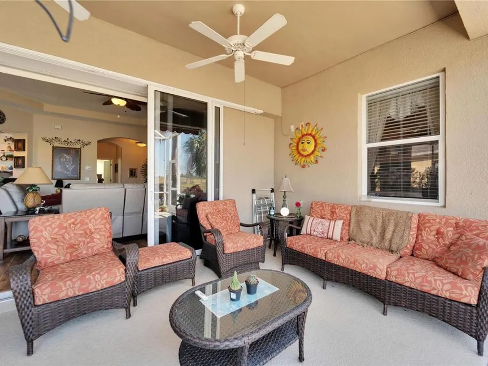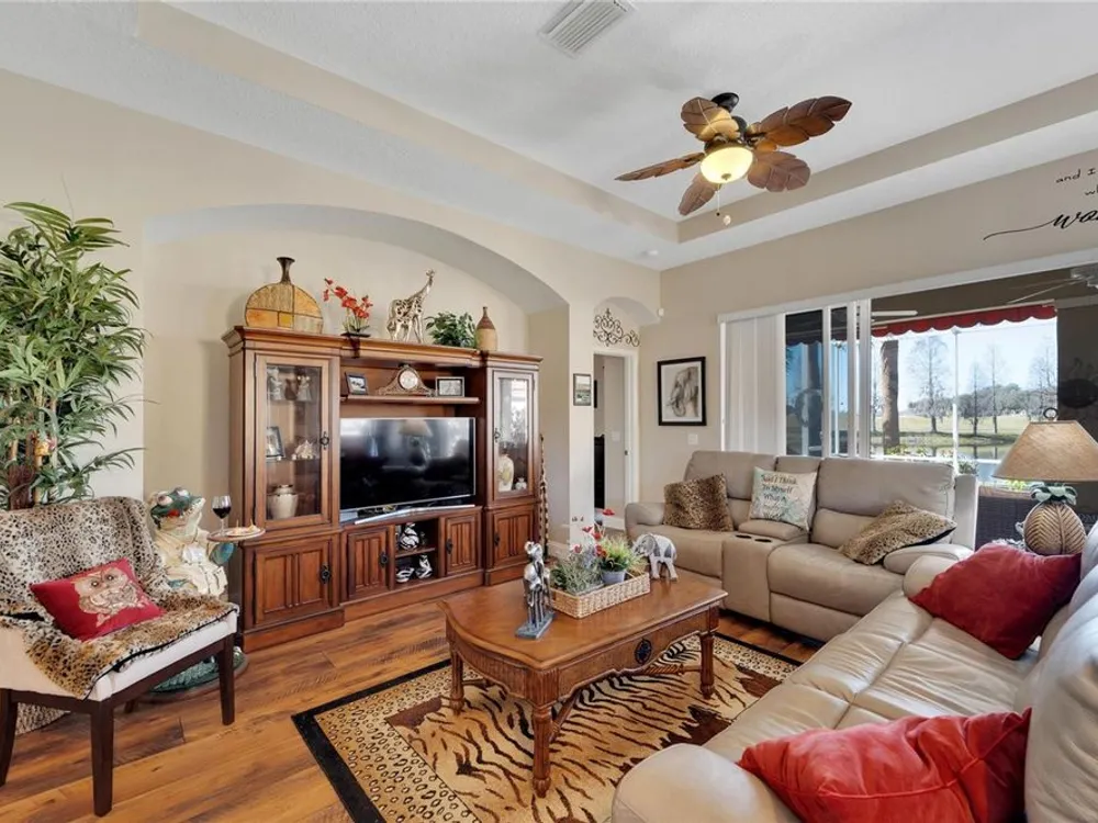 A SIZZLING NEW LISTING!!! Bring all offers, seller motivated! WELCOME TO DREAM RETIREMENT LIVING! The Renaissance Golf Club community is active retirement living at it’s finest! You will never want to leave this 3 bedroom, 2 bathroom home once you see this view. Located on one of Sun City Center’s best kept secrets, Club Renaissance Golf Course, you will be in awe of the view of the 3rd green just beyond the large sparkling pond. Enter through a charming screened in front porch, the perfect spot of your morning coffee. Feel the inviting warmth and light as you move through the foyer into a great room with triple sliding glass doors that open all the way across the back expanding your living area into the paver-covered lanai with an awning perfectly situated facing west for spectacular nightly sunsets. The beautiful kitchen opens to the great room encompassed with granite countertops, gourmet gas range making cooking much more enjoyable! Your large primary bedroom with ensuite comes with dual sinks, a garden tub and walk in closet. The second and third bedrooms are across the home for added privacy. Beautiful arches and wood floors throughout add to the charm of this delightful home. Take in the quiet and tranquility while relaxing in your screened lanai, sipping your favorite beverage awaiting the most captivating SUNSETS! Store your car and golf cart in the 2-car garage. When you want more activities, take your golf cart to the clubhouse where you can enjoy dinner, drinks, fitness classes, the Spa Celeste, a resort-style pool, social activities, and more! Sun City Center has amazing amenities, NEWLY RENOVATED courts for the popular sport of pickleball, numerous social clubs, outdoor and indoor pool, shopping, restaurants, and doctors, and is conveniently located to major highways, airports, Tampa, Sarasota, and award-winning beaches and golf courses. What are you waiting for...come home to a Florida state of mind!