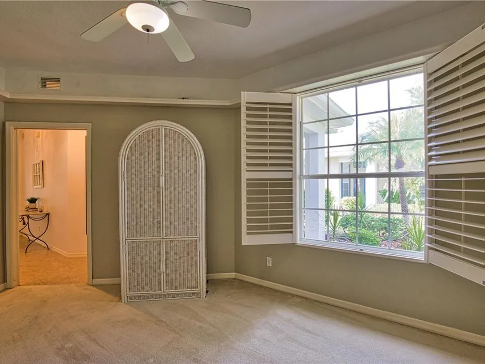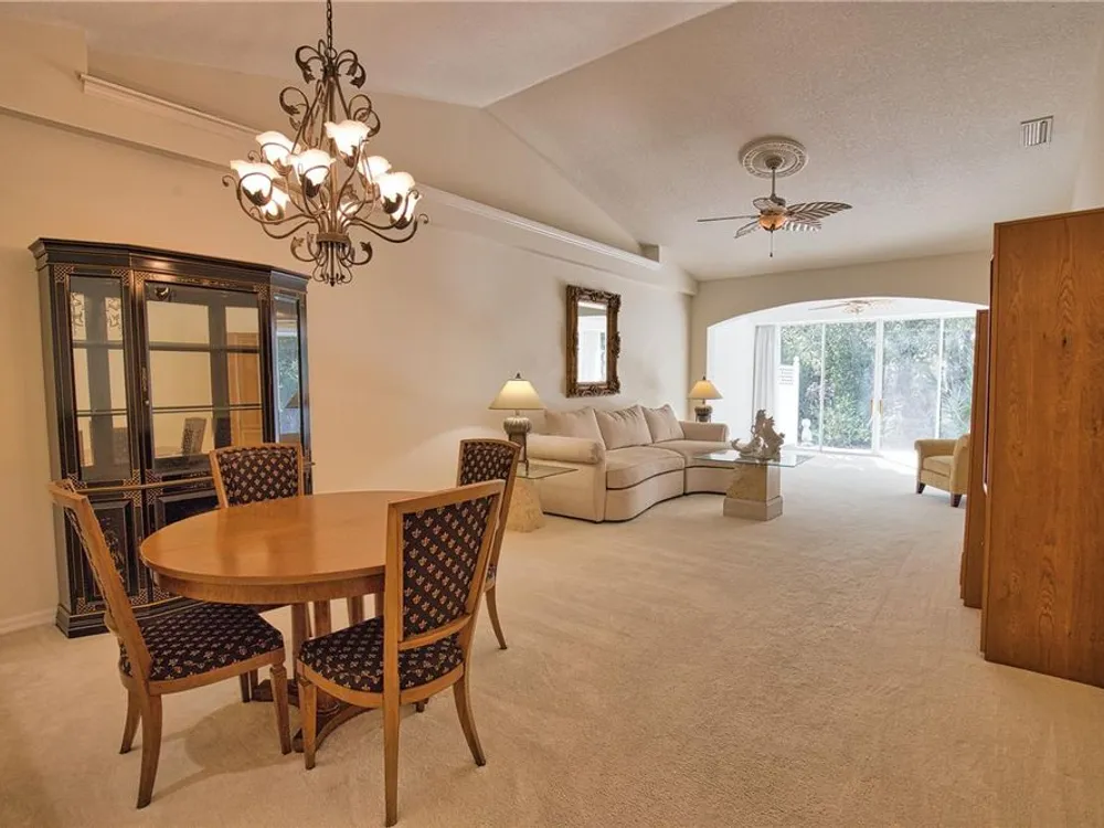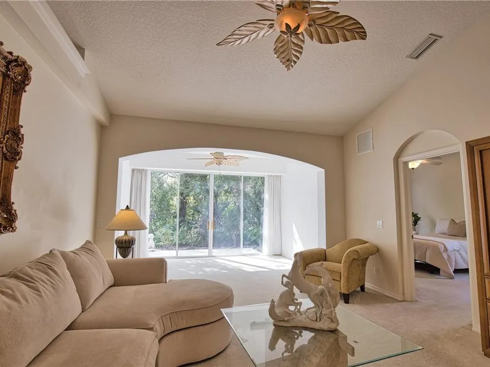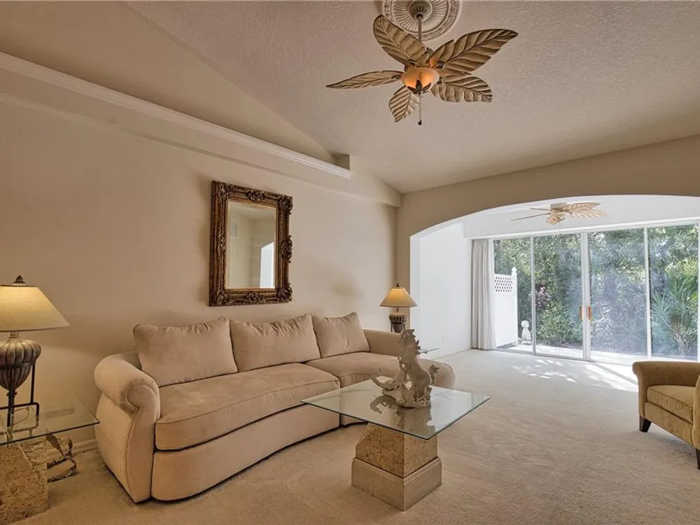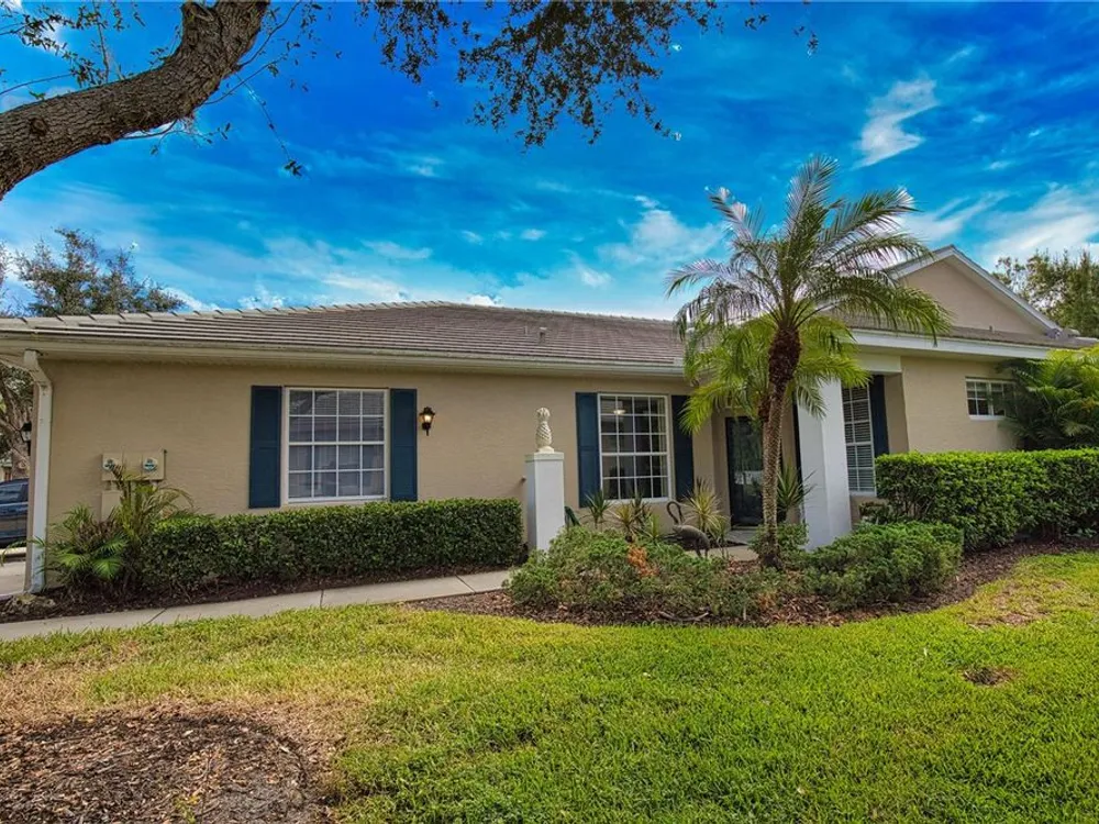 Motivated seller! Welcome to this beautifully maintained 2-bedroom, 2-bath villa with den (optional 3rd bedroom) in the highly desired St. Andrews Park of Plantation Golf & Country Club. Perfectly located on a quiet cul-de-sac, this spacious home offers serene surroundings and convenient access to the community pool directly across the street. Enjoy tranquil views of your own tropical garden and the 13th hole of the Bobcat Course, providing a peaceful and private retreat. The open floor plan features cathedral ceilings, an extended living room, split bedrooms, and a versatile bonus area off the kitchen for storage or hobbies. The large primary suite includes dual closets, southern exposure, and an en-suite bath with soaking tub, separate shower, and private commode. This partially furnished home is move-in ready with a new tile roof (2023), new water heater (2023), and AC (2018). The HOA covers exterior maintenance, roof care, lawn service, pest control, water/sewer, basic cable, and annual vent cleaning for true maintenance-free living. Enjoy multiple community pools, one just steps away, plus optional membership to Plantation Golf & Country Club offering golf, tennis, pickleball, bocce, fitness, dining, and social activities. Conveniently located near Center Road, just minutes from Wellen Park, Downtown Venice, shopping, dining, beaches, and Sarasota Memorial Hospital. Experience the best of relaxed Florida living in this inviting Venice villa!