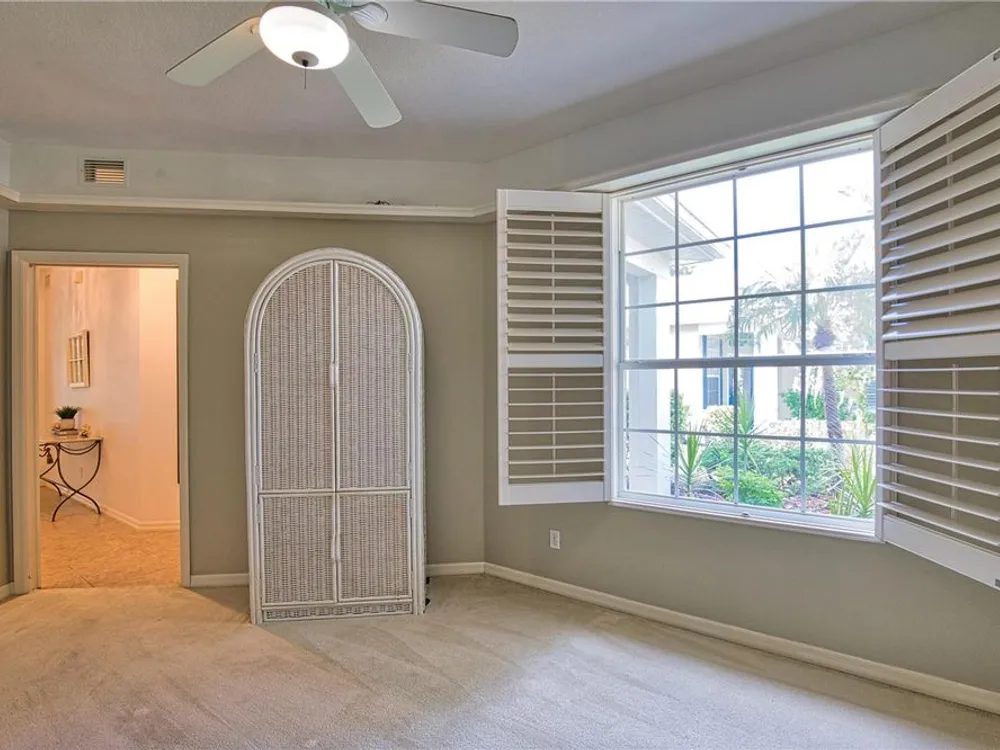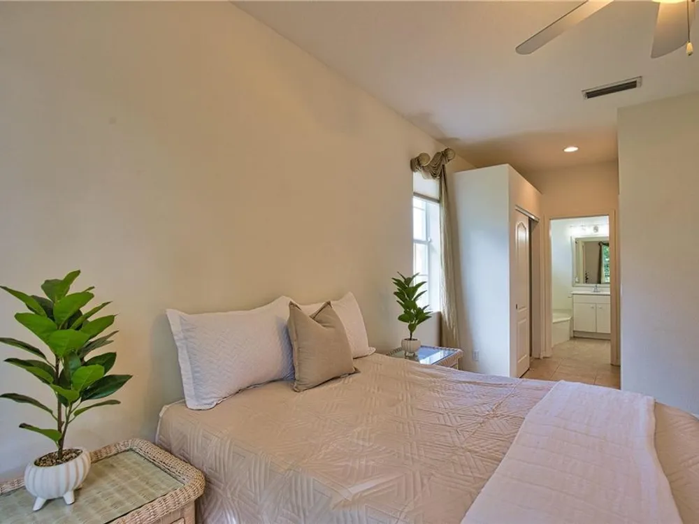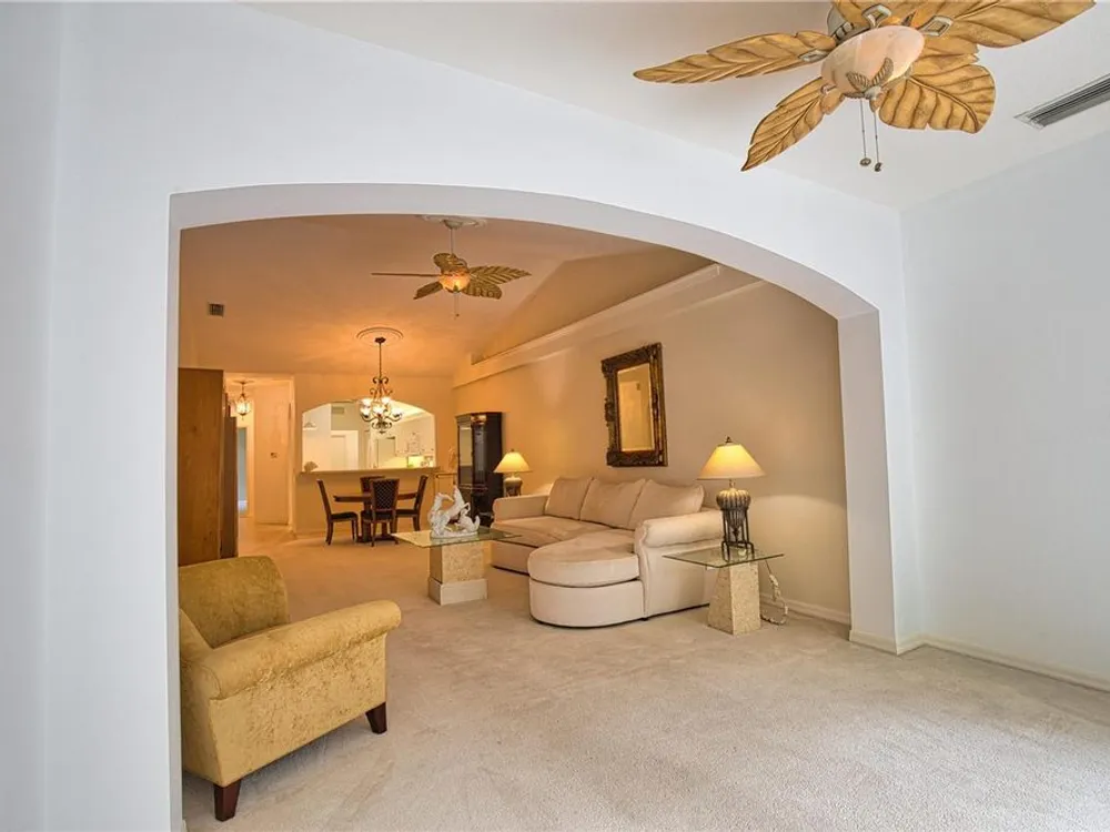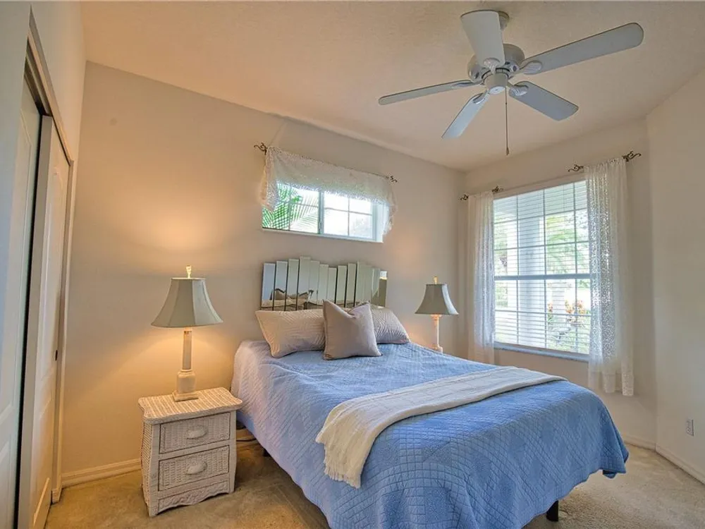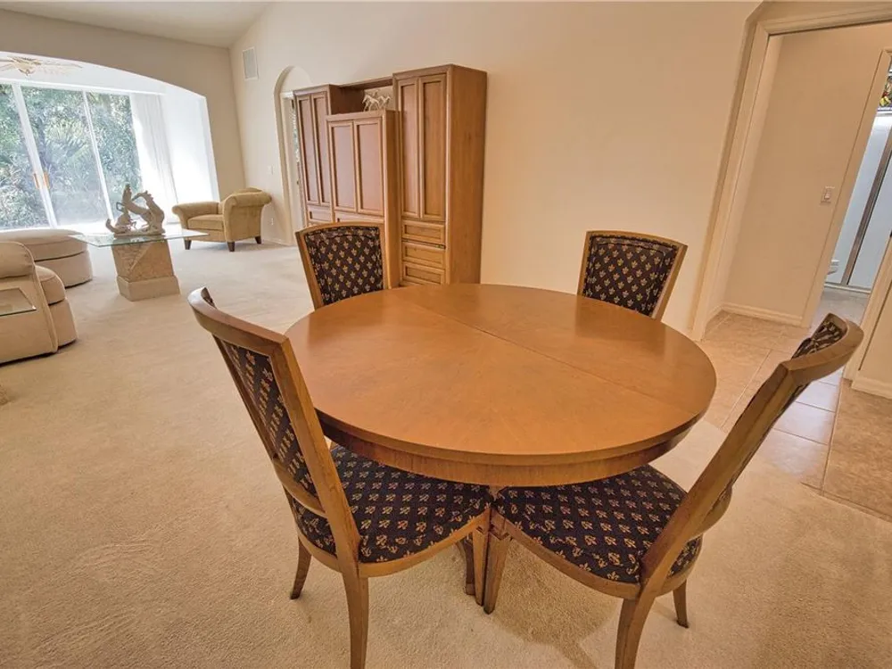 Motivated seller! Welcome to this beautifully maintained 2-bedroom, 2-bath villa with den (optional 3rd bedroom) in the highly desired St. Andrews Park of Plantation Golf & Country Club. Perfectly located on a quiet cul-de-sac, this spacious home offers serene surroundings and convenient access to the community pool directly across the street. Enjoy tranquil views of your own tropical garden and the 13th hole of the Bobcat Course, providing a peaceful and private retreat. The open floor plan features cathedral ceilings, an extended living room, split bedrooms, and a versatile bonus area off the kitchen for storage or hobbies. The large primary suite includes dual closets, southern exposure, and an en-suite bath with soaking tub, separate shower, and private commode. This partially furnished home is move-in ready with a new tile roof (2023), new water heater (2023), and AC (2018). The HOA covers exterior maintenance, roof care, lawn service, pest control, water/sewer, basic cable, and annual vent cleaning for true maintenance-free living. Enjoy multiple community pools, one just steps away, plus optional membership to Plantation Golf & Country Club offering golf, tennis, pickleball, bocce, fitness, dining, and social activities. Conveniently located near Center Road, just minutes from Wellen Park, Downtown Venice, shopping, dining, beaches, and Sarasota Memorial Hospital. Experience the best of relaxed Florida living in this inviting Venice villa!