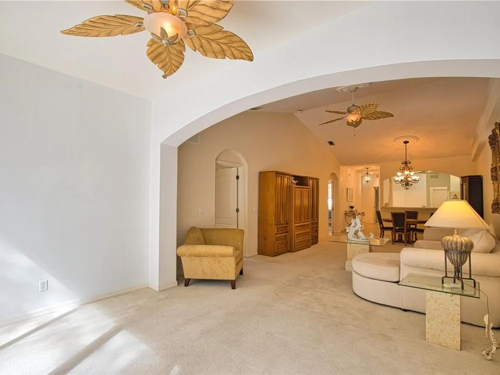 - Ceiling Fan(s), High Ceilings, Living/Dining Room, Open Floorplan, Main Level Primary, Split Bedrooms, Thermostat, Vaulted Ceiling(s), Walk-In Closet(s), Window Treatments
