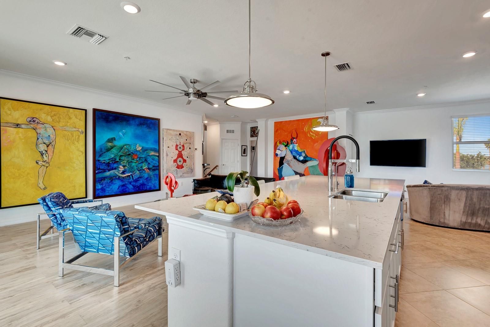 Impeccable 3 bedroom, 2 bathroom 2110 ft² home with a two car garage and screened in lanai. Contemporary open split plan with large living room and open kitchen, teeming with natural light & water views. Primary suite has two walk-in closets, a large en-suite bathroom with his and hers sinks and an oversized walk-in shower. All bathrooms and kitchen have quartz countertops and solid wood, soft-close cabinetry. The kitchen has stainless appliances, a reverse osmosis water filtration system. Enjoy resort style amenities: 3 pools, 2 gyms, 3 tennis courts, a clubhouse with activities director, a marina, dog park, playground, riverfront walking path, kayak launch. For boaters, marina slips are available for rent, with boat lift access to the Manatee River, which quickly gets you to the Gulf.