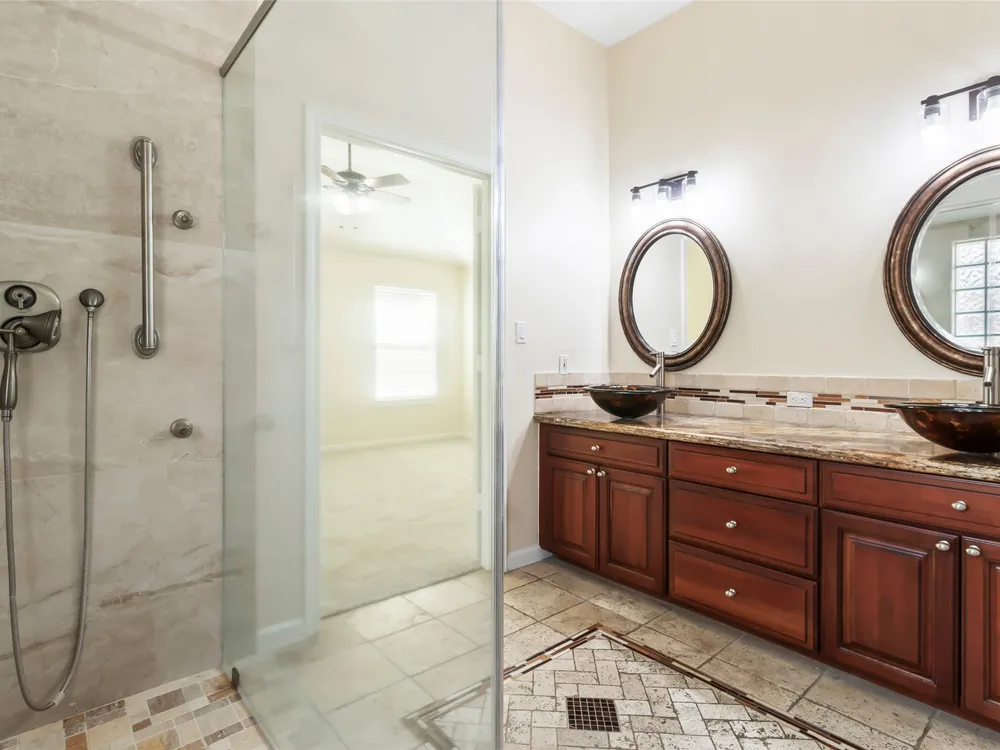 - Breakfast Bar, Crown Molding, Double Vanity, Granite Counters, High Ceilings, Pantry, Tub Shower, Ceiling Fan(s), Programmable Thermostat
