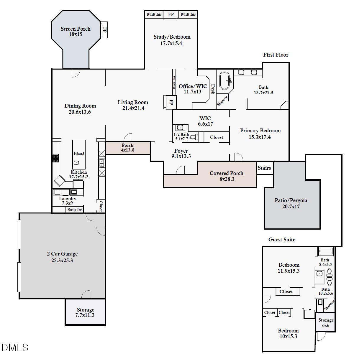 A HIDDEN COURTYARD HAVEN WITH A COTTAGE SURPRISE Step through the gates and into something unexpected - a Mediterranean inspired retreat tucked deep in the community on nearly an acre of wooded serenity. Everything centers around a spacious , brick paved courtyard that connects the elegant main home, a charming 2 bedroom cottage, and outdoor spaces designed for gathering, relaxing and quiet reflection. Inside the main house, 12 foot ceilings create a sense of openness and flow. The living room features a gas fireplace, the dining area seats twelve with ease and the kitchen is ready for serious cooking, granite counters, a large prep island and two dishwashers. Just off the dining room, a screened porch with a wood burning fireplace adds cozy charm. The study, with its rich wood built-ins and own fireplace, connects to a separate office or hobby space. The owner's suite is generously sized with a walk in closet and a bathroom that feels like a private dressing room, double vanities, soaking tub and walk in shower. Back in the courtyard, you'll find a dining patio and the cottage - a fully equipped retreat with two bedrooms and 2 full baths with tankless water heater. The main house features solar water heater, wired for sound and the oversized garage includes a storage room and wide driveway. There's more to see and even more to feel. Come experience the courtyard lifestyle where every space tells a story and possibilities unfold behind the gate.