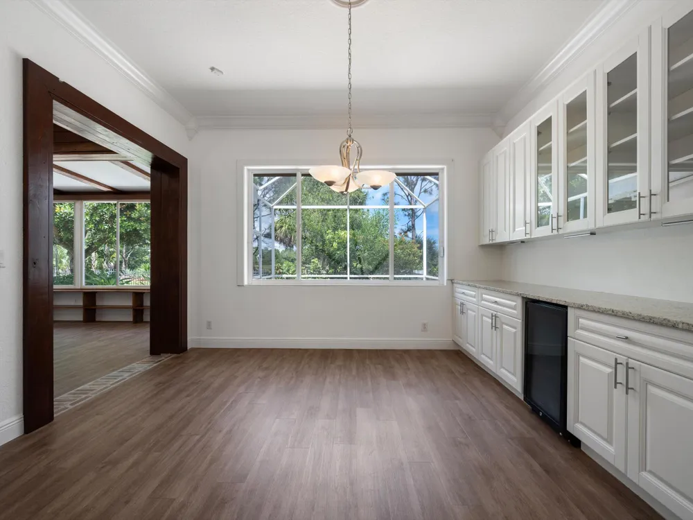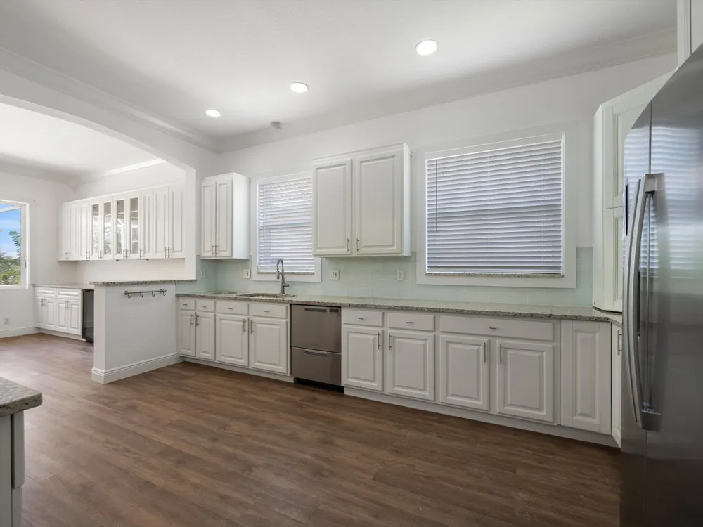 55+ Community! Rarely available, this home is one of the few in the neighborhood with a fully fenced yard, backing directly to a tranquil nature preserve for unmatched privacy and serene views. Nestled on a private cul-de-sac, it offers both peace and convenience in an ideal location.Inside, the recently renovated kitchen showcases brand-new appliances, granite countertops, and custom cabinetry with plenty of storage and prep space. An adjoining dining area extends the entertaining potential with additional cabinets, counters, and a wine fridge--perfect for hosting family or friends.The spacious primary suite features expansive walk-in closets and a beautifully designed en-suite bathroom with dual sinks and a separate toilet room for added comfort.