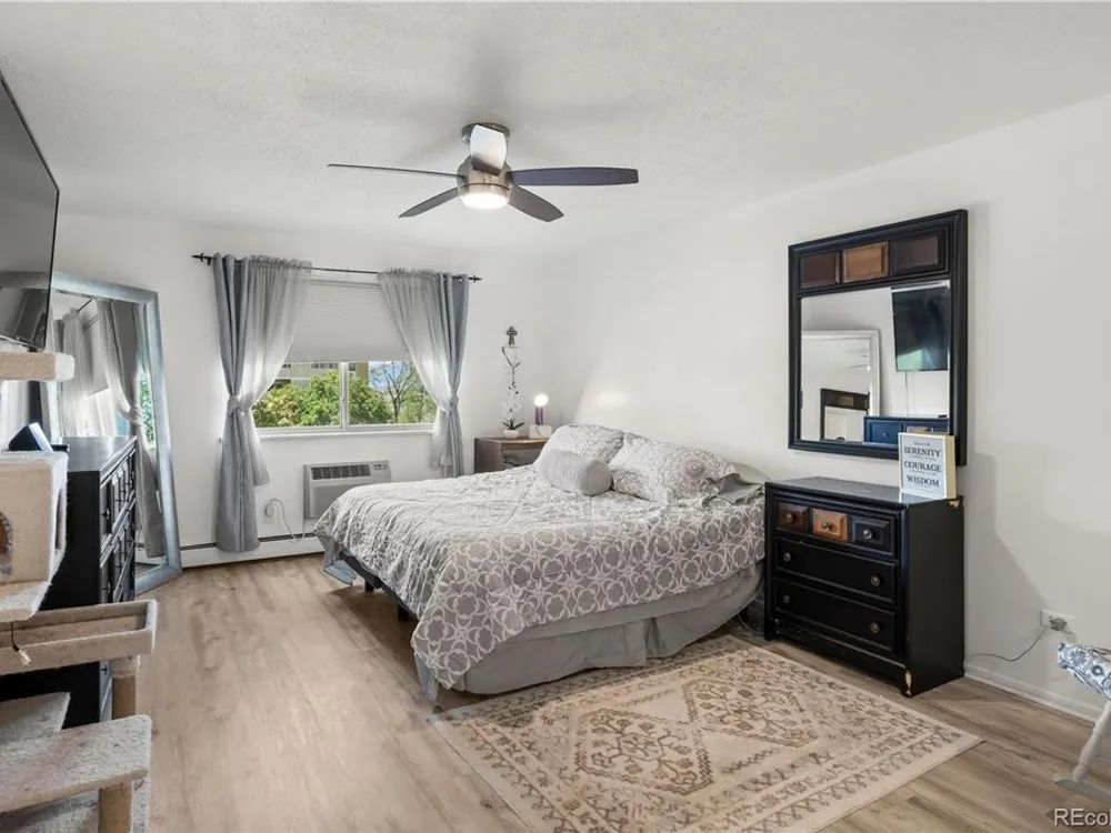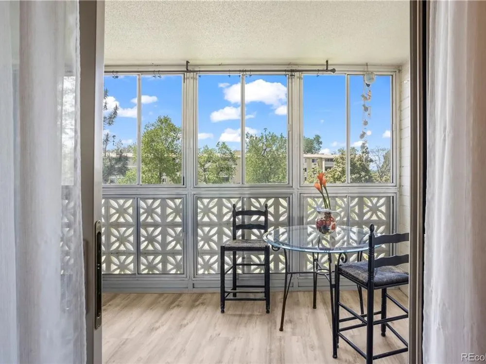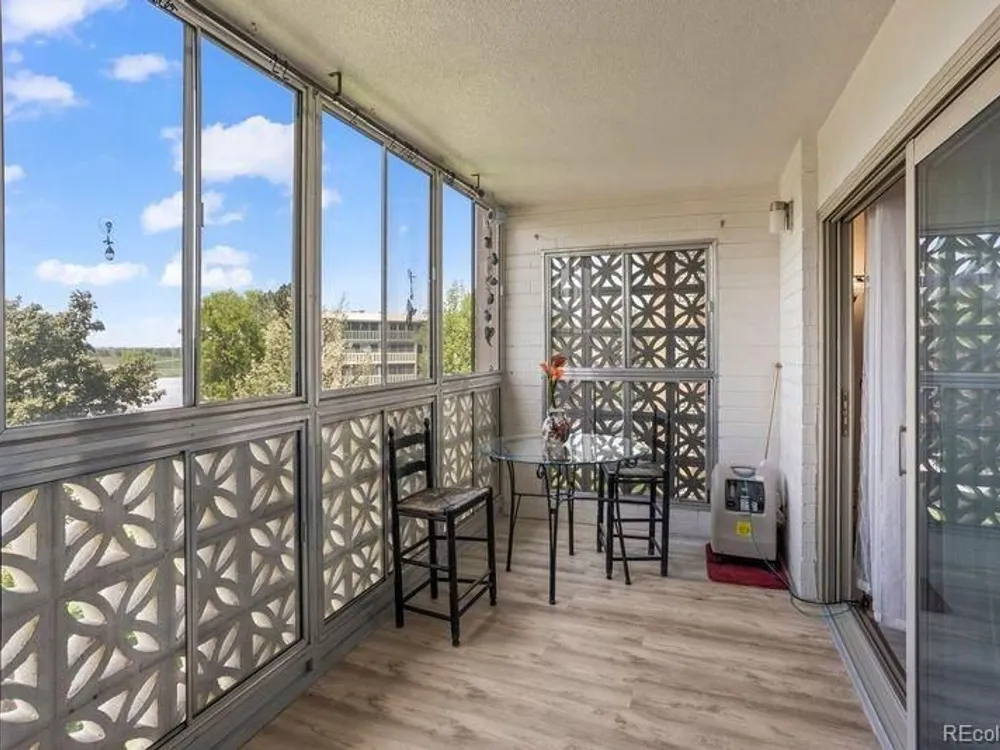 Beautifully Updated 1-Bedroom Condo in Colorado’s Premier 55+ Community – Windsor Gardens! Discover comfort and convenience in this well-maintained and thoughtfully updated 1-bedroom, 1-bath condo offering 855 square feet of stylish living space. Located in Windsor Gardens, Colorado's largest active adult community, this home blends modern updates with exceptional amenities. Interior Highlights: Contemporary kitchen with newer stainless steel appliances Durable Core-tec vinyl flooring throughout Updated bathroom featuring a sleek glass-enclosed stand-up shower Modern light fixtures, ceiling fans, and fresh neutral paint with updated baseboards Bonus built-in Murphy bed—perfect for guests or extra space Two wall A/C units, including a newer digital/remote-controlled unit in the bedroom Ample cabinet and closet space, plus a private storage room conveniently located on the same floor Enclosed, screened lanai with double-pane vinyl slider—perfect for year-round relaxation Community Benefits (Included in HOA Dues): Annual property taxes, heat, water, sewer, and trash 24/7 patrolling community responders Full-time, on-site management and maintenance staff Active lifestyle programming with a wide range of events and clubs Unmatched Amenities: Clubhouse with fitness center, indoor/outdoor pools, hot tub, sauna, and billiards Library and craft rooms for ceramics, sewing, and woodworking 9-hole par-3 golf course and an on-site public restaurant Garden plots, walking trails, and a private nature preserve RV and boat storage available Highline Canal Trail runs the full length of the community's south side Convenient RTD bus stops throughout the neighborhood Enjoy easy access to Lowry, Cherry Creek, I-225, DIA, and downtown Denver. You're just minutes from shopping, dining, and everything you need. Come explore the lifestyle that makes Windsor Gardens such a special place to call home!