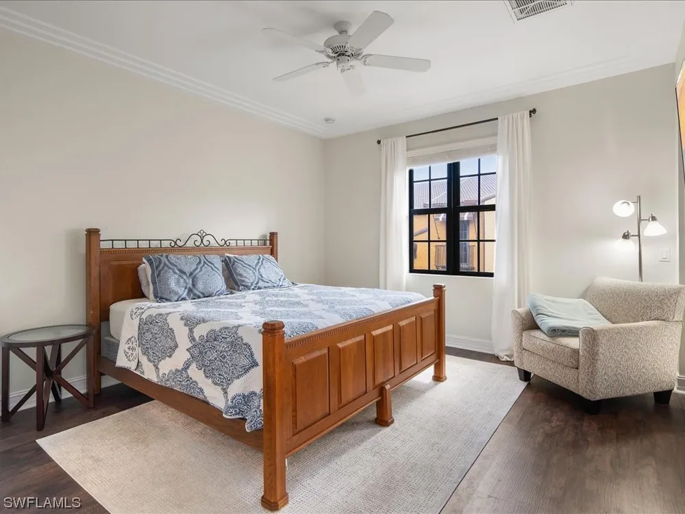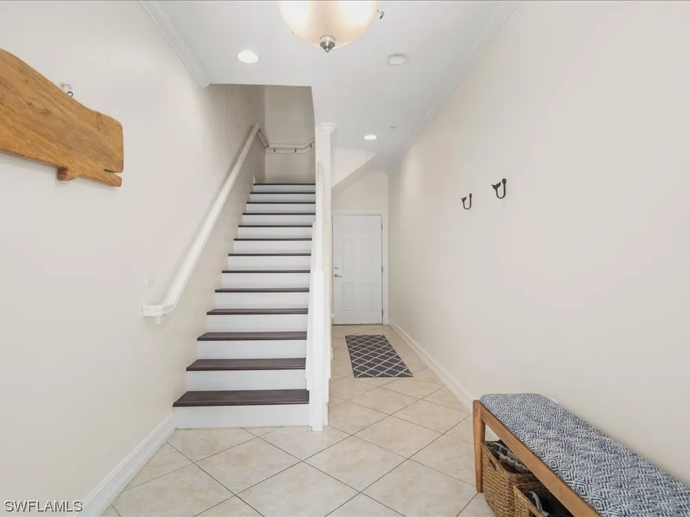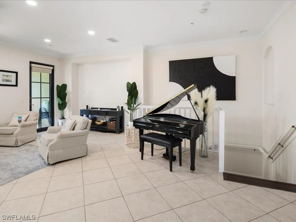 ENORMOUS PRICE REDUCTION! San Pablo model on 2nd floor with 3BR, 2BA, 2 car garage. Great room connects the living/dining area and kitchen into an open concept conducive for relaxation as well as entertaining. Walk out to the balcony from the living area and overlook the Spanish-style buildings with lush, fragrant greenery. Relaxation at it's finest. The interior has recent paint and several of the rooms have been upgraded with luxury vinyl plank floors. Decorative touches include crown molding and baseboards. The primary bedroom has a spacious bathroom separate tub and shower, twin sinks, large walk-in closet and enclosed water closet. With a split floor plan, the additional bedrooms are at the other end of the condo for privacy. Pocket doors are a nice feature of the condo and the classy kitchen has SS appliances, granite countertops, tall functional cabinets, and seating at the bar. Ole' lives like a mini city within Lely Resort as it has restaurants, theatre, pool, sauna, tennis, and much, much more!