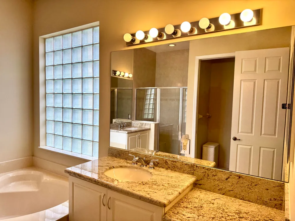- Entry Level Living Area, Entrance Foyer, Pantry, Garden Tub/Roman Tub, Split Bedrooms, High Ceilings, Walk-In Closet(s), Home Office, Great Room, Separate/Formal Dining Room, Blinds, Window Vertical(s), Dual Sinks, Primary Downstairs, Sitting Area In Primary Bedroom, Separate Shower, Bathtub
