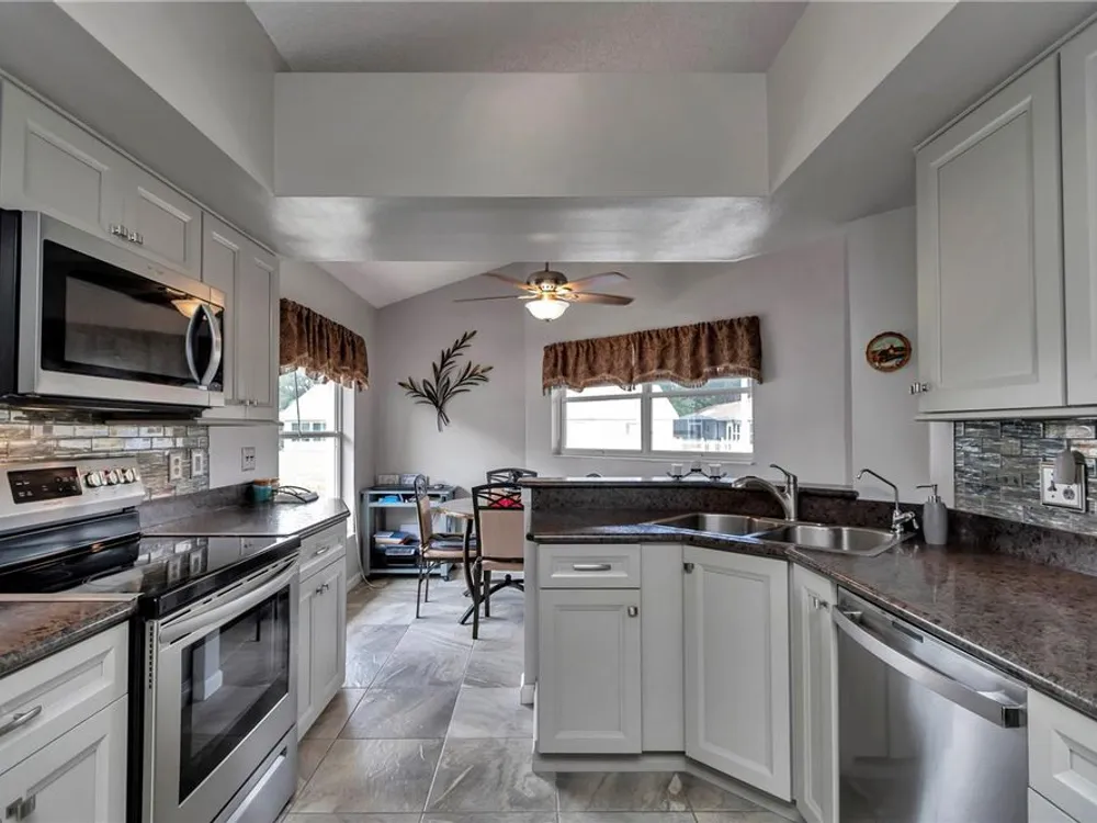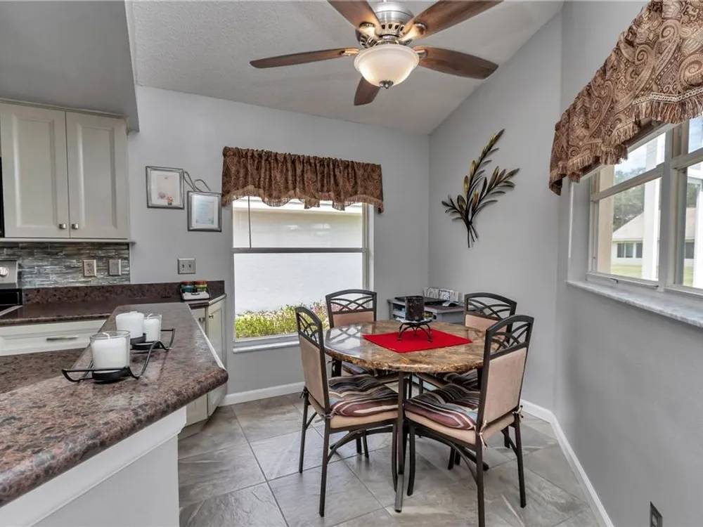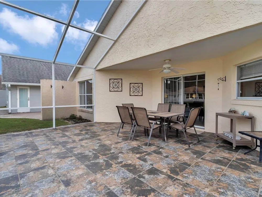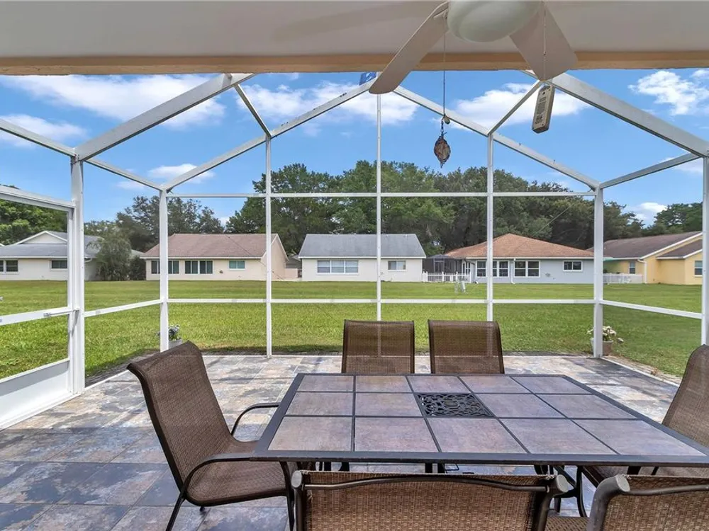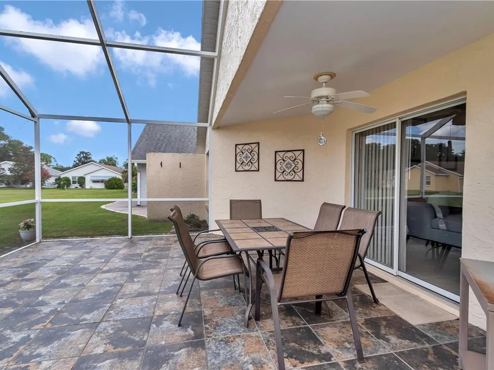 Well-Maintained 2/2 Patio Home in On Top of the World? 55+ Gated Golf Community Welcome to this beautifully maintained 2-bedroom, 2-bath patio home offering 1,345 sq ft of comfortable living space in the desirable Williamsburg neighborhood of On Top of the World, a premier 55+ gated golf community. This split-bedroom floor plan ensures privacy for both owners and guests. The spacious primary suite features an en-suite bath with a large vanity, walk-in closet, and elegant Italian tile. Luxury vinyl flooring runs throughout the living room, kitchen, and primary bedroom for a clean, modern feel. The upgraded kitchen boasts soft-close cabinets, durable Formica countertops, and offers both an eat-in space and a separate dining room for flexibility. A 1.5-car garage provides ample space for parking and storage. Enjoy outdoor living year-round in the oversized screened lanai (added in 201) complete with a ceiling fan. Recent upgrades include a 2022 heat pump, ensuring peace of mind.