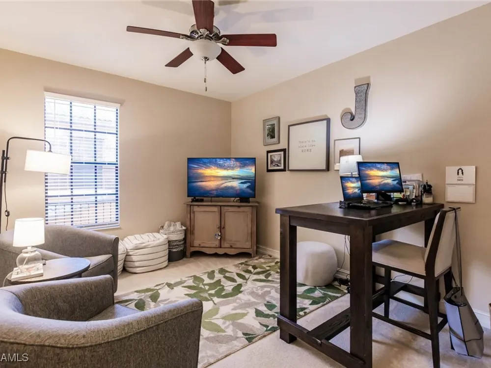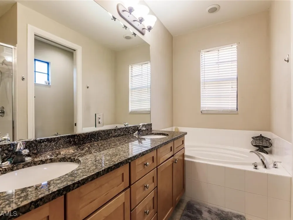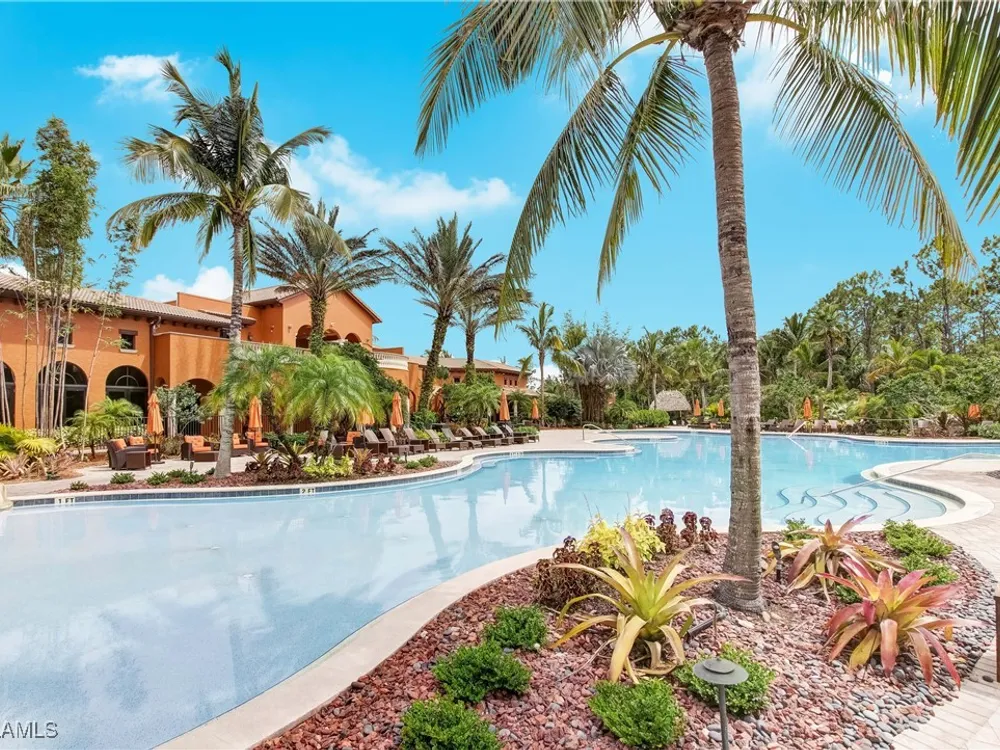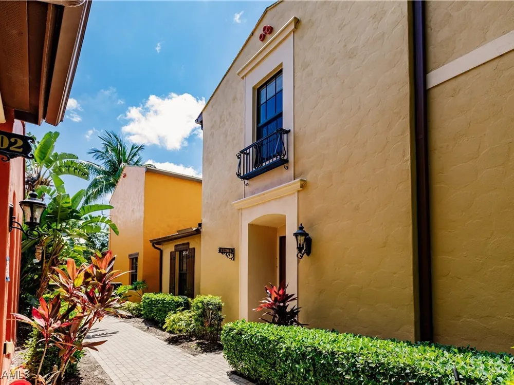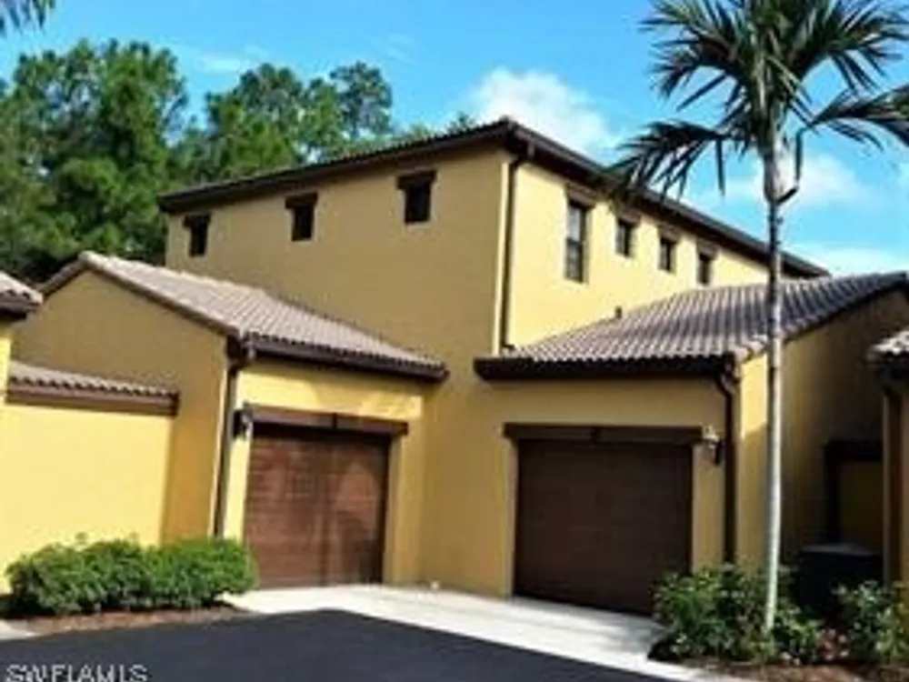 The only 3 full bath floor plan in Ole! This charming unfurnished two-story 'Laguna' Casita offers the perfect blend of privacy and convenience, with a serene preserve view that promises peaceful living. Situated on a picturesque, tree-lined street, you’ll be just a short stroll away from Ole’s vibrant Town Center, featuring a movie theater, state-of-the-art gym, resort-style pool, pub, ice cream shop, tennis courts, and more. As an end-unit, enjoy unparalleled privacy with no neighbors above, below, or on either side. The spacious 2,000 sq. ft. floor plan includes a first-floor bedroom with a full bath nearby, plus a primary suite upstairs with a luxurious en-suite, complete with a garden tub and separate shower. A versatile loft, study area with a built-in desk, guest bedroom, and additional full bath round out the upstairs living space. The home features tile and luxury vinyl plank flooring throughout—no carpet! The well-equipped kitchen boasts a breakfast nook, two pantries (one walk-in), and ample counter space. Additional conveniences include a first-floor laundry room with full-size appliances, and two one-car garages with extra storage. Finishing touches include impact doors and windows, newer top-of-the-line energy efficient Lennox Air Conditioner, new microwave and range, and a brand new roof. Only minutes from the beautiful beaches of Marco Island and Naples, plus dining, Starbucks, and shopping are within the neighborhood—this property offers the ultimate lifestyle in a prime location!