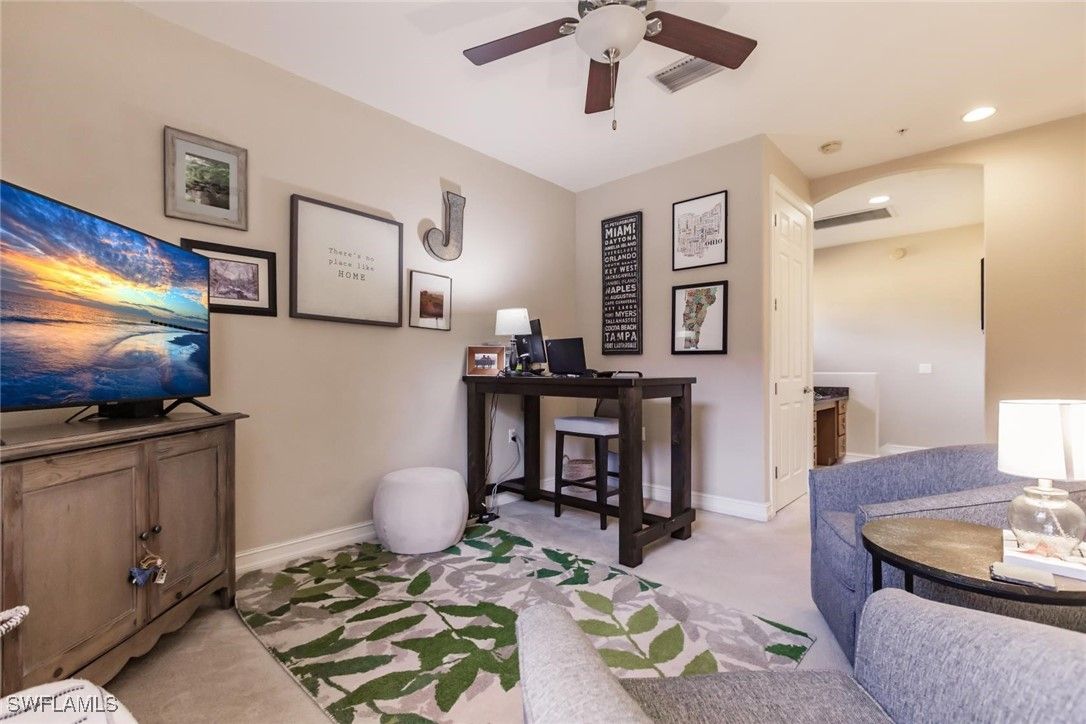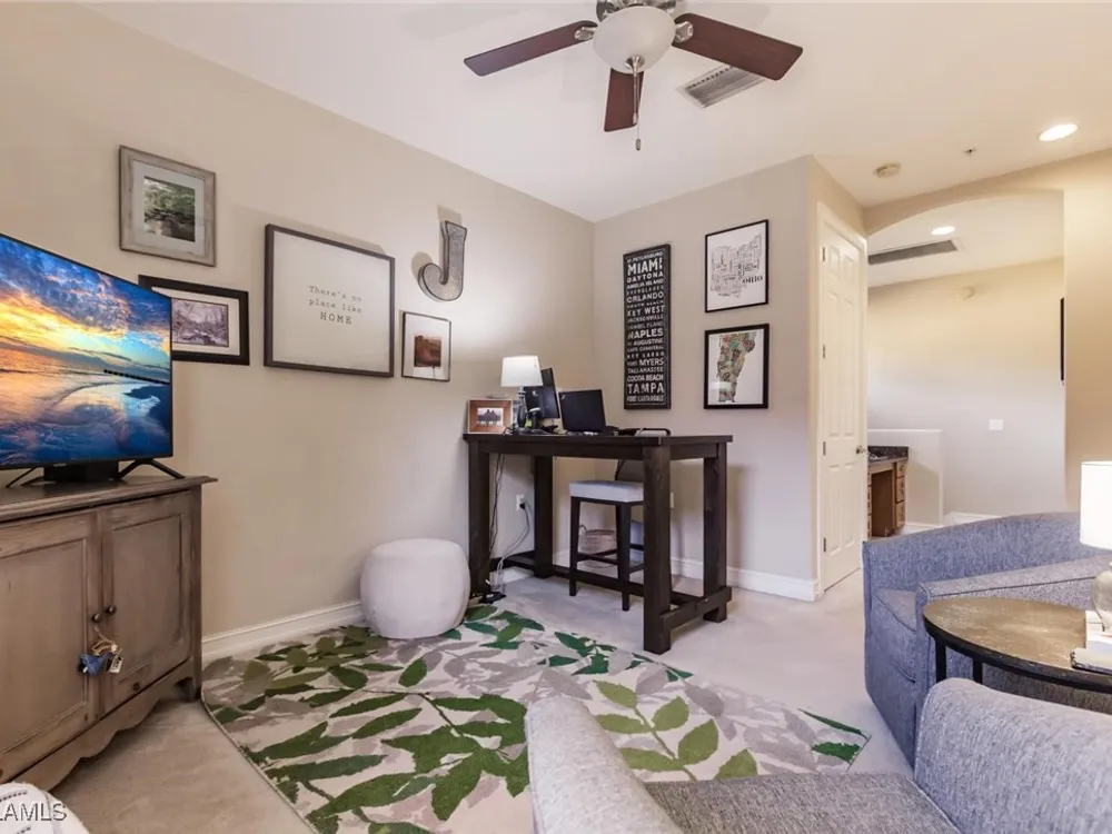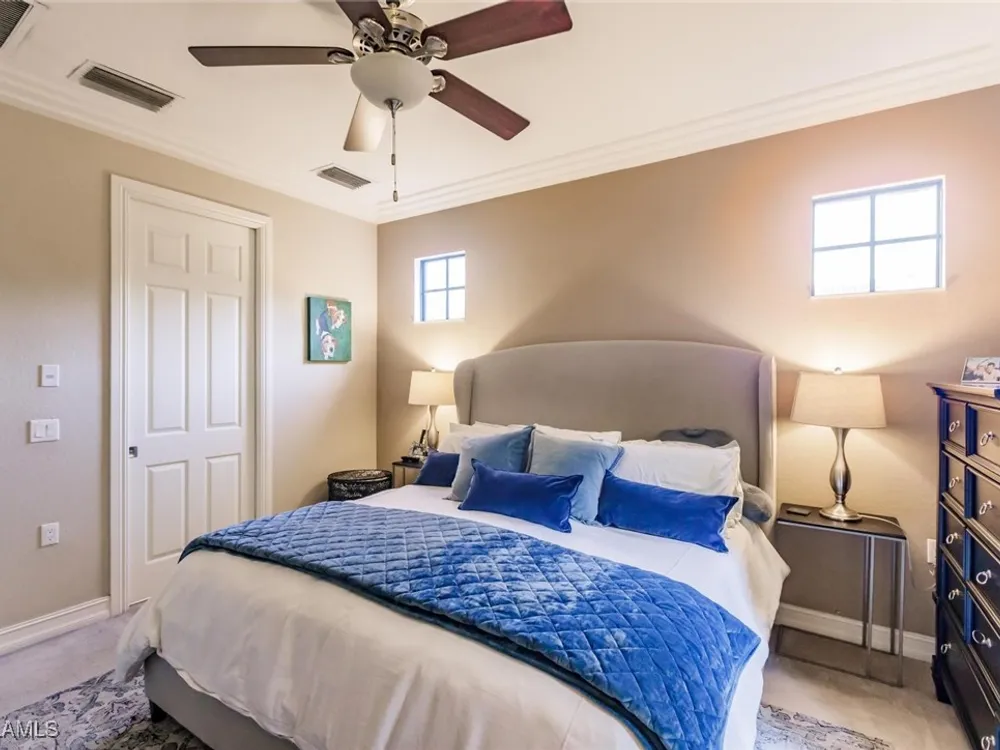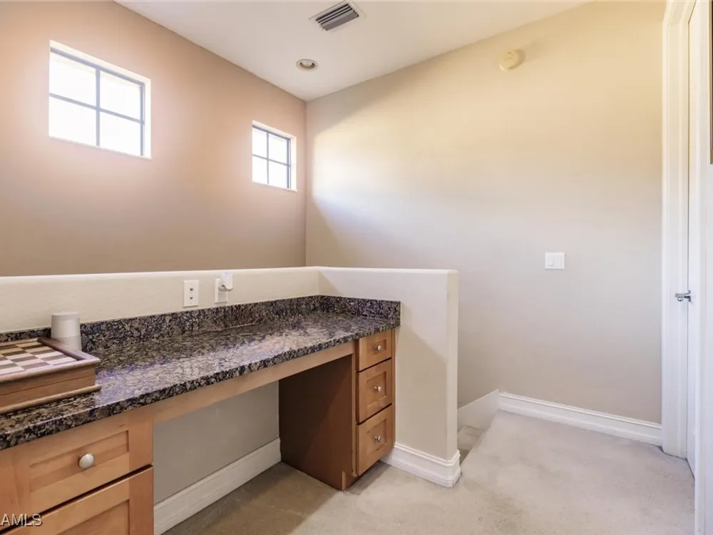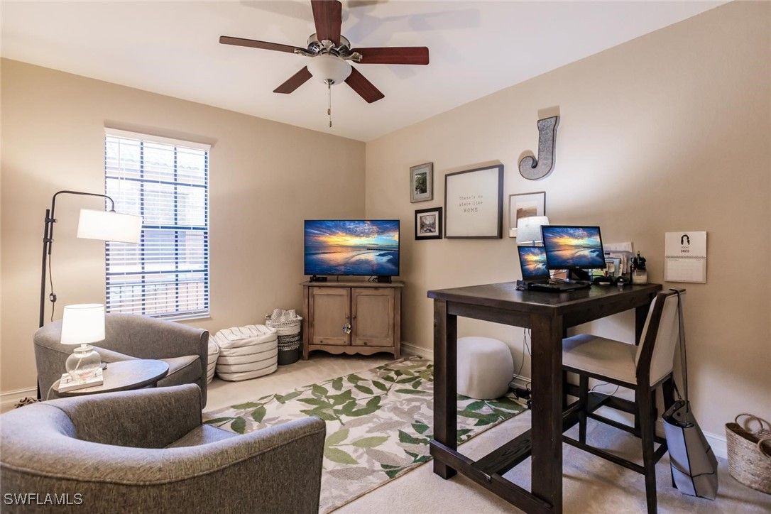 The only 3 full bath floor plan in Ole! This charming unfurnished two-story 'Laguna' Casita offers the perfect blend of privacy and convenience, with a serene preserve view that promises peaceful living. Situated on a picturesque, tree-lined street, you’ll be just a short stroll away from Ole’s vibrant Town Center, featuring a movie theater, state-of-the-art gym, resort-style pool, pub, ice cream shop, tennis courts, and more. As an end-unit, enjoy unparalleled privacy with no neighbors above, below, or on either side. The spacious 2,000 sq. ft. floor plan includes a first-floor bedroom with a full bath nearby, plus a primary suite upstairs with a luxurious en-suite, complete with a garden tub and separate shower. A versatile loft, study area with a built-in desk, guest bedroom, and additional full bath round out the upstairs living space. The home features tile and luxury vinyl plank flooring throughout—no carpet! The well-equipped kitchen boasts a breakfast nook, two pantries (one walk-in), and ample counter space. Additional conveniences include a first-floor laundry room with full-size appliances, and two one-car garages with extra storage. Finishing touches include impact doors and windows, newer top-of-the-line energy efficient Lennox Air Conditioner, new microwave and range, and a brand new roof. Only minutes from the beautiful beaches of Marco Island and Naples, plus dining, Starbucks, and shopping are within the neighborhood—this property offers the ultimate lifestyle in a prime location!
