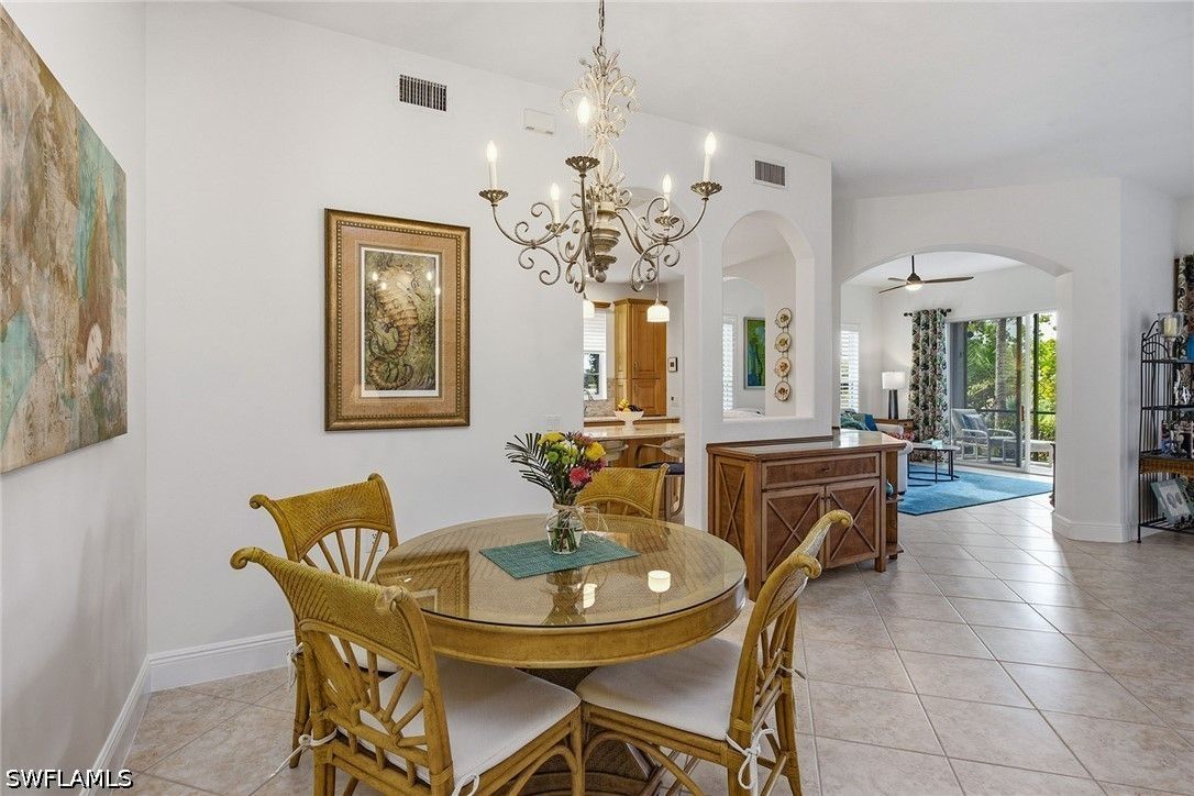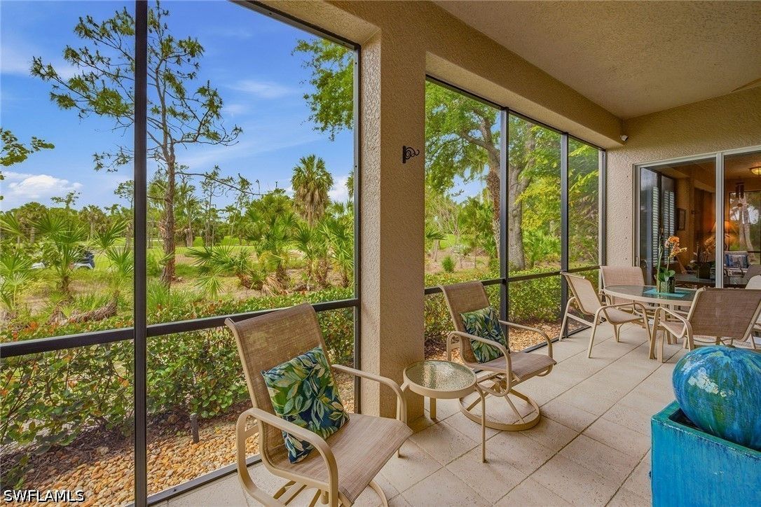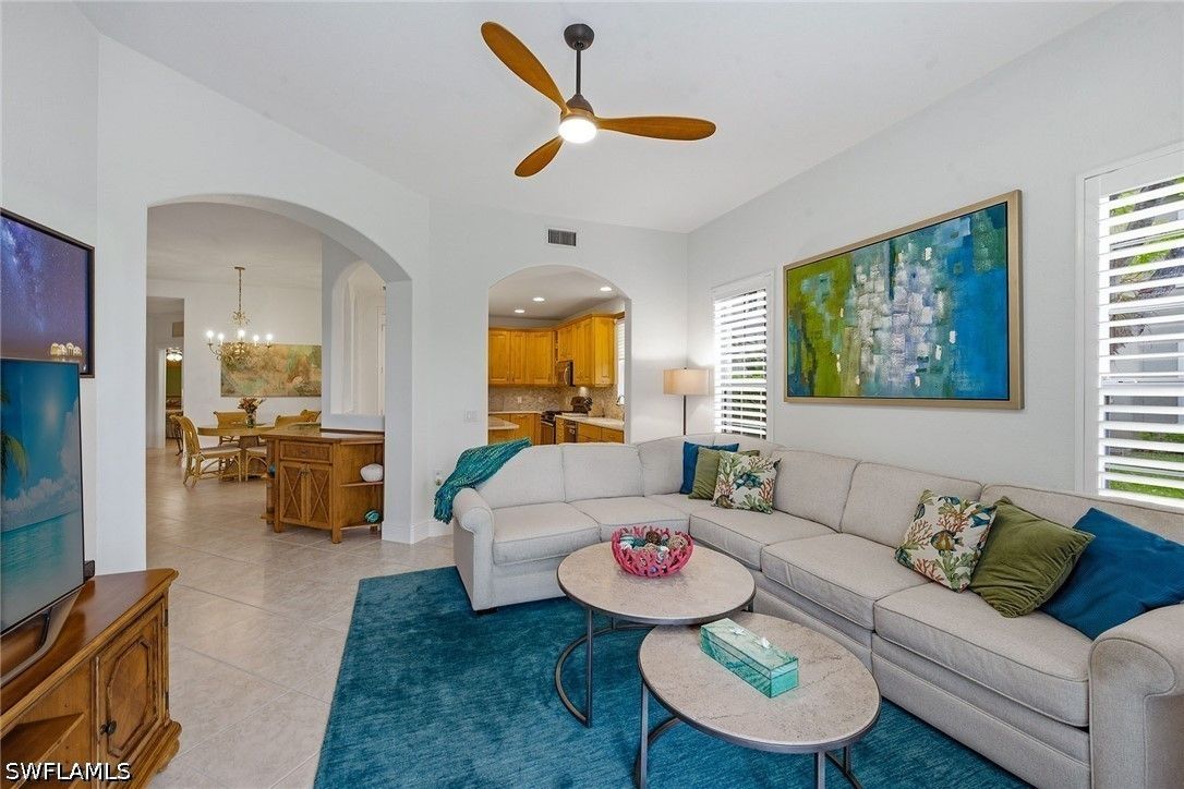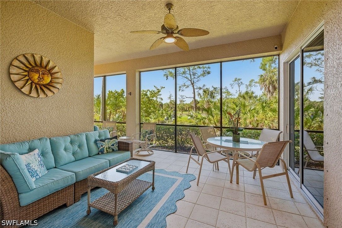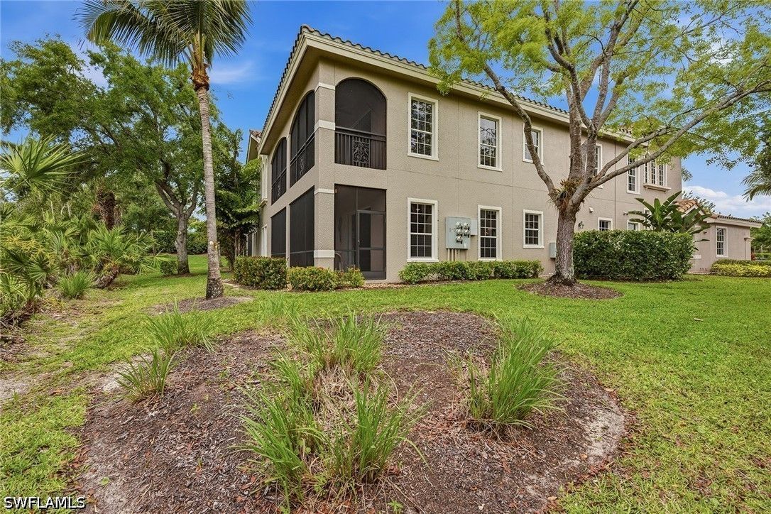 Enjoy tranquil golf course views from this well-maintained, beautifully furnished first-floor end residence in the desirable Cherry Oaks village of Fiddler’s Creek, ideally situated on “The Lane,” a quiet, private enclave with no through traffic and a serene lake in front, offering exceptional privacy and a peaceful setting. With sought-after southwestern exposure, this spacious home is filled with plentiful natural light, enhancing its warm and inviting ambiance throughout. Thoughtfully designed with the popular Blossom floor plan, this coach home features three spacious bedrooms plus a den, two full baths and a two-car garage, all complemented by a light, open-concept layout. Porcelain tile flooring set on a diagonal flows through the main living areas, while plantation shutters, recessed lighting and ceiling fans add both style and comfort. Expansive sliding glass doors anchor the living space, seamlessly blending indoor and outdoor living while framing picturesque views of the beautiful Rookery golf course, creating the perfect setting to relax or entertain on the private screened lanai. The open kitchen serves as a central gathering space, appointed with upgraded stainless-steel appliances, including a French door refrigerator with a freezer drawer, quartz countertops, natural gas cooking, a spacious island with pendant lighting, tile backsplash, breakfast bar and a pantry with custom wood shelving, offering both functionality and refined design. The private primary suite is a tranquil retreat featuring plantation shutters, direct lanai access and two walk-in closets with wood shelving, while the en-suite bath includes dual vanities, a soaking tub, frameless glass walk-in shower and private water closet. Two additional guest bedrooms provide comfortable accommodations with ample closet space and easy access to a full bath. A separate laundry room with full-size washer and dryer and utility sink adds convenience. Additional features include storm shutters, a tankless gas water heater and a two-car garage with epoxy flooring and built-in cabinetry. Residents enjoy lush landscaping and the impressive 54,000-square-foot clubhouse with fine and casual pool-side dining, resort-style pools with waterfalls and slides, state-of-the-art fitness center with trainers and classes, spa services, sauna and steam room, active tennis and pickleball with 10 pickleball courts, bocce and a vibrant social and event calendar, along with miles of scenic, tree-lined sidewalks perfect for walking, running and bicycling, while optional golf, beach and marina memberships complete this exceptional Naples lifestyle. The two championship golf courses within the community add to the beauty. Exceptional location convenient to 5th Ave and 3rd Street in Old Naples, the boutiques and beaches of Marco Island, and everything that we love about life in SW Florida. Schedule your tour of this outstanding coach home and exceptional community today, you will not be disappointed.