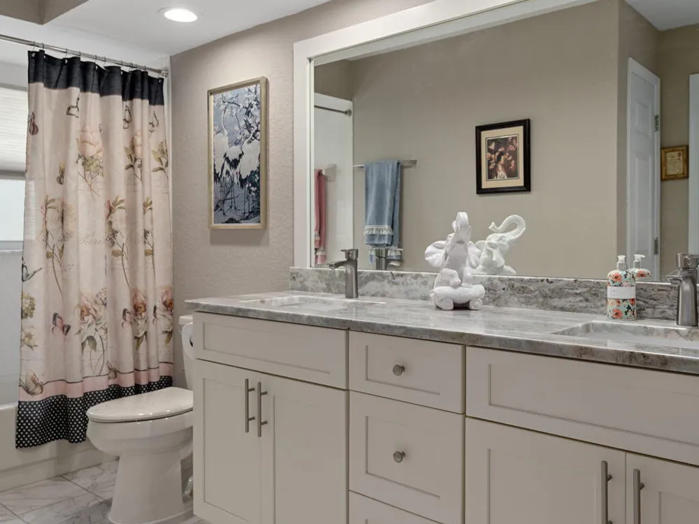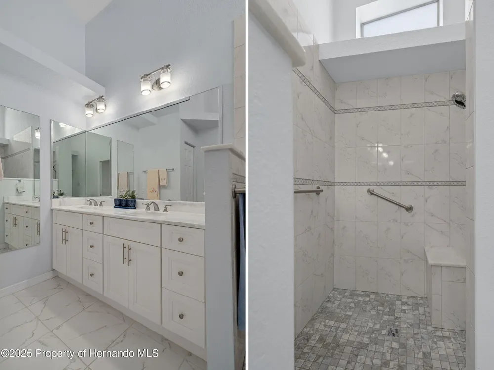 - Built-in Features, Ceiling Fan(s), Double Vanity, Eat-in Kitchen, Entrance Foyer, His and Hers Closets, Open Floorplan, Primary Bathroom - Shower No Tub, Split Bedrooms, Vaulted Ceiling(s), Walk-In Closet(s), Split Plan