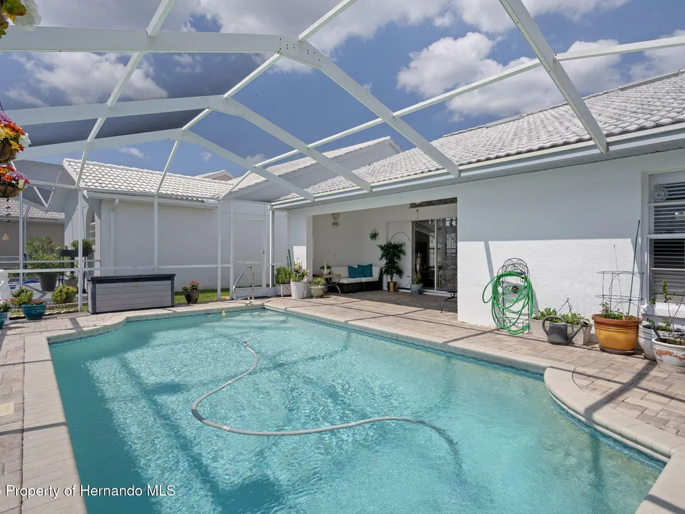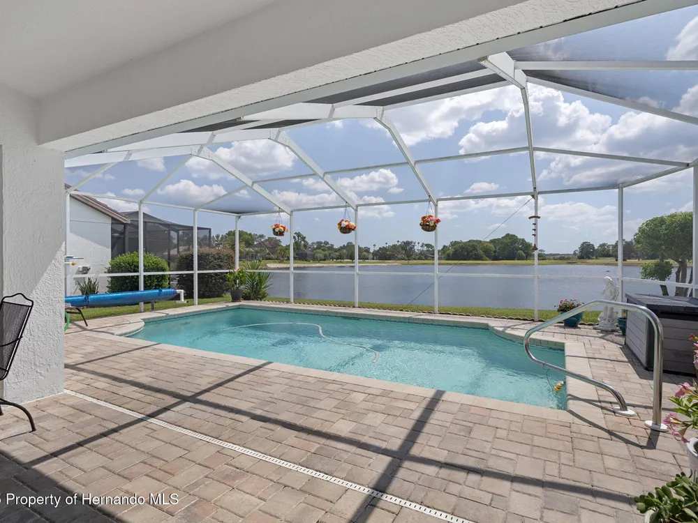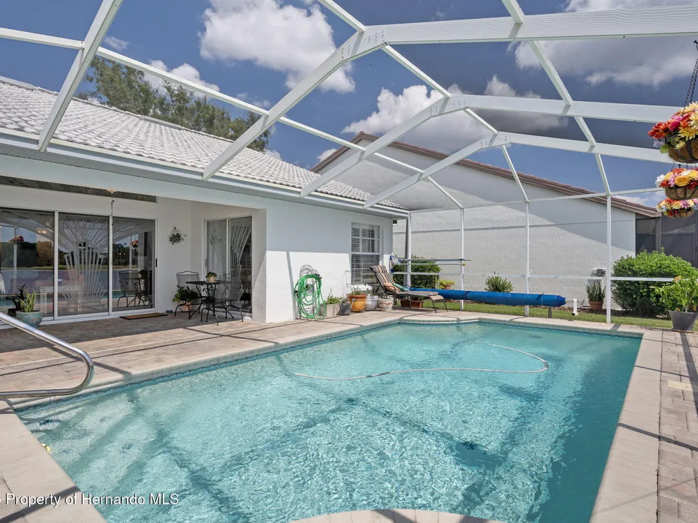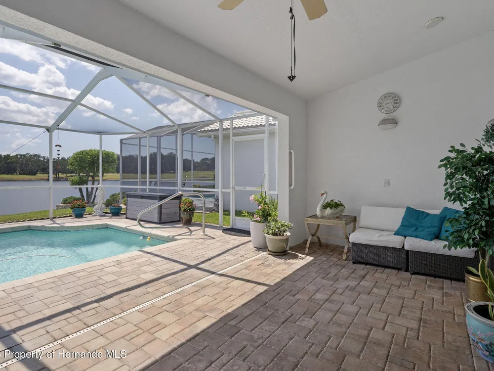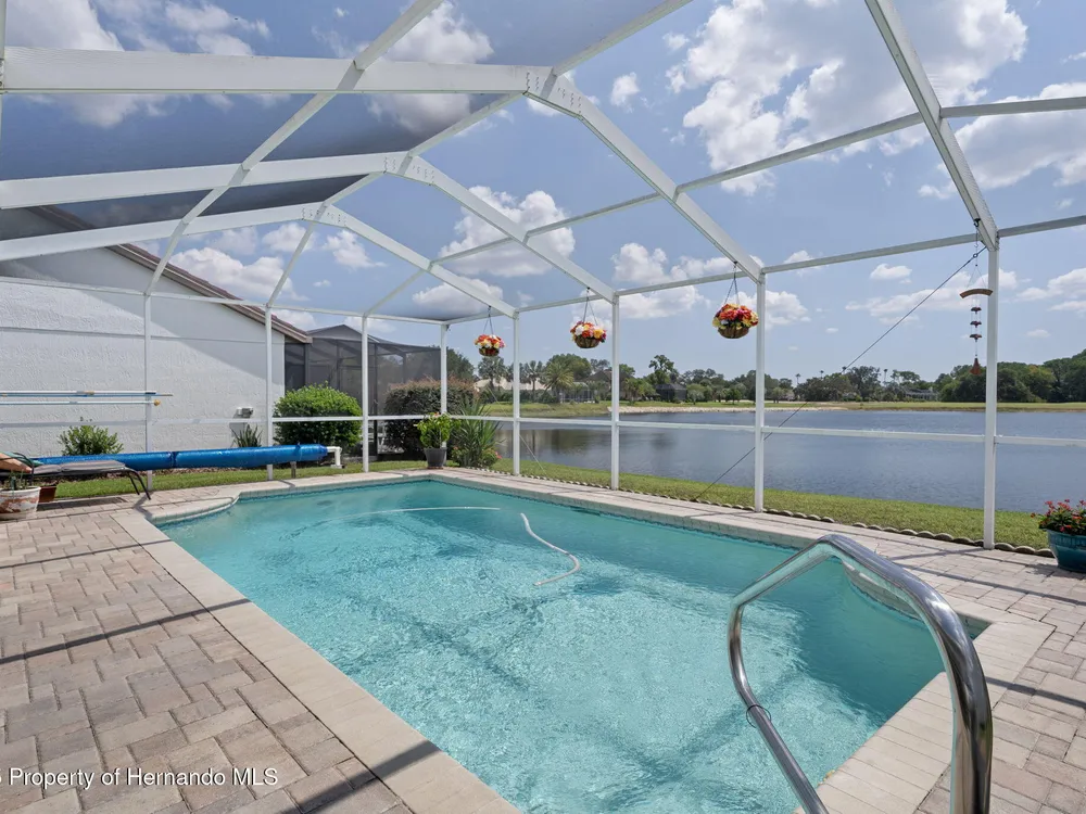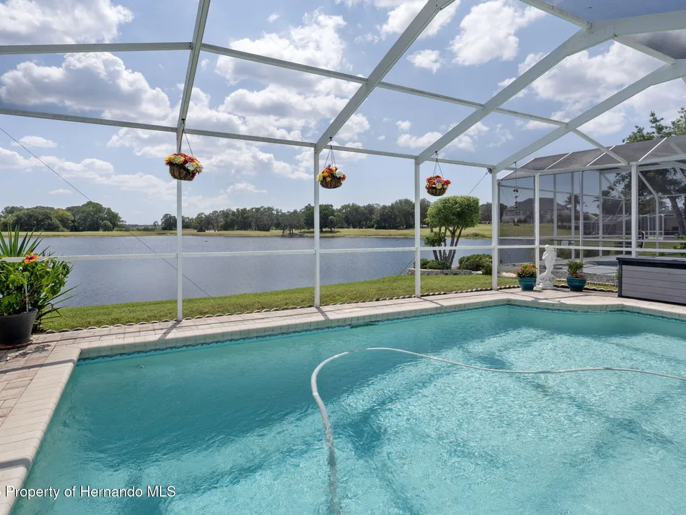 (Active Under Contract) Welcome home to one of the most spectacular views in Hernando County! Watch the sun rise and set from your private pool area overlooking the ever-changing views of a freshwater lake. Located in the prestigious Glen Lakes community, your future offers a lifestyle of comfort, activities, convenience and security above expectations. As you drive into your community by way of an impressive boulevard, you will pass a manned gatehouse with separate automated entry-gate for residents. Your beautiful new home welcomes you through a covered front porch area and into an inviting foyer. Do not yet be distracted by the views. Ahead is a bright living space with cathedral ceilings and sliders to your outside oasis, complete with heated pool and covered patio surrounded by upscale pavers. Let the captivating views release your attention for a minute and look at the newly renovated kitchen with high ceilings, soft-close cabinets, granite/quartz countertops, stainless steel appliances, plentiful LED lighting and a bay window area for your breakfast nook. The large owner's suite offers a new bath with walk-in shower, dual vanity and two walk-in closets. The second bedroom has a built-in murphy bed and direct access to another renovated bath. Other recent renovations and upgrades include a 2024 hot water heater, 2014 roof and 2013 AC. The pool pump and pool heater are also newer. Your HOA includes access to a 35,000 square-foot clubhouse, lawn and sprinkler maintenance as well as cable television and internet! The clubhouse features pub, restaurant, exercise facility and function rooms. If that is not enough, you can take a golf cart or walk down the street to join one of the top championship golf courses in Florida designed by Ron Garl or join the social club with pool, exercise room and other activity centers. Your amazing Glen Lakes community also adjoins and provides direct access to the 85,000-acre Chassahowitzka National Wildlife Refuge, which borders the Gulf of Mexico providing options for biking, hiking and the discovery of amazing freshwater springs. All this is close to shopping, (where you can take your golf cart), and about 1 hour to Tampa and an international airport. You will not find another pool home with such views at this price range. Yes, this is the house of your dreams. Come home today!