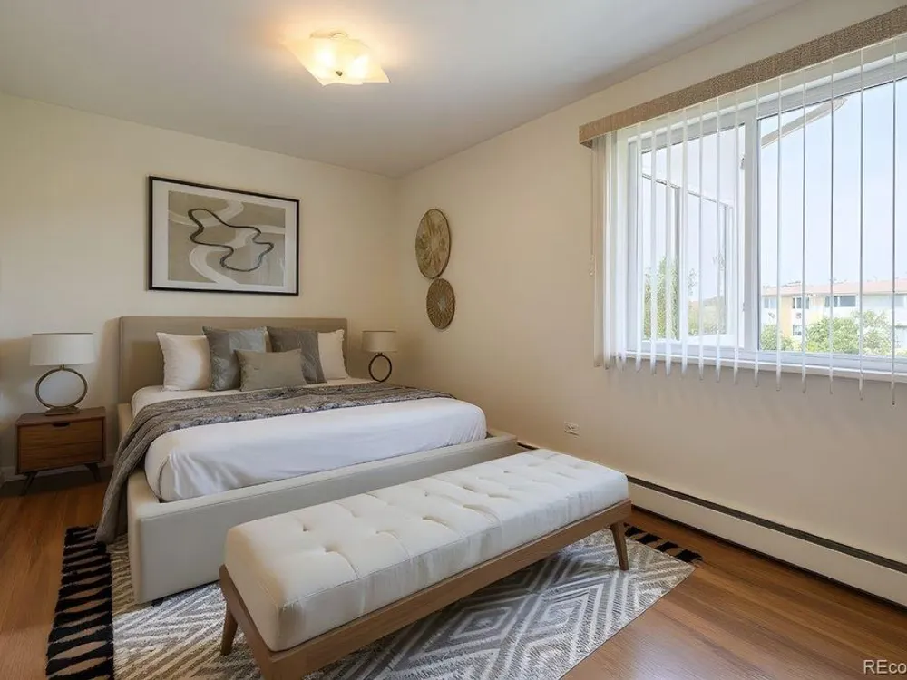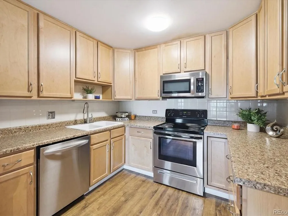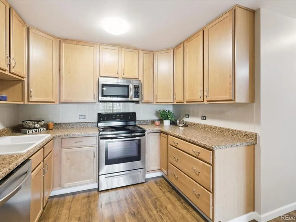 Penthouse beauty! Remodeled top floor condo in Windsor Gardens: 945 sf, 2 bedrooms, 1 bathroom, & 1 car detached garage! Move right in- updated & great condition! Kitchen features updated cabinets & countertops reconfigured to offer more countertop space, & all stainless appliances are included. The bathroom has been remodeled with updated vanity, stone top, updated fixtures, & large walk-in shower. No carpet! Laminate floors thru-out & tile floor in the bathroom. Neutral paint thru-out, updated baseboards- 2 updated wall ac units included! Enjoy city/mountain views, and vast open space from the enclosed vinyl glass/screened in lanai, & the vinyl slider door required by the HOA is already installed! 2 wall ac units included! This community includes an additional storage room in the building. The clubhouse & all the amenities are just down the street. Great time to buy, this one is a must see! **Windsor Gardens is Colorado's Largest Age 55+ Active Adult Living Condo Community. Did you know? Monthly HOA Dues include annual property taxes! And heat, water, sewer, trash, round-the-clock patrolling community responders, full time onsite association management, grounds/building maintenance, and activities department. Enjoy clubhouse amenities such as fitness center, indoor/outdoor pools, hot tub, sauna, billiards, library, craft rooms for ceramics, sewing, woodworking, and 9 hole par 3 golf course and onsite restaurant both open to the public. Stay engaged with a wide array of activities, clubs, and events scheduled every month. Additional features include garden plot program, private walking trail and nature preserve, and RV/Boat storage. The Highline Canal runs full length along south side of the complex. RTD Bus Stops located thru-out the community. FHA/VA approved. Close to restaurants, stores, shopping…Minutes to Lowry, Hwy 225, Cherry Creek…Easy access to DIA and downtown. Come see for yourself what Windsor Gardens has to offer. ©2021**