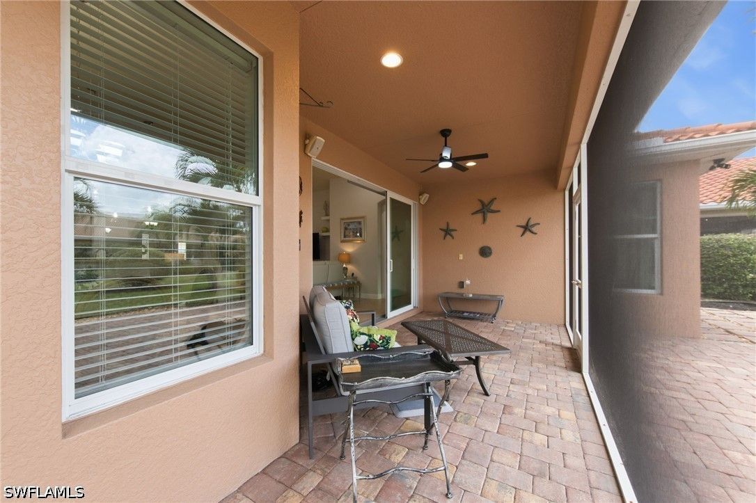 South-facing exposure, a private landscaped setting, and tranquil lake views set the stage for this highly sought-after Toll Brothers Brevia model in The Reserve at Estero. Offering 3 bedrooms, with the third ideal as a home office or guest space, 2 bathrooms, and nearly 2,000 square feet, the open-concept layout is enhanced by vaulted ceilings and seamless indoor-outdoor flow. The screened lanai opens to an extended paver patio with ample room to design a custom pool, creating the perfect outdoor retreat. The kitchen features a gas cooktop, stainless steel appliances, and granite countertops, well suited for both everyday living and entertaining. The primary suite is filled with natural light and offers dual walk-in closets along with a spacious bath complete with dual sinks, a makeup vanity, soaking tub, and a large walk-in shower. Recent updates include reverse osmosis, disposal, and dishwasher (2026), interior paint (2026), updated fans (2026), new LED lighting (2026), custom drawer rollouts (2025), and a freshly sanded and sealed driveway (2026). Impact-resistant windows and doors provide added protection and efficiency, and the home is located in Flood Zone X. The Reserve at Estero is a natural gas, 24-hour guard-gated community offering resort-style amenities including a clubhouse, fitness center, pool, spa, tennis, pickleball, and more, all just minutes from Coconut Point Mall, RSW Airport, Hertz Arena, and beautiful Gulf beaches, conveniently located between Fort Myers and Naples.