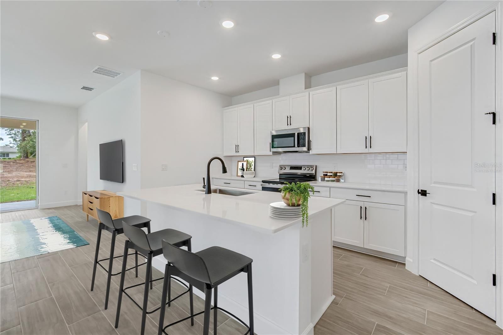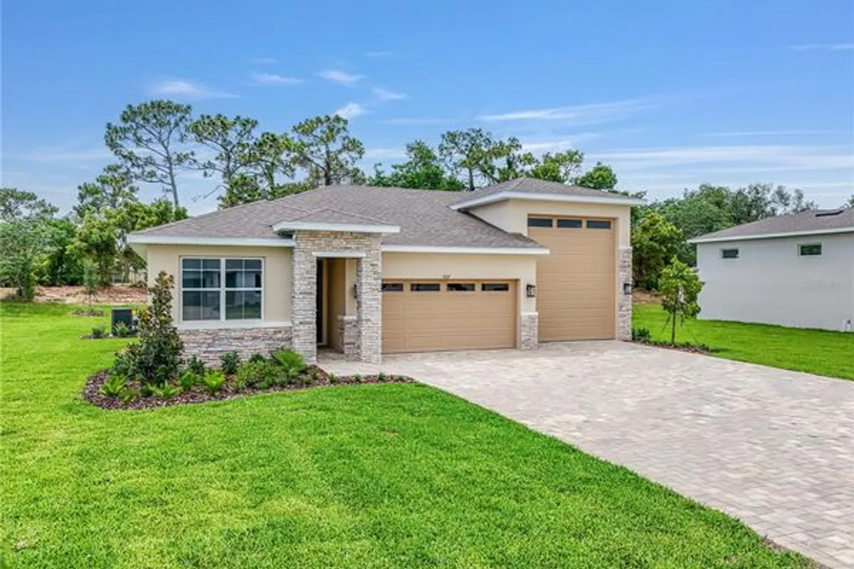 Explore this inspired Bronze home, ready for quick move-in on a homesite boasting driveway pavers. Included features: an inviting covered entry; a well-appointed kitchen offering quartz countertops, 42" cabinets, stainless-steel appliances, a walk-in pantry and a center island; an open dining area; a large great room; a beautiful primary suite showcasing a spacious walk-in closet and a private bath; a convenient laundry; a relaxing covered patio; an RV garage and a 2-car garage. This could be your dream home! There is NO CDD and the HOA is $300/month but includes a Spectrum internet package. Virtually Staged Photos.