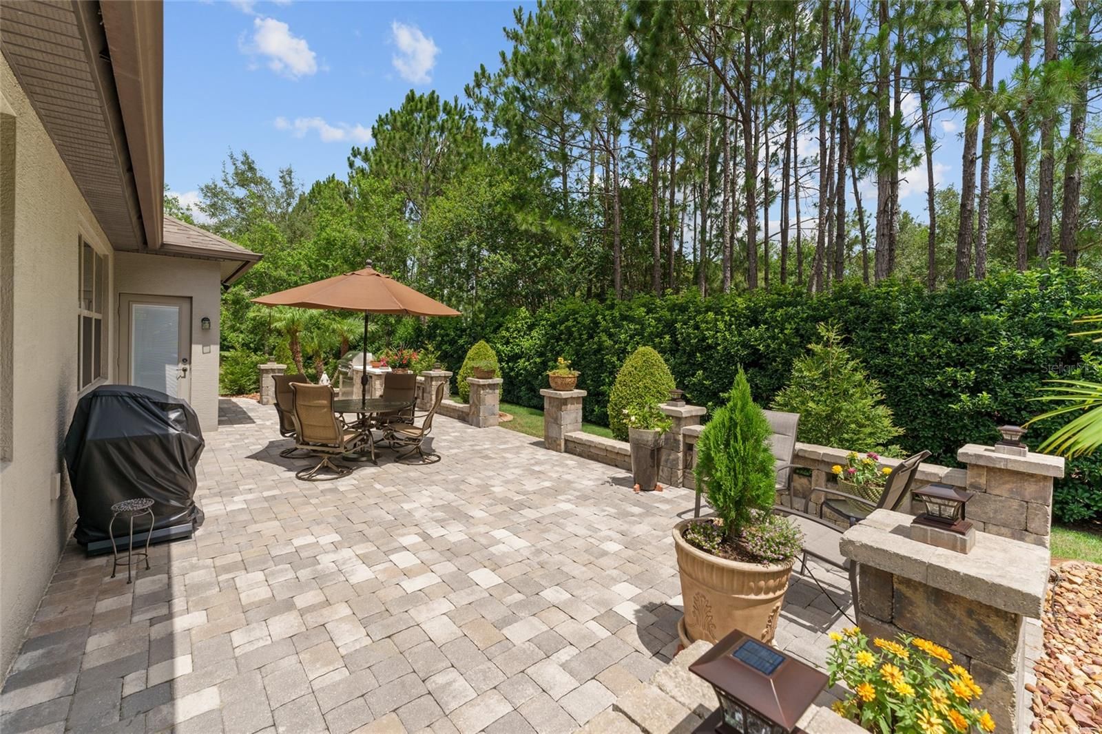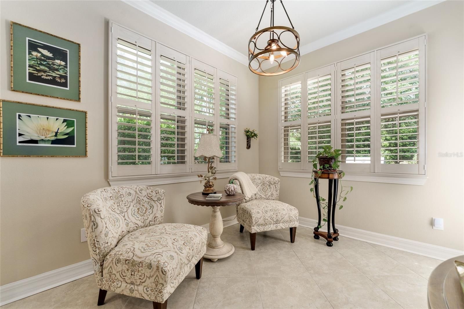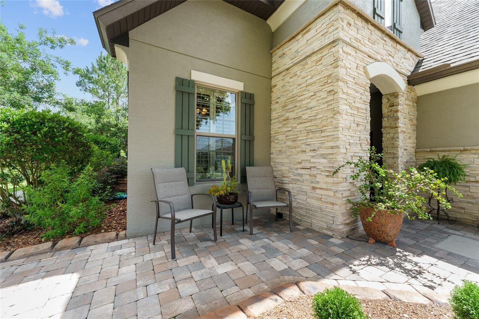 Don't miss your chance to own this professionally designed former model home with a bonus Den and Loft area nestled in the gated, 55+ Stone Creek Golf Course Community, packed full of resort-style amenities. Prepare to be amazed by this exceptional Castle Rock model on a premium lot packed with private and peaceful nature views in a small pocket of the community comprised of former model homes. Refined living begins with lush mature landscaping, a striking two-story column-flanked portico, stacked stone accents, and a widened driveway featuring a decorative apron. Concrete curbing with river rock ground cover and walkways leading to the rear of the home add to its curb appeal. A meticulously crafted brick paver-lined entryway with a charming seating area welcomes you into spacious and versatile interiors adorned with crown molding, Plantation shutters, low-maintenance tile flooring, recessed LED downlighting, surround sound wiring, and a light, airy neutral color palette. The Chef’s kitchen is a masterpiece, boasting upgraded cabinetry, an oversized island perfect for casual dining and meal prep, KitchenAid stainless appliances, quartz countertops, an expanded pantry, lower cabinet accent lighting, and a wet bar complete with a wine rack and cooler. The Kitchen is open to the large Gathering Room and a connecting Sunroom opening to a large paver-lined terrace with a built-in Summer kitchen perfect for outdoor entertaining while overlooking the picturesque nature views. The Owner’s Suite is a private retreat, featuring tranquil tree-lined views, a tray ceiling, recently updated wood flooring, and a designer walk-in closet with custom organizers. The spa-like en suite bath exudes elegance, with a transom window inviting natural light, a double sink vanity, a walk-in shower, and a separate garden tub for ultimate relaxation. Upstairs, the loft space offers additional versatility with a spacious bedroom and bathroom, ensuring privacy for guests. This flex space is also perfect for a game room, media retreat, or personal getaway. Additional highlights include a newer HVAC system (2021), recently updated cordless, easy-open blinds, and extra shelving in the garage for added storage needs. Embrace the exceptional lifestyle of this vibrant community, featuring a 24/7 staffed gated entrance for security and peace of mind. Luxury-inspired amenities include heated pools, a state-of-the-art fitness center, a spa, and relaxing hot tubs and saunas. Stay active with pickleball, bocce, tennis, and a softball field, while a dedicated lifestyle staff curates entertainment, activities, and special events to foster connections. Just beyond the gates, enjoy a golf course, pro shop, and restaurant—perfect for socializing and unwinding. Make your move today and experience resort-style living at its finest!