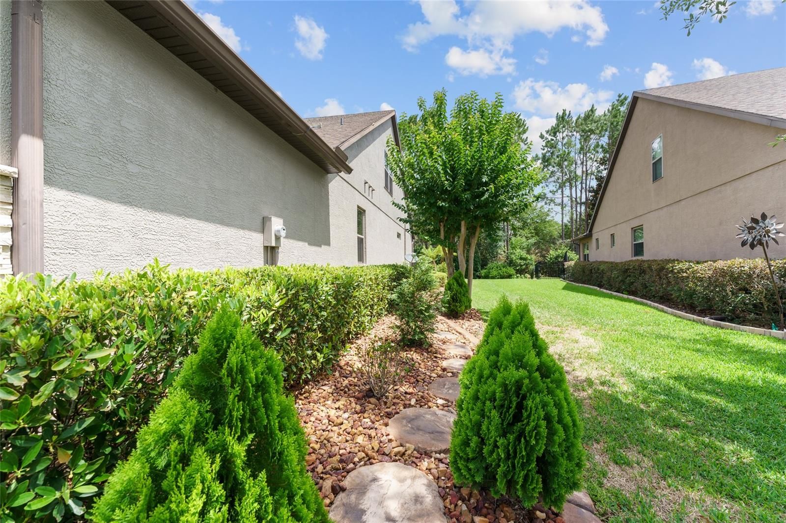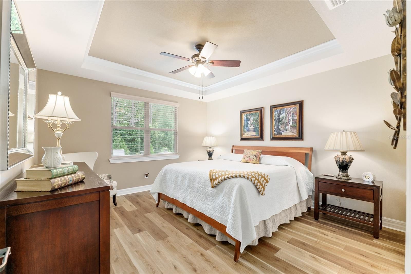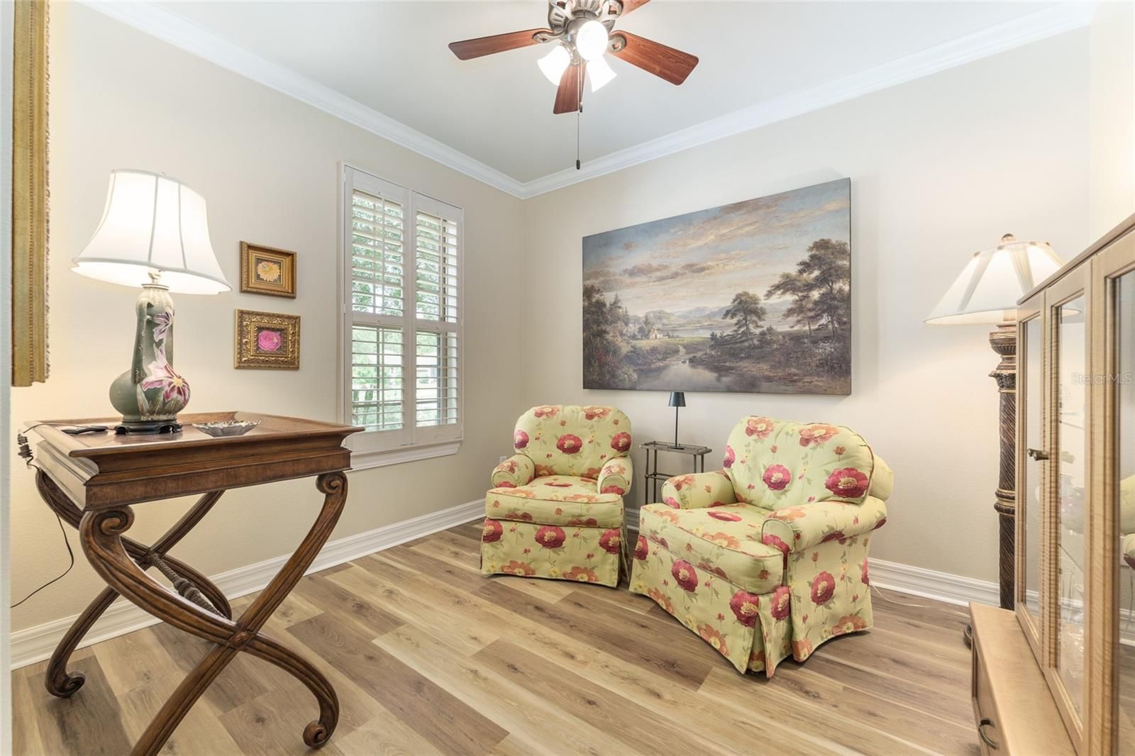 Don't miss your chance to own this professionally designed former model home with a bonus Den and Loft area nestled in the gated, 55+ Stone Creek Golf Course Community, packed full of resort-style amenities. Prepare to be amazed by this exceptional Castle Rock model on a premium lot packed with private and peaceful nature views in a small pocket of the community comprised of former model homes. Refined living begins with lush mature landscaping, a striking two-story column-flanked portico, stacked stone accents, and a widened driveway featuring a decorative apron. Concrete curbing with river rock ground cover and walkways leading to the rear of the home add to its curb appeal. A meticulously crafted brick paver-lined entryway with a charming seating area welcomes you into spacious and versatile interiors adorned with crown molding, Plantation shutters, low-maintenance tile flooring, recessed LED downlighting, surround sound wiring, and a light, airy neutral color palette. The Chef’s kitchen is a masterpiece, boasting upgraded cabinetry, an oversized island perfect for casual dining and meal prep, KitchenAid stainless appliances, quartz countertops, an expanded pantry, lower cabinet accent lighting, and a wet bar complete with a wine rack and cooler. The Kitchen is open to the large Gathering Room and a connecting Sunroom opening to a large paver-lined terrace with a built-in Summer kitchen perfect for outdoor entertaining while overlooking the picturesque nature views. The Owner’s Suite is a private retreat, featuring tranquil tree-lined views, a tray ceiling, recently updated wood flooring, and a designer walk-in closet with custom organizers. The spa-like en suite bath exudes elegance, with a transom window inviting natural light, a double sink vanity, a walk-in shower, and a separate garden tub for ultimate relaxation. Upstairs, the loft space offers additional versatility with a spacious bedroom and bathroom, ensuring privacy for guests. This flex space is also perfect for a game room, media retreat, or personal getaway. Additional highlights include a newer HVAC system (2021), recently updated cordless, easy-open blinds, and extra shelving in the garage for added storage needs. Embrace the exceptional lifestyle of this vibrant community, featuring a 24/7 staffed gated entrance for security and peace of mind. Luxury-inspired amenities include heated pools, a state-of-the-art fitness center, a spa, and relaxing hot tubs and saunas. Stay active with pickleball, bocce, tennis, and a softball field, while a dedicated lifestyle staff curates entertainment, activities, and special events to foster connections. Just beyond the gates, enjoy a golf course, pro shop, and restaurant—perfect for socializing and unwinding. Make your move today and experience resort-style living at its finest!