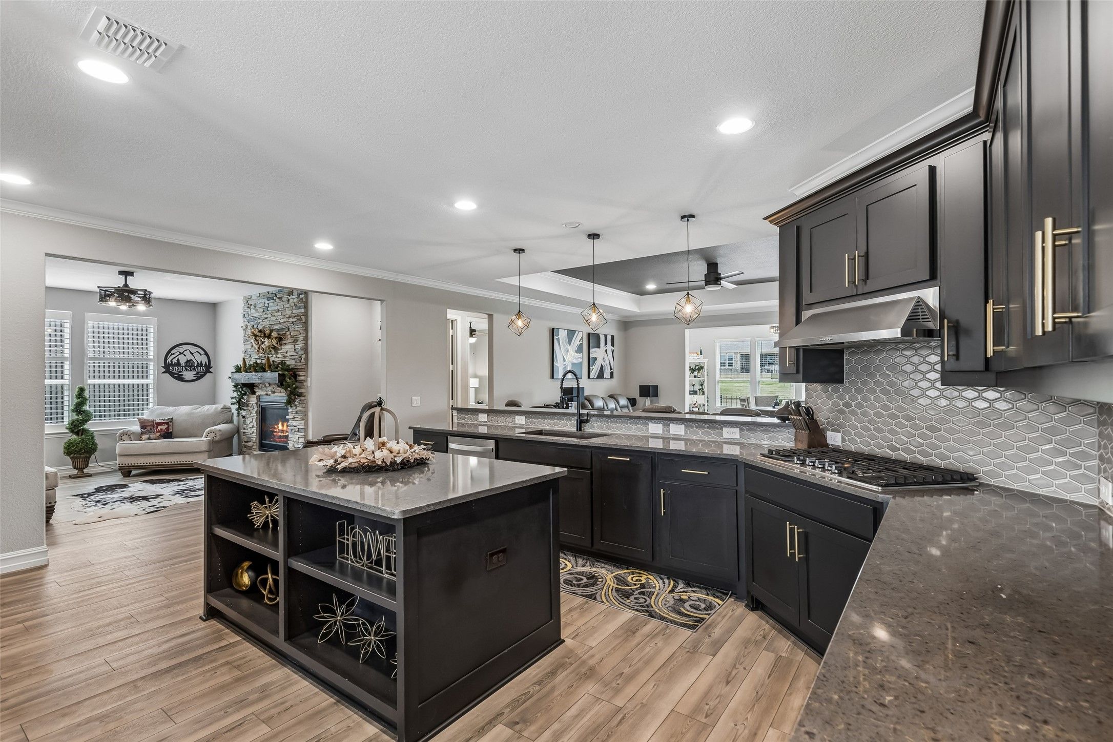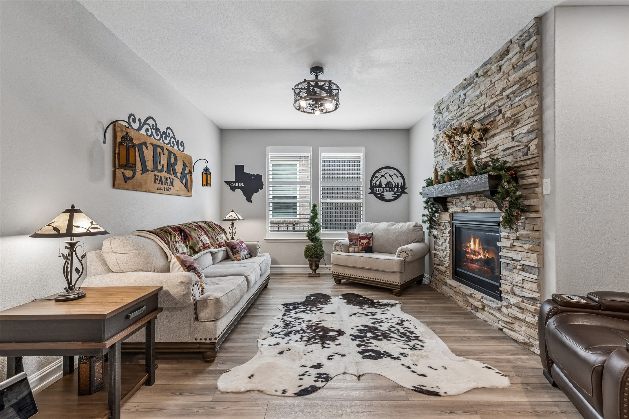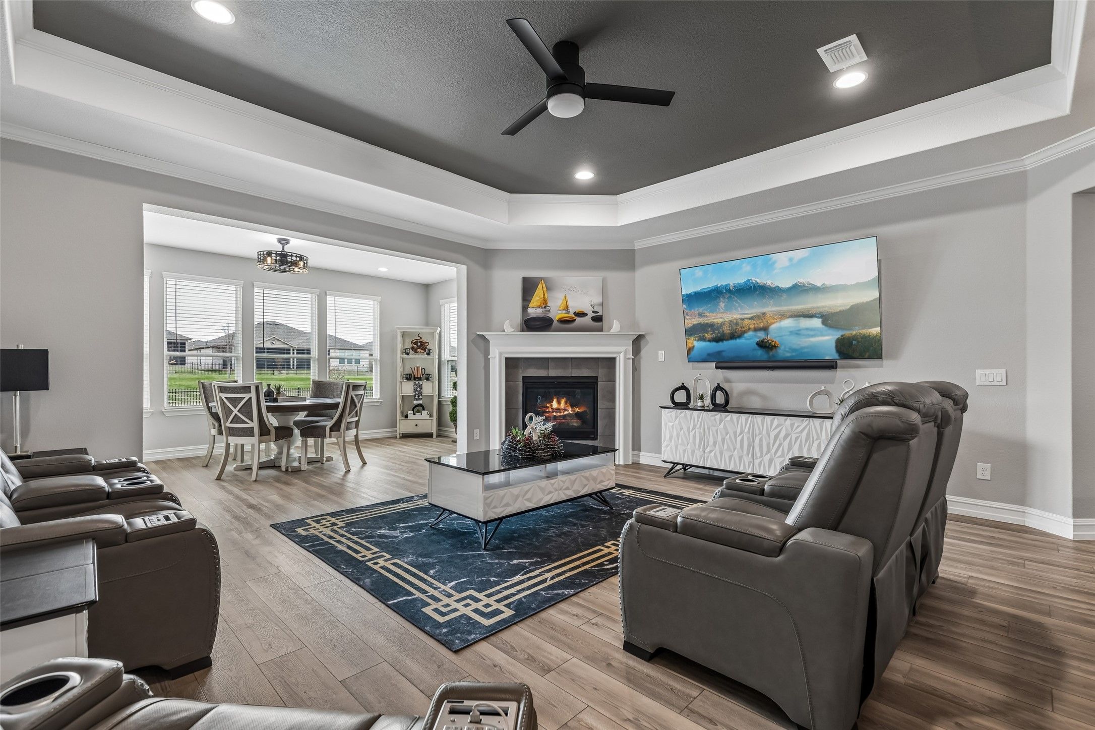 Experience tranquil, easy living in this beautifully furnished home located in a premier Del Webb 55+ active adult community. Perfectly situated on an oversized cul-de-sac lot, this meticulously maintained residence offers a peaceful setting and a lifestyle designed for comfort, convenience, and enjoyment. Best of all, the home comes fully furnished and thoughtfully decorated in a stylish, on-trend design—everything can stay, making this truly move-in ready. The spacious one-story floorplan features multiple living areas ideal for relaxing or entertaining, along with two cozy fireplaces that add warmth and charm throughout the home. Rich granite countertops enhance both the kitchen and bathrooms, adding timeless elegance and durability. Extra flex spaces provide the perfect accommodations for visiting family and guests, offering comfort and privacy. Car enthusiasts and hobbyists will appreciate the oversized 2.5-car garage, complete with a convenient mini-split system for climate control, added security, and extra storage options. A golf cart is also included, making it easy to explore the beautiful community and access nearby amenities. From the model-home presentation to the thoughtful upgrades throughout, this home truly stands out. Enjoy peaceful mornings, relaxing evenings, and the vibrant lifestyle that Del Webb communities are known for—featuring resort-style amenities, social activities, and a welcoming neighborhood atmosphere. This exceptional home offers the perfect blend of comfort, style, and carefree living.