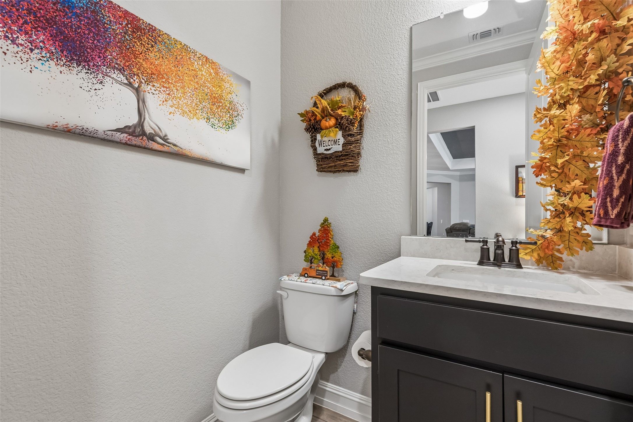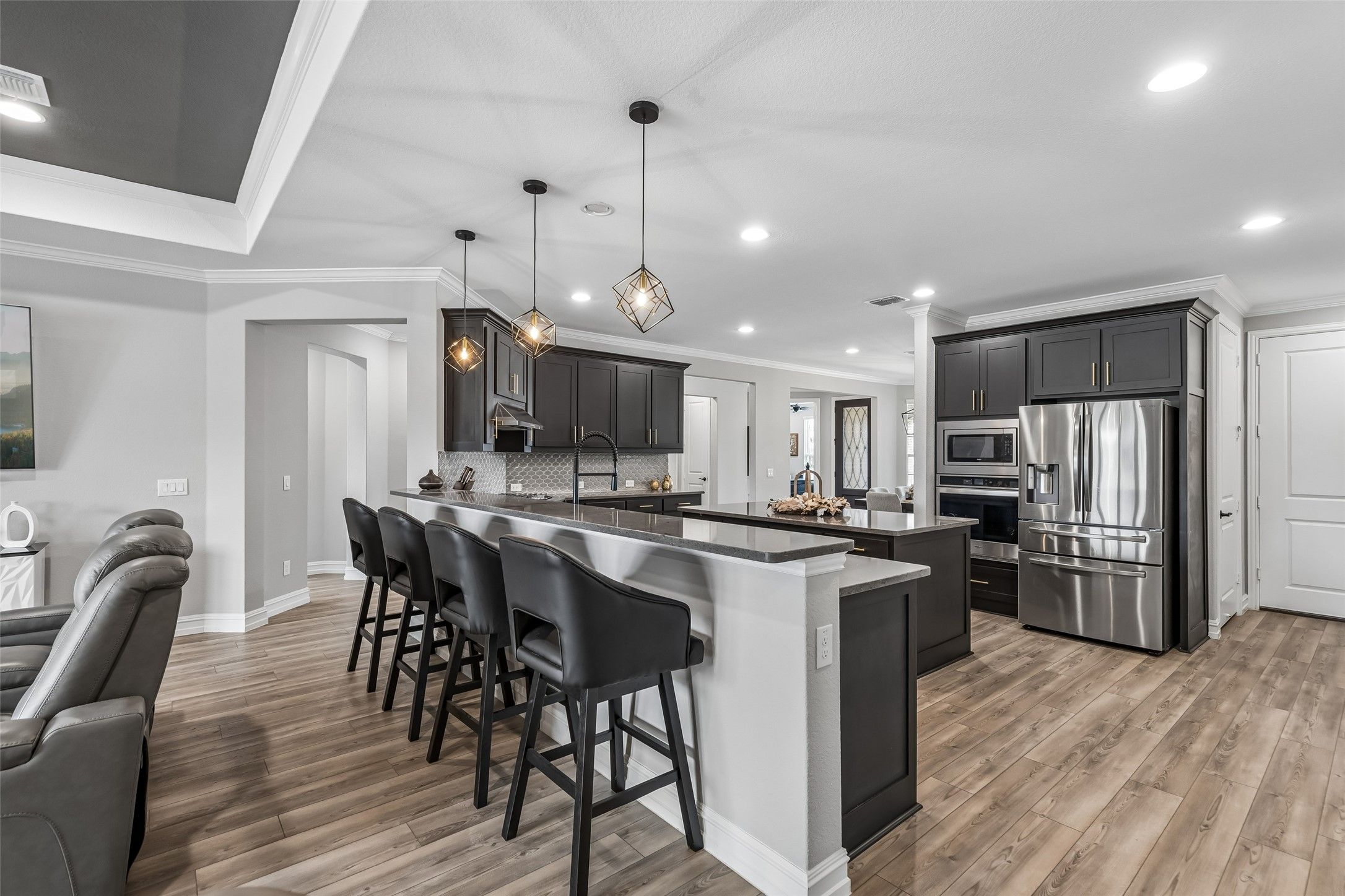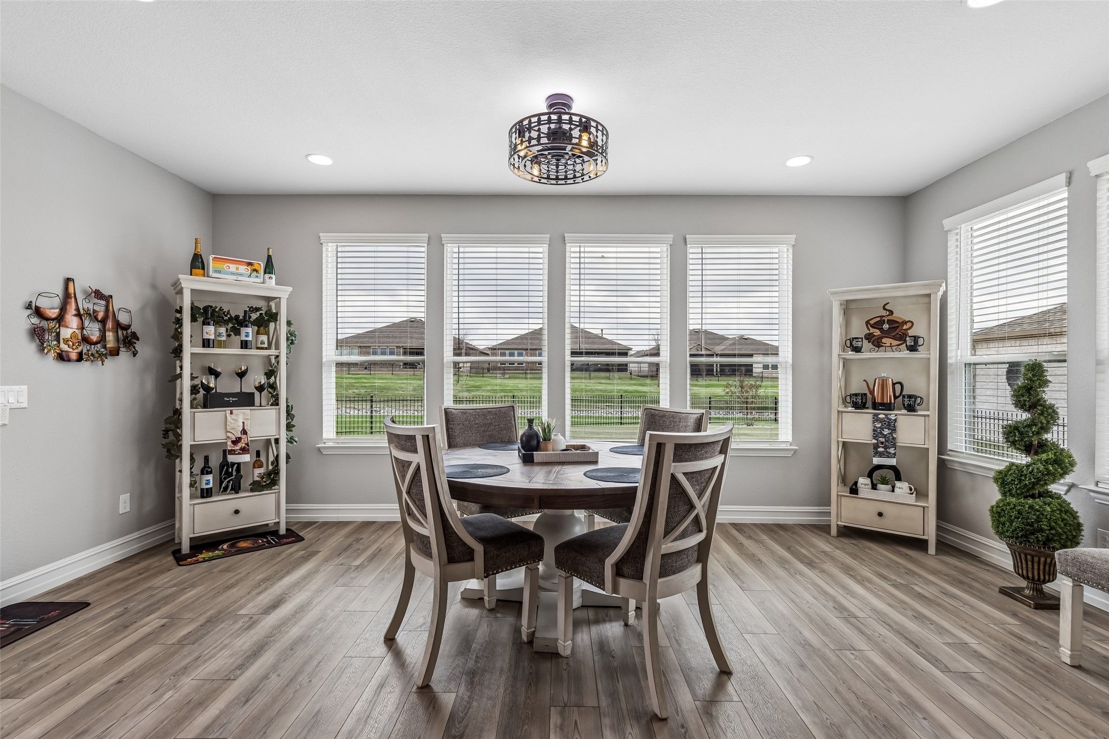 Experience tranquil, easy living in this beautifully furnished home located in a premier Del Webb 55+ active adult community. Perfectly situated on an oversized cul-de-sac lot, this meticulously maintained residence offers a peaceful setting and a lifestyle designed for comfort, convenience, and enjoyment. Best of all, the home comes fully furnished and thoughtfully decorated in a stylish, on-trend design—everything can stay, making this truly move-in ready. The spacious one-story floorplan features multiple living areas ideal for relaxing or entertaining, along with two cozy fireplaces that add warmth and charm throughout the home. Rich granite countertops enhance both the kitchen and bathrooms, adding timeless elegance and durability. Extra flex spaces provide the perfect accommodations for visiting family and guests, offering comfort and privacy. Car enthusiasts and hobbyists will appreciate the oversized 2.5-car garage, complete with a convenient mini-split system for climate control, added security, and extra storage options. A golf cart is also included, making it easy to explore the beautiful community and access nearby amenities. From the model-home presentation to the thoughtful upgrades throughout, this home truly stands out. Enjoy peaceful mornings, relaxing evenings, and the vibrant lifestyle that Del Webb communities are known for—featuring resort-style amenities, social activities, and a welcoming neighborhood atmosphere. This exceptional home offers the perfect blend of comfort, style, and carefree living.