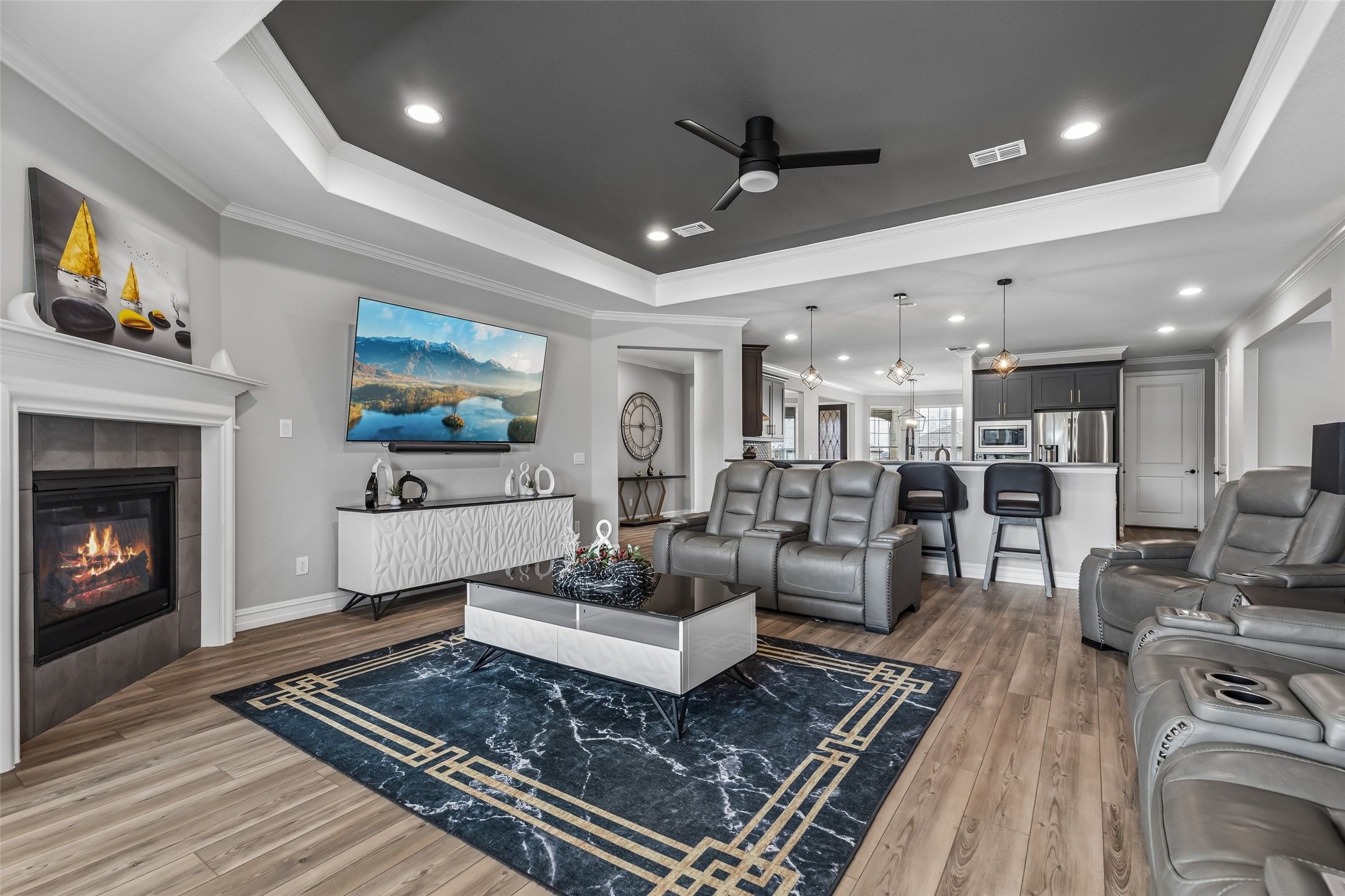 Experience tranquil, easy living in this beautifully furnished home located in a premier Del Webb 55+ active adult community. Perfectly situated on an oversized cul-de-sac lot, this meticulously maintained residence offers a peaceful setting and a lifestyle designed for comfort, convenience, and enjoyment. Best of all, the home comes fully furnished and thoughtfully decorated in a stylish, on-trend design—everything can stay, making this truly move-in ready. The spacious one-story floorplan features multiple living areas ideal for relaxing or entertaining, along with two cozy fireplaces that add warmth and charm throughout the home. Rich granite countertops enhance both the kitchen and bathrooms, adding timeless elegance and durability. Extra flex spaces provide the perfect accommodations for visiting family and guests, offering comfort and privacy. Car enthusiasts and hobbyists will appreciate the oversized 2.5-car garage, complete with a convenient mini-split system for climate control, added security, and extra storage options. A golf cart is also included, making it easy to explore the beautiful community and access nearby amenities. From the model-home presentation to the thoughtful upgrades throughout, this home truly stands out. Enjoy peaceful mornings, relaxing evenings, and the vibrant lifestyle that Del Webb communities are known for—featuring resort-style amenities, social activities, and a welcoming neighborhood atmosphere. This exceptional home offers the perfect blend of comfort, style, and carefree living.