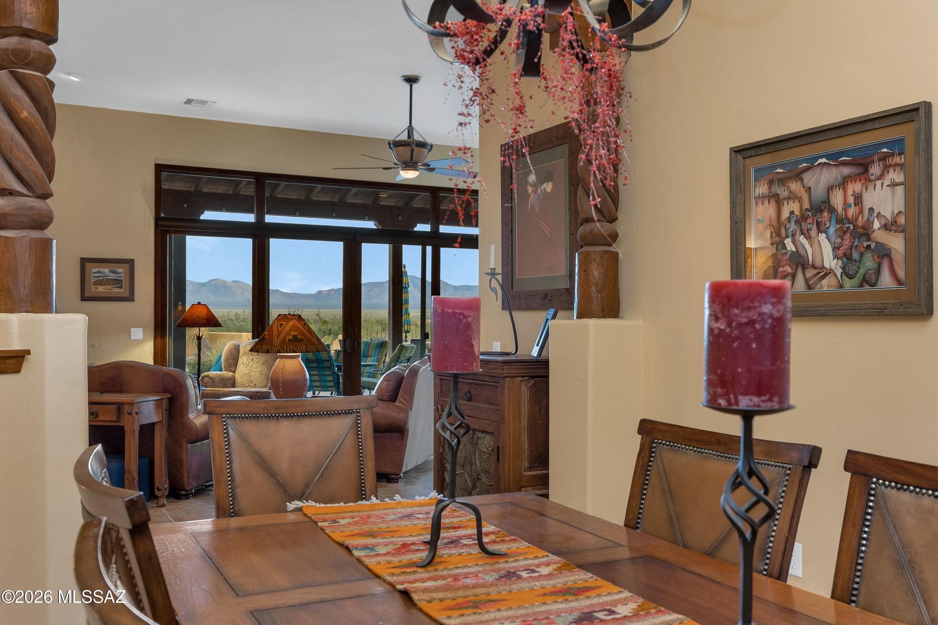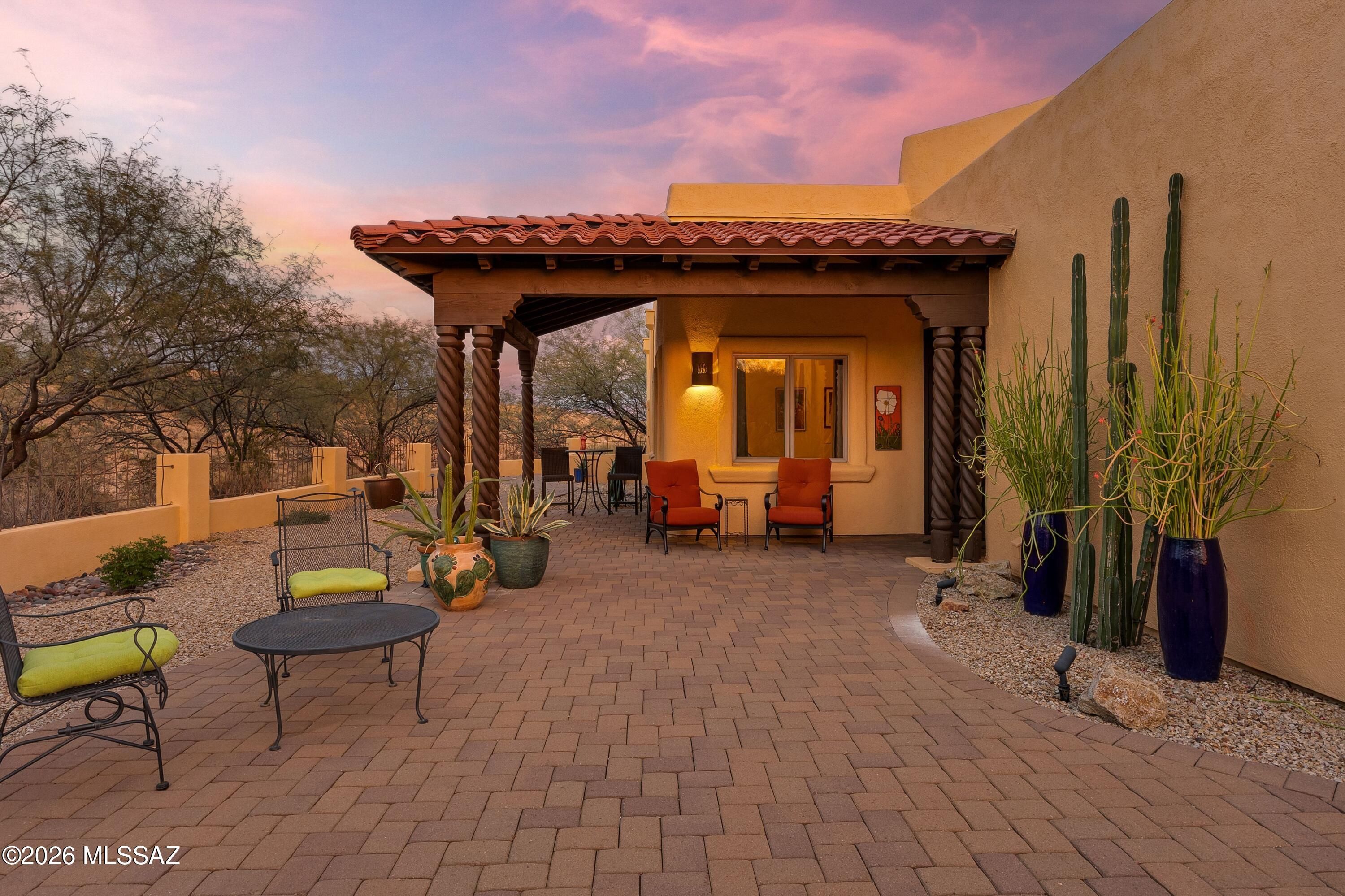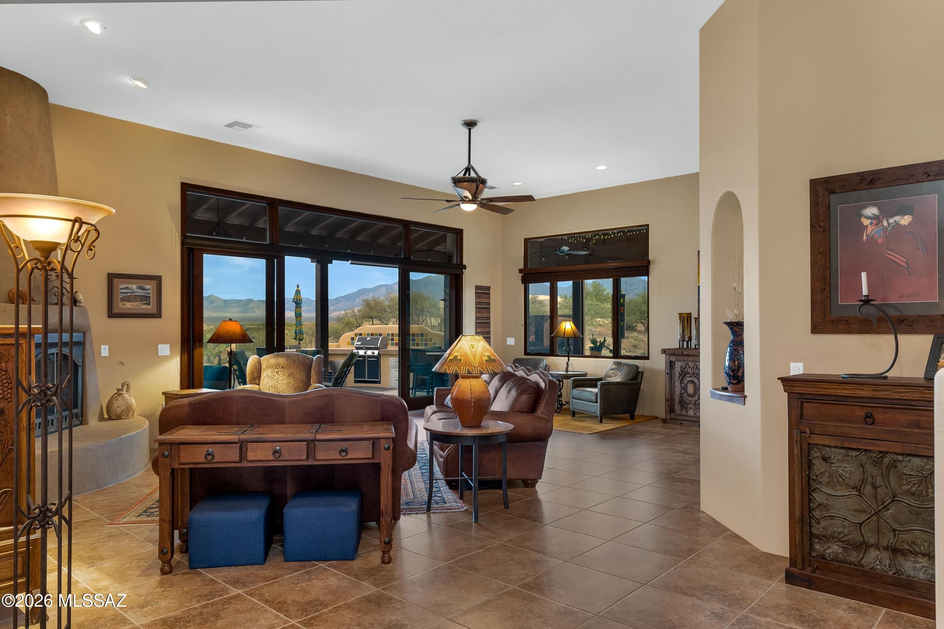 Nestled in the heart of Southern Arizona's magnificent high desert, this stunning estate offers an extraordinary canvas for the life you've been imagining--where every day feels like a celebration of natural beauty, cherished connections, and the art of gracious living. The property's dramatic setting is nothing short of breathtaking. Sitting high on a hill, sweeping vistas stretch endlessly across pristine desert landscapes, while the majestic Santa Rita Mountains paint an ever-changing backdrop of purples and golds. Deep arroyos carve through the terrain, and the wide-open Arizona sky transforms from brilliant blue to star-studded black each evening. This home was designed for those who understand that life's best moments happen when we blur the boundaries between inside and out.