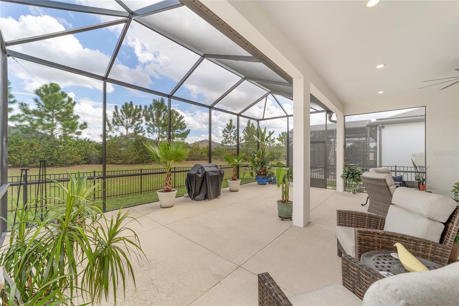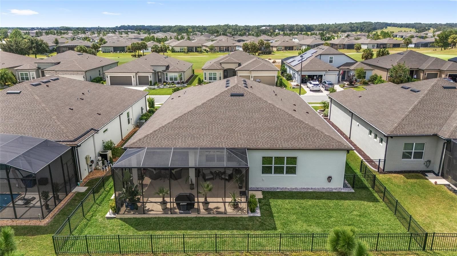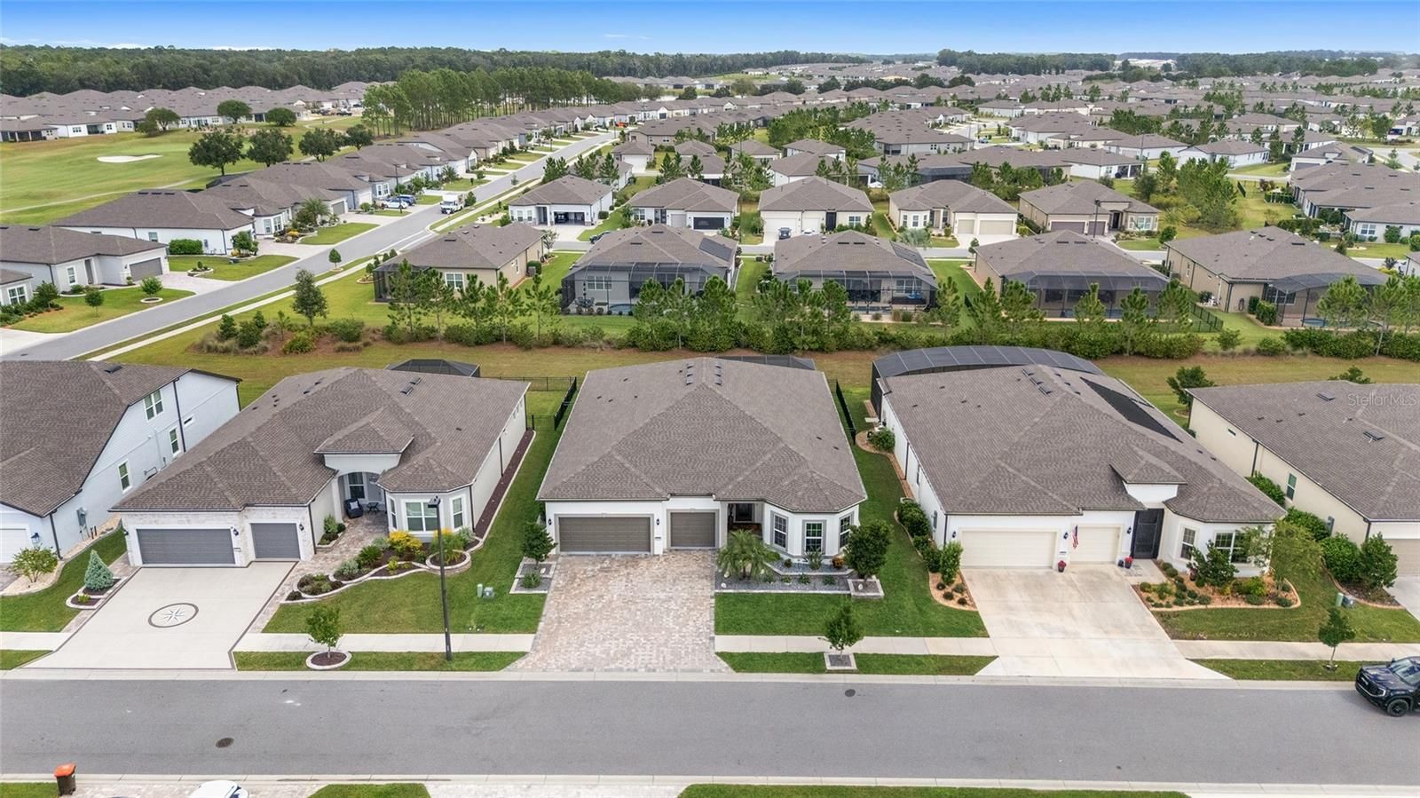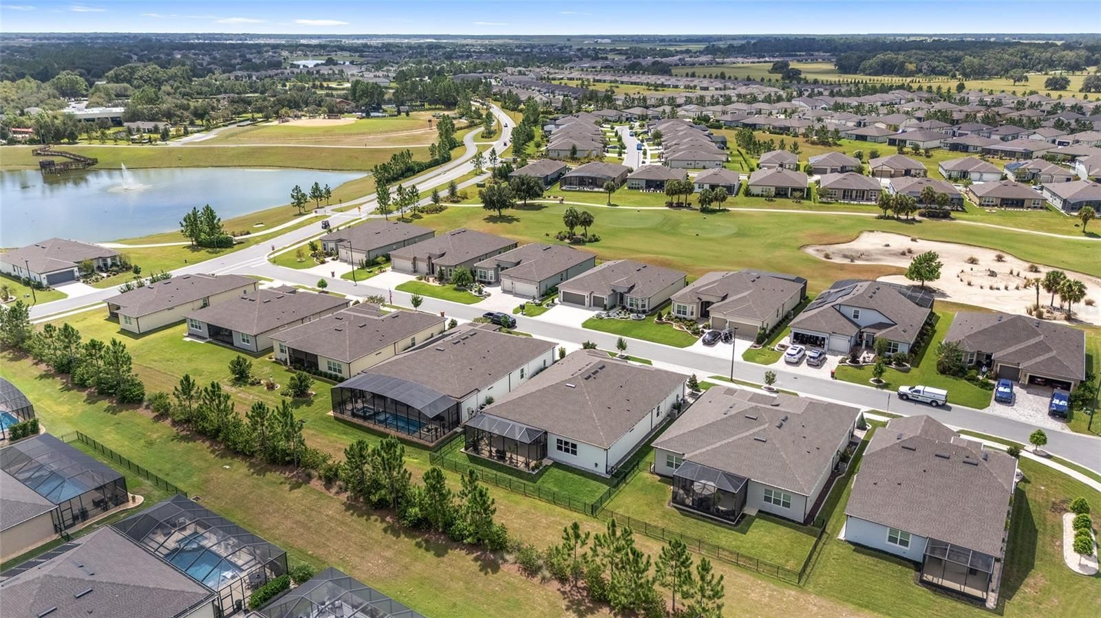 Welcome to a meticulously crafted Renown model home, offering a balance of luxury, comfort and efficiency in the sought-after, 55-plus community of Del Webb Stone Creek. This three-bedroom, 3.5-bath residence, spanning 2,808 square feet of living space, is a showcase of modern living and thoughtful design. From the moment you enter, a striking paver driveway and Florida-friendly low-maintenance landscaping sets the tone for the elegance that awaits. Go inside and discover a home designed for effortless living. The open-concept layout features a grand gathering room with a tray ceiling and crown molding. Offset floor tile flows seamlessly through the main living areas and baths. The enclosed flex/den space offers the versatility to be a home office or cozy reading nook. Sophisticated touches throughout the home include rounded drywall corners, a custom stone built-in fireplace/entertainment wall, and custom window treatments. The heart of the home is the kitchen, which features upgraded quartz countertops, a built-in KitchenAid cooktop/oven and convection microwave, touchless kitchen faucet, and a counter-depth LG ThinQ French Door refrigerator, creating a space that is beautiful and highly functional. The luxurious owner's suite is a retreat boasting custom-built closets in the bedroom. Go in the bath into a spacious Roman walk-in shower with dual handheld showerheads and stunning granite countertops. Outdoor living is enhanced by an extended screened-in lanai complete with a privacy wall and mounted TV, offering a serene space to sip your morning coffee or enjoy the sunrise and nature. The home's design allows for a unique pass-through laundry room from the garage to the auxiliary closet and primary bath, offering an incredibly practical feature for an active lifestyle. The garage includes a custom built-in storage system. Del Webb Stone Creek is more than a community, it’s an experience. Enjoy a wide array of amenities, including a championship golf course, a multipurpose path for walking and biking, and a relaxing and inviting atmosphere. Whether you’re booking your calendar full of activities or snuggling in with a good book, this home and community have everything you're looking for.