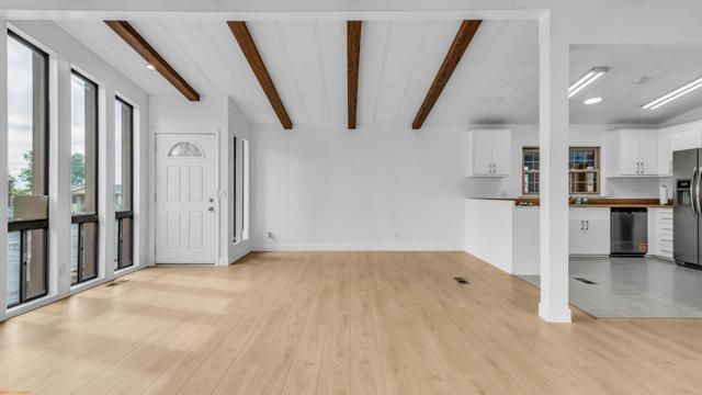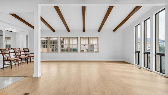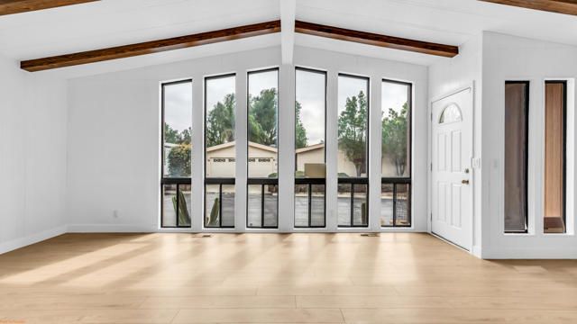 This unique manufactured home built in 1980 is located on a desirable corner lot inside the Mountain Springs 55+ community, where you own the land and enjoy low HOA dues. The home features 2 bedrooms and 2 bathrooms plus an additional bonus room that can be used as a third bedroom, office, or flex space. High ceilings with beautiful wood beam accents add character and warmth throughout the living area, and the home offers an abundance of natural sunlight through its beautiful windows. The interior has been freshly painted, new floring and features upgraded bathrooms along with a private laundry room for added convenience.The exterior offers excellent functionality with two separate vehicle entrances, a garage, and a gated access point. The property is fully fenced, making it ideal for dogs or pets and providing added privacy. This one-of-a-kind home combines charm, space, and convenience in a peaceful community setting.The property may qualify for financing. Seller will verify if the home has a 433A permanent foundation and engineer certification.Residents of Banning Estates enjoy a variety of community amenities including a clubhouse, pool, tennis and pickleball courts, shuffleboard, and active social clubs. The community also offers exceptionally low HOA dues and no space rent since you own the land. This move-in ready home is ready for its next owner--an excellent opportunity you won't want to miss.