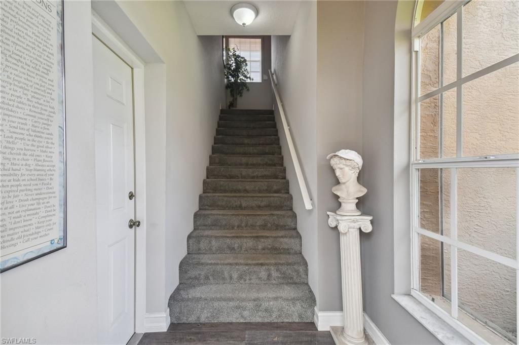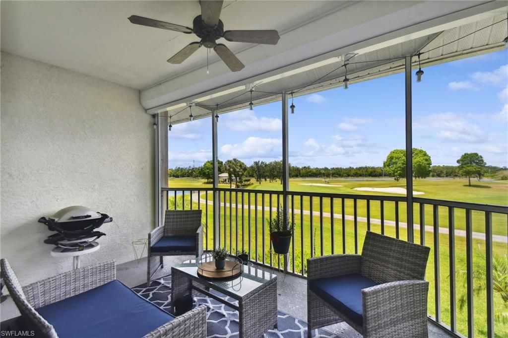 MEMBERSHIP TO THE PLAYERS CLUB IS NOT MANDATORY at this rarely available 3/2 TOWNHOUSE in Aquamarine at Sunstone in Lely Resort on 1,617 sq ft under air with long views over the 13th green, fairways and lakes of the semi-public Lely Mustang Golf Course. This SW exposure unit is very private without any Lely Resort car traffic. Remodeled kitchen, bathrooms and flooring. Jacuzzi tub in master bedroom, a stylish electric fireplace, high ceilings, a large screened balcony, and a one car ATTACHED garage is also included in this 2nd floor home. Plenty of guest parking spaces available. The pool is just a short stroll away. Aquamarine's 36 total units are well managed and enjoy the lowest HOA fees in Sunstone. Starbucks, several new restaurants, Publix and Fresh Market are just a short stroll away. Lely Resort has two semi-public golf courses and the additional private Classics Golf Club; almost 100 miles of bike and path walks; as well as a dog park. 5th Ave South elegant restaurants and boutiques, Marco Island and the Beaches are just 15 minutes away.
