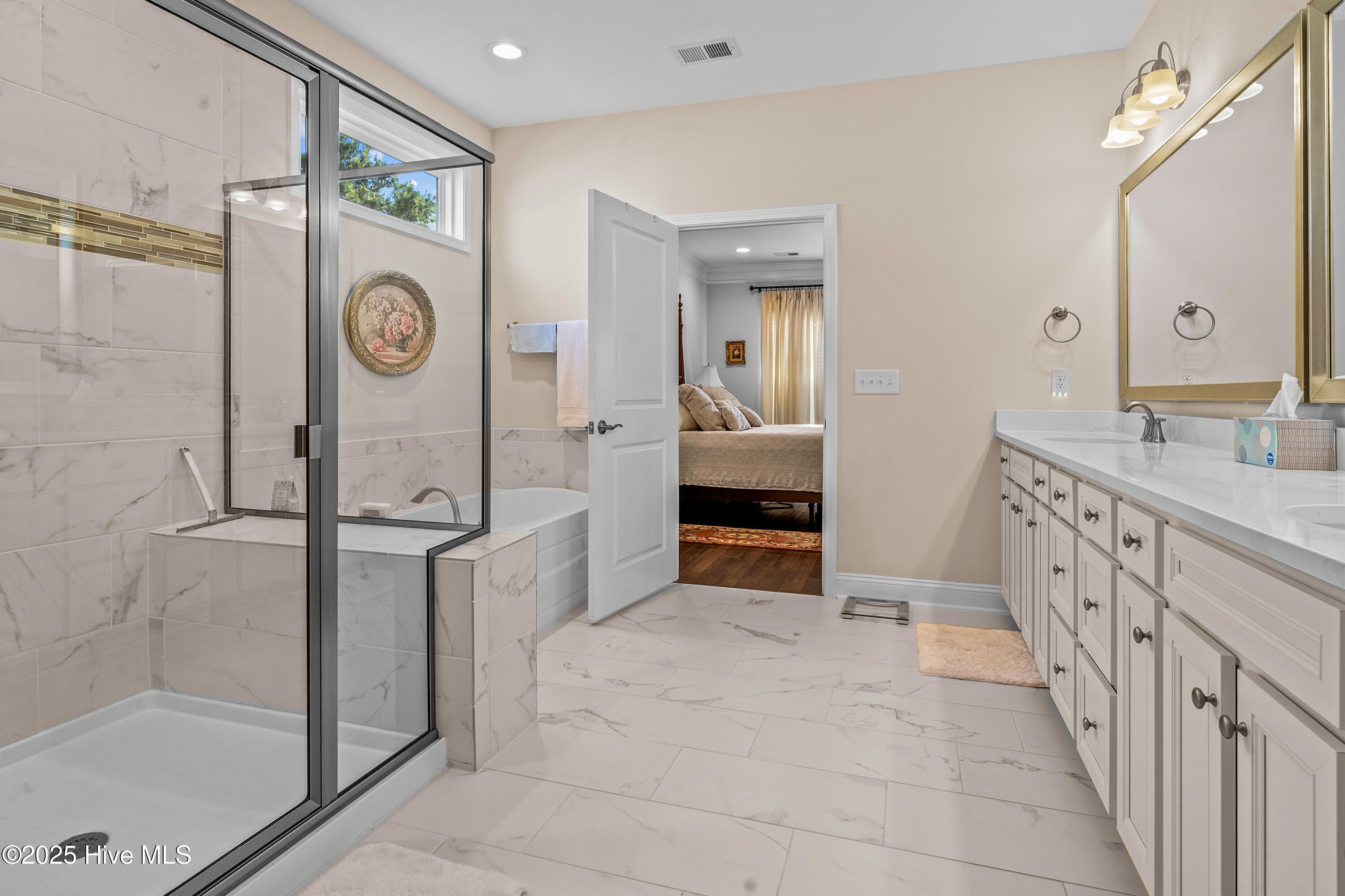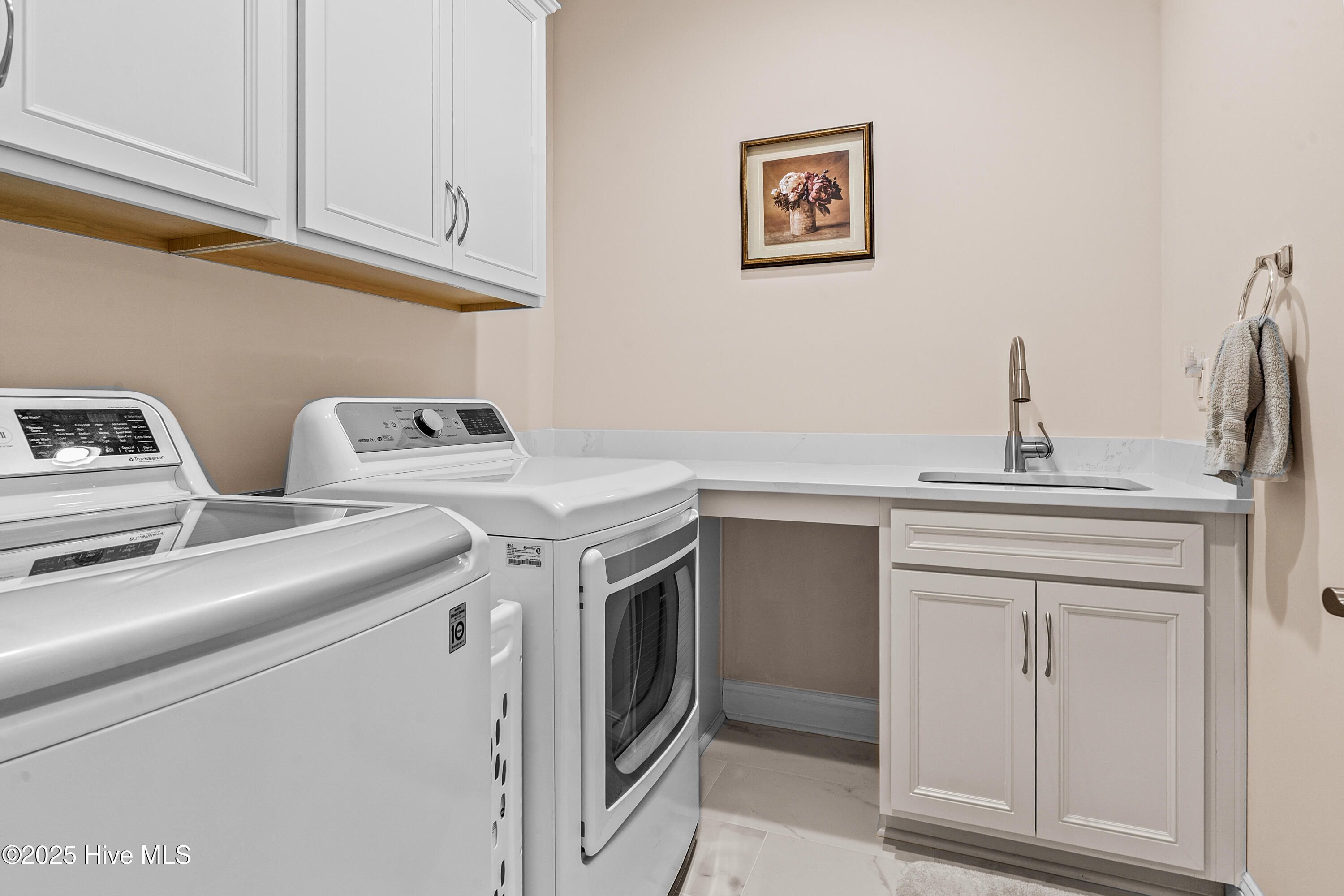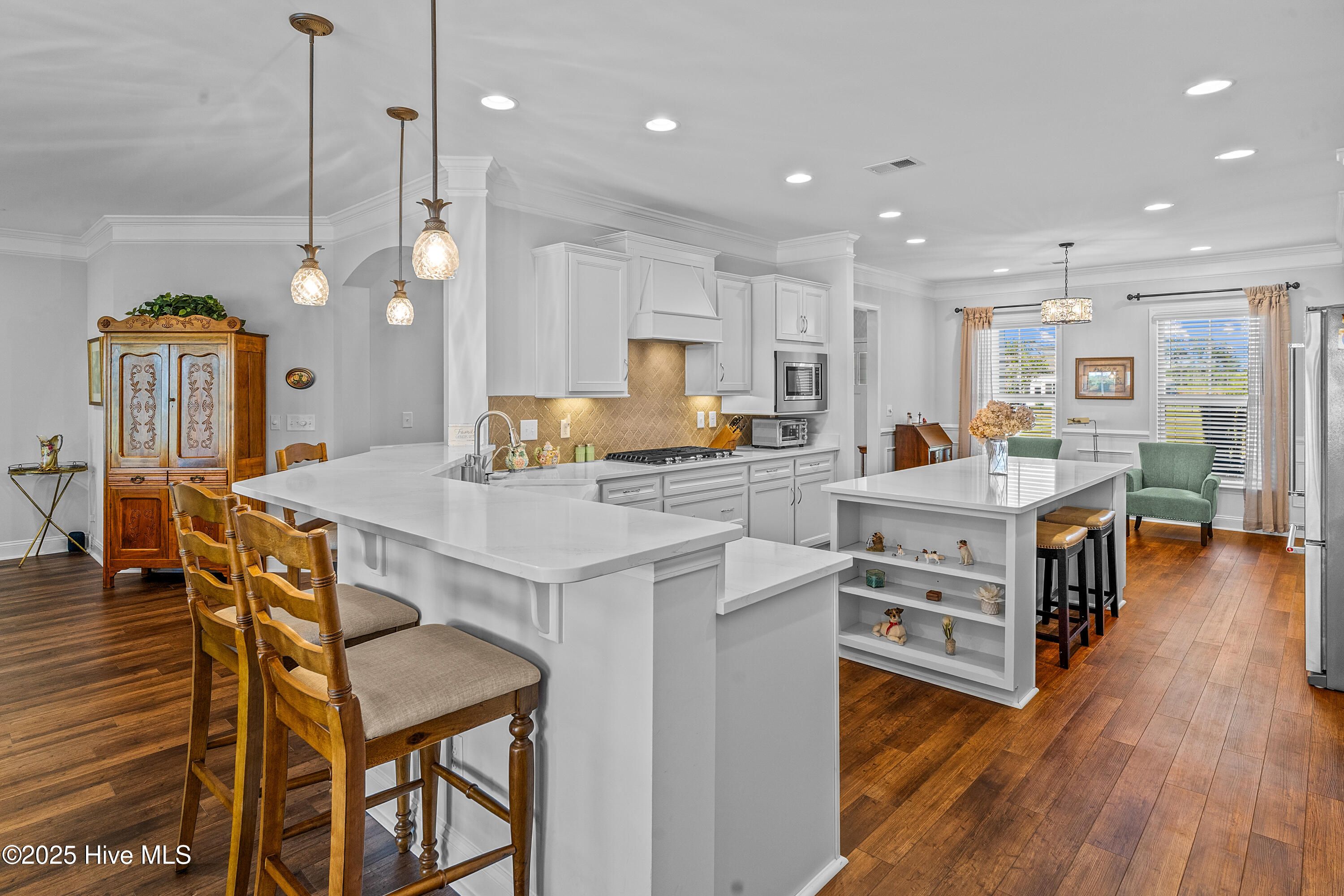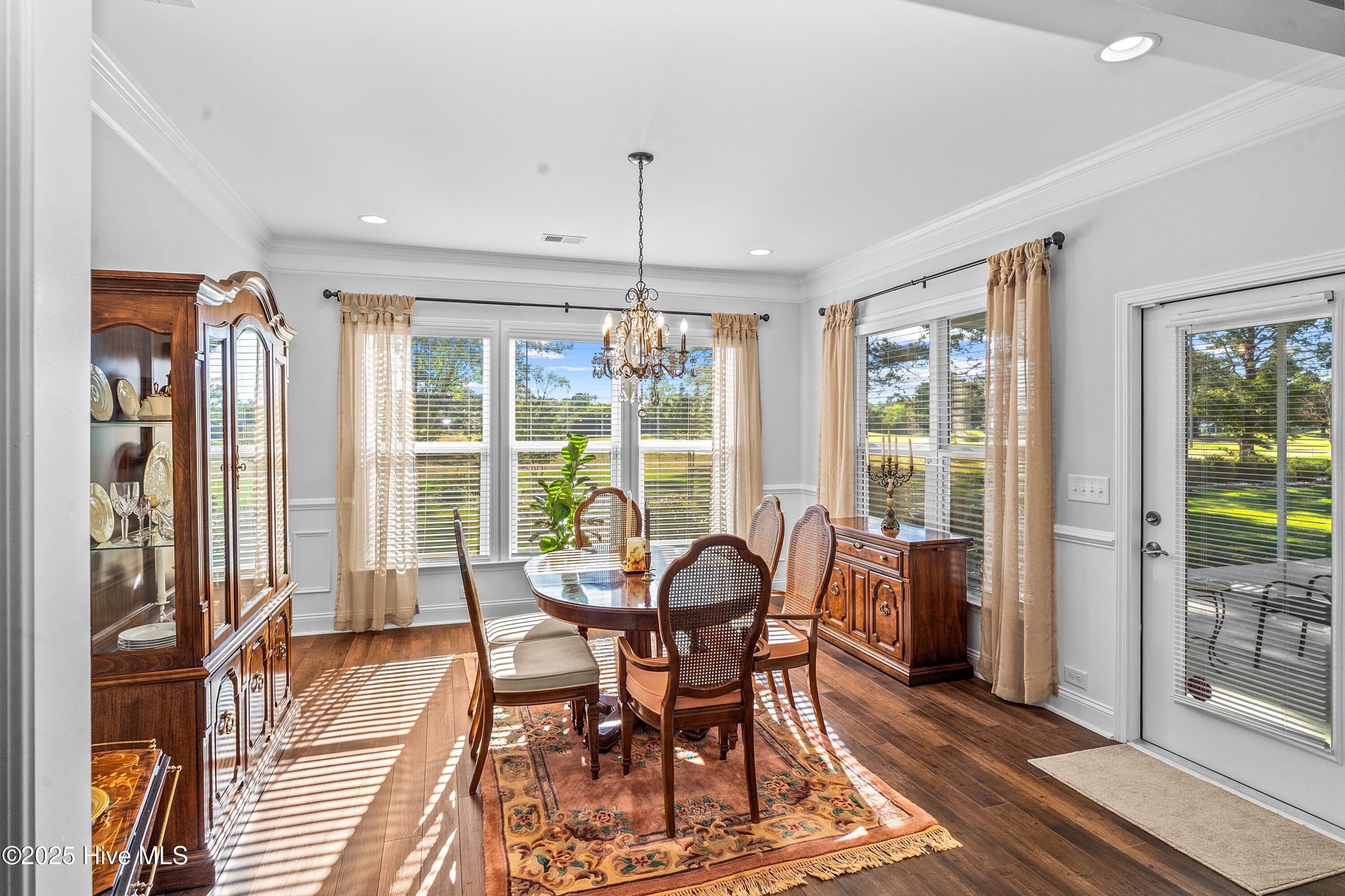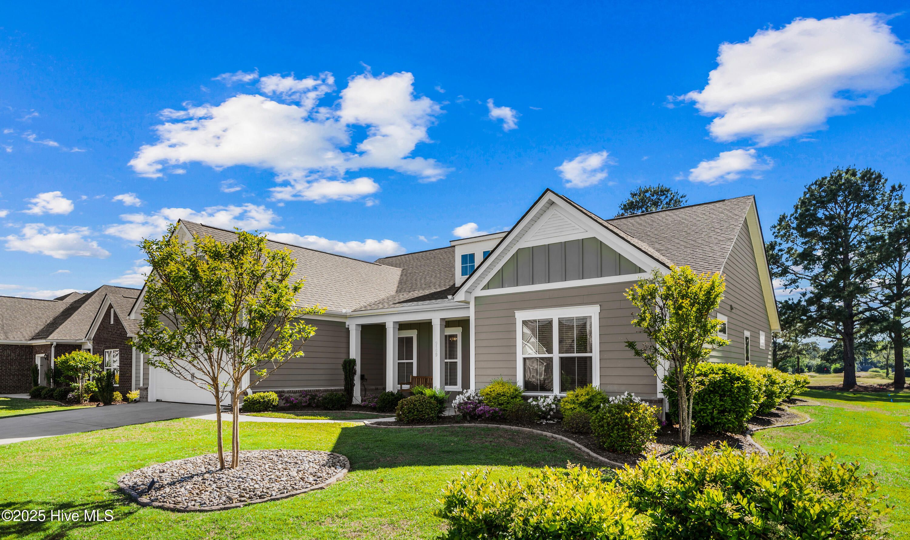 Welcome to this beautifully crafted home in the prestigious, gated Crow Creek Golf Course community. Featuring 3 spacious bedrooms, 3 full bathrooms, and a neutral color palette throughout, this home offers refined living with versatile spaces. A highlight is the private in-law suite, complete with a large walk-in closet and a walk-in shower—ideal for guests or multi-generational living. At the heart of the home is a chef's dream kitchen. This extra-large space boasts premium KitchenAid stainless steel appliances, a propane gas cooktop, double oven, quartz countertops, a ceramic farmhouse sink, a generous island perfect for entertaining, and a spacious walk-in pantry. Just off the kitchen, a convenient drop zone with built-in shelving helps keep daily essentials organized. Thoughtfully designed with convenience and efficiency in mind, this home includes approximately 50 pocket lights throughout the interior and porches, outlets in large closets, and a radiant barrier roof sheathing for enhanced energy savings. The oversized laundry room includes a sink and ample folding space to make everyday chores easier. The garage is a standout feature—boasting an epoxy-coated floor, space for golf cart parking, 13 electrical outlets, and a walk-up dedicated storage area over the garage, offering ample room for tools, hobbies, and seasonal décor. Enjoy year-round relaxation in the sunroom and screened porch, both offering serene views of the lush 9th fairway. Whether it's morning coffee or winding down in the evening, these spaces provide the perfect backdrop for golf course living. The luxurious primary suite offers a spacious retreat, featuring a spa-like en suite with a garden tub, walk-in shower, and an expansive walk-in closet. Minutes from downtown Calabash, Sunset Beach, Ocean Isle Beach, and a short drive to North Myrtle Beach, this home blends luxury, comfort, and coastal charm. Community amenities outdoor pool, clubhouse, pickleball and more.
