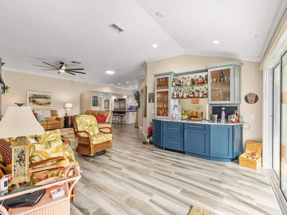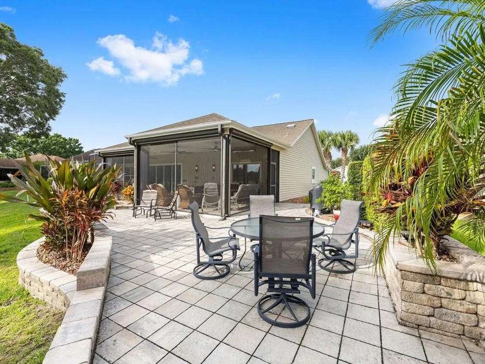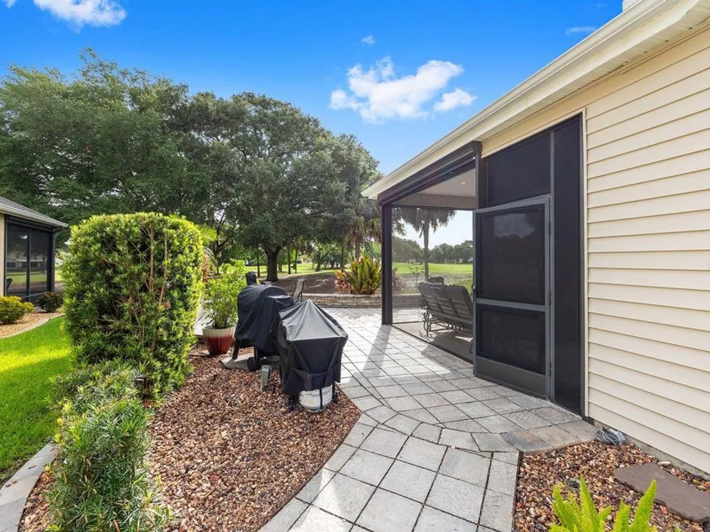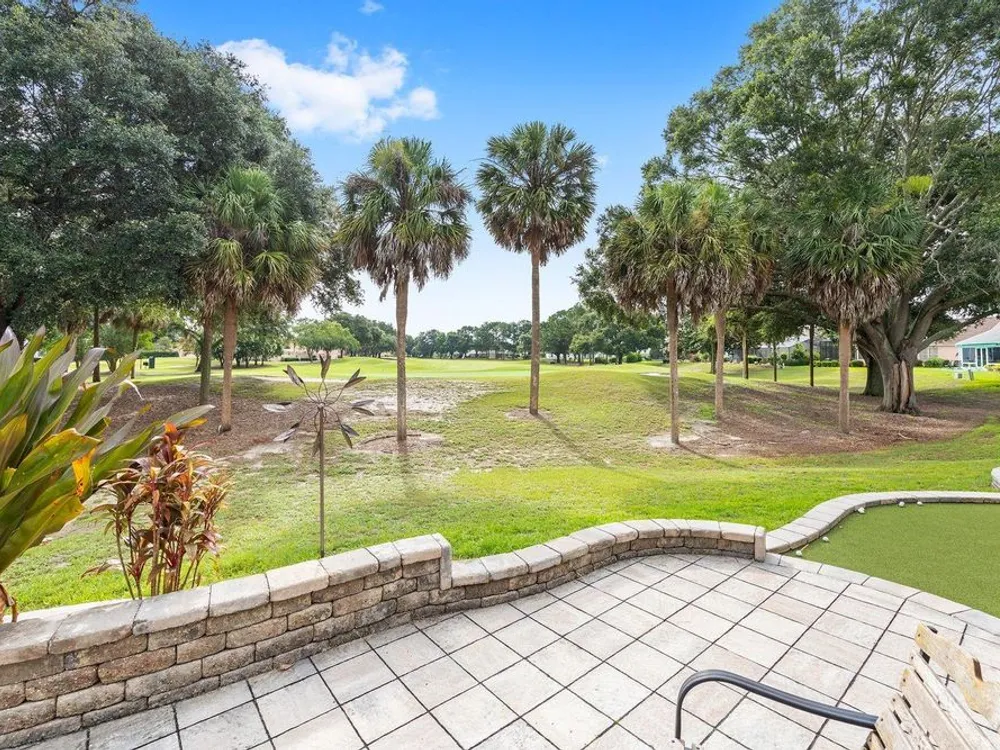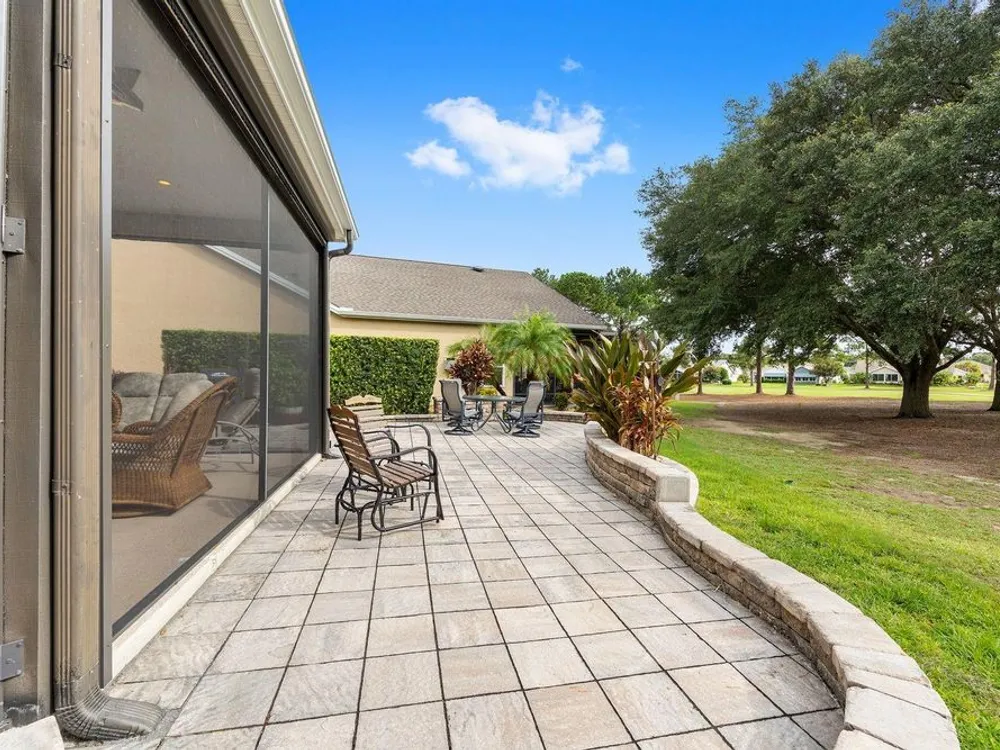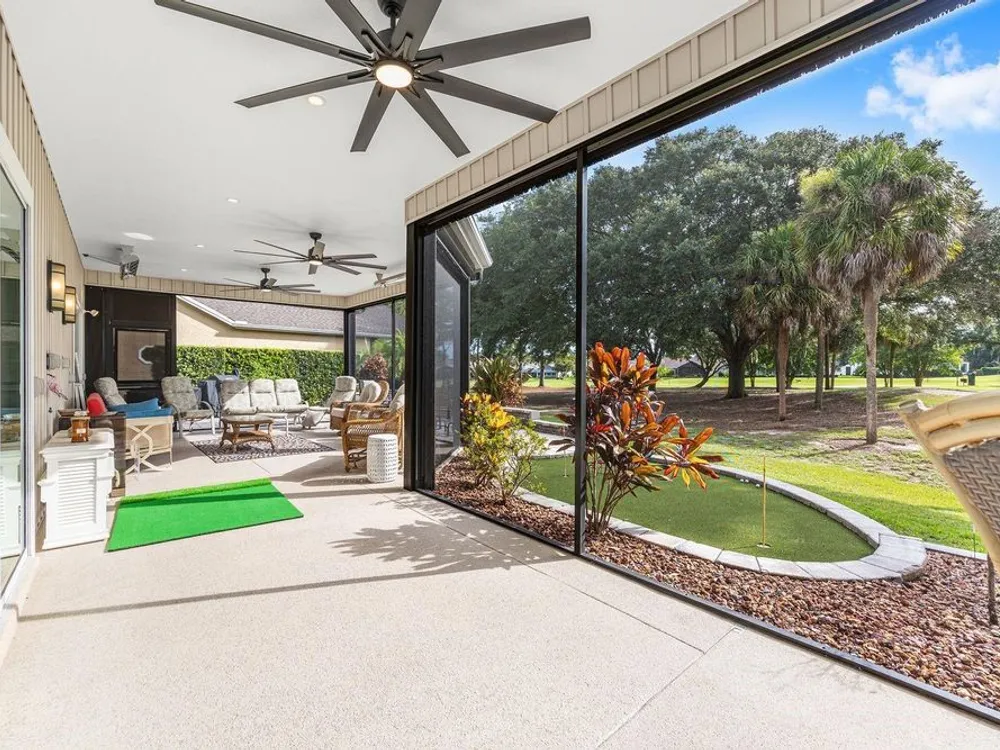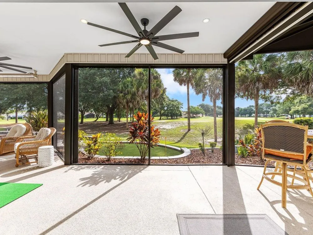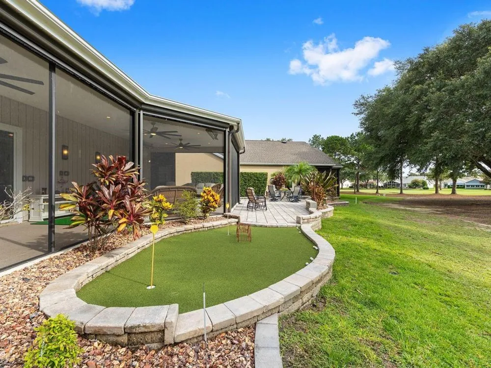 Beautifully Remodeled and Redesigned golf front home with superb updates and upgrades throughout the interior and exterior. This is not a cookie-cutter home. Dare to be different! Room for a pool. This is the dream home you have been waiting for. From the curb you see the mature landscaping and the expansive paver driveway and walkway to the front door. Don't miss looking inside this home. Your eyes are immediately drawn to the beautiful and serene golf course view of the full #7 fairway of the Hacienda Lakes Course through the extra height 4 panel stacking sliding glass door. A view you can't resist! Progressing past the entryway, you are greeted by the spacious living room with dry bar hosting 2-drawer refrigerator, pull-out shelves in the cabinets, storage for all your glasses and beverage accessories. To the left is recently redesigned and remodeled eat-in kitchen with all Pull out drawers and soft close doors as well as LED lighted cabinets. An incredible kitchen island, top-tier appliances including Electrolux Icon 32' Freezer and 32” Refrigerator w/custom double vent, GE Monogram Cafe' doors convection oven and GE Monogram induction cooktop with Wolf power ventilator/light. The kitchen island countertop is custom powder coated metal from Arkansas and hosts an abundance of storage with pull out drawers. There is a separate coffee bar with water hook-up for your convenience. Entering the Primary bedroom enjoy 10 ft high closet storage with double hanging and additional shelves for storage. The Primary bathroom has double sinks with storage tower between them. Custom large glass enclosure shower. Enjoy the privacy of a split floor plan with the guest bedrooms across the living room. Guest bedroom 1 has a closet. Guest bedroom 2 has a space for a closet or could be converted into a large work space w plantation shutters. The oversized interior laundry room has plenty of space for storage and large laundry sink. The garage is an extra deep 2 car garage with an additional 3rd stall golf cart garage/shop space. Want outdoor living? How about outdoor living with Twin Eagles grilling station and soft close stainless steel cabinets, Twin Eagles ceiling mounted electric radiant heaters for the cool nights, additional power sunscreens over the entire lanai. Visitors will enjoy the putting green and outdoor patio space or just relaxing with their favorite beverage while watching the golfers on the green. Stunning sunrise view with a variety of pine, palm, and oak trees. Close proximity to the multi modal path available on the other side of the golf course. Click on the virtual tour link for a walk through look.