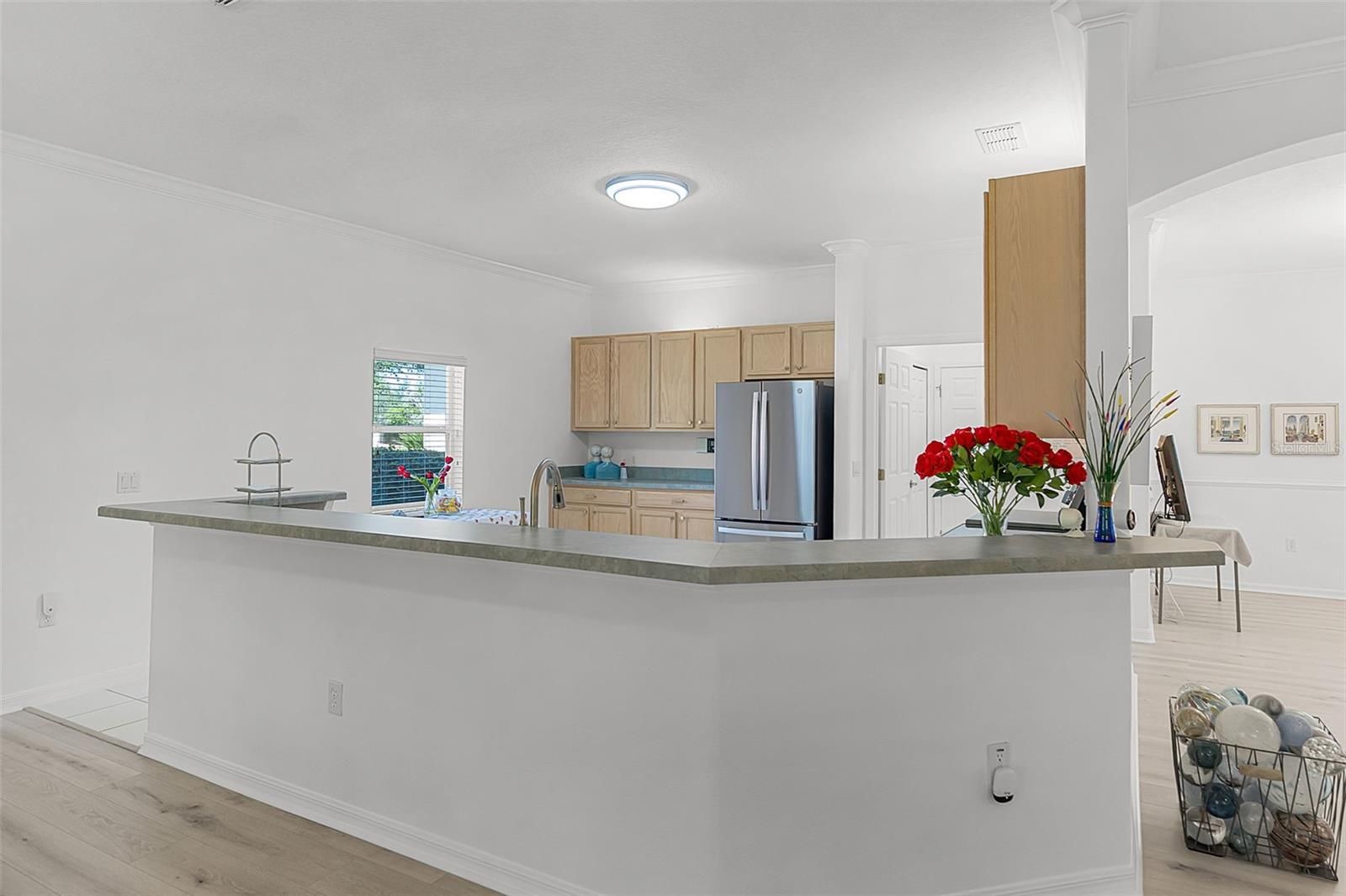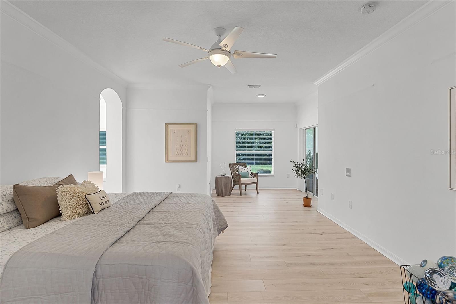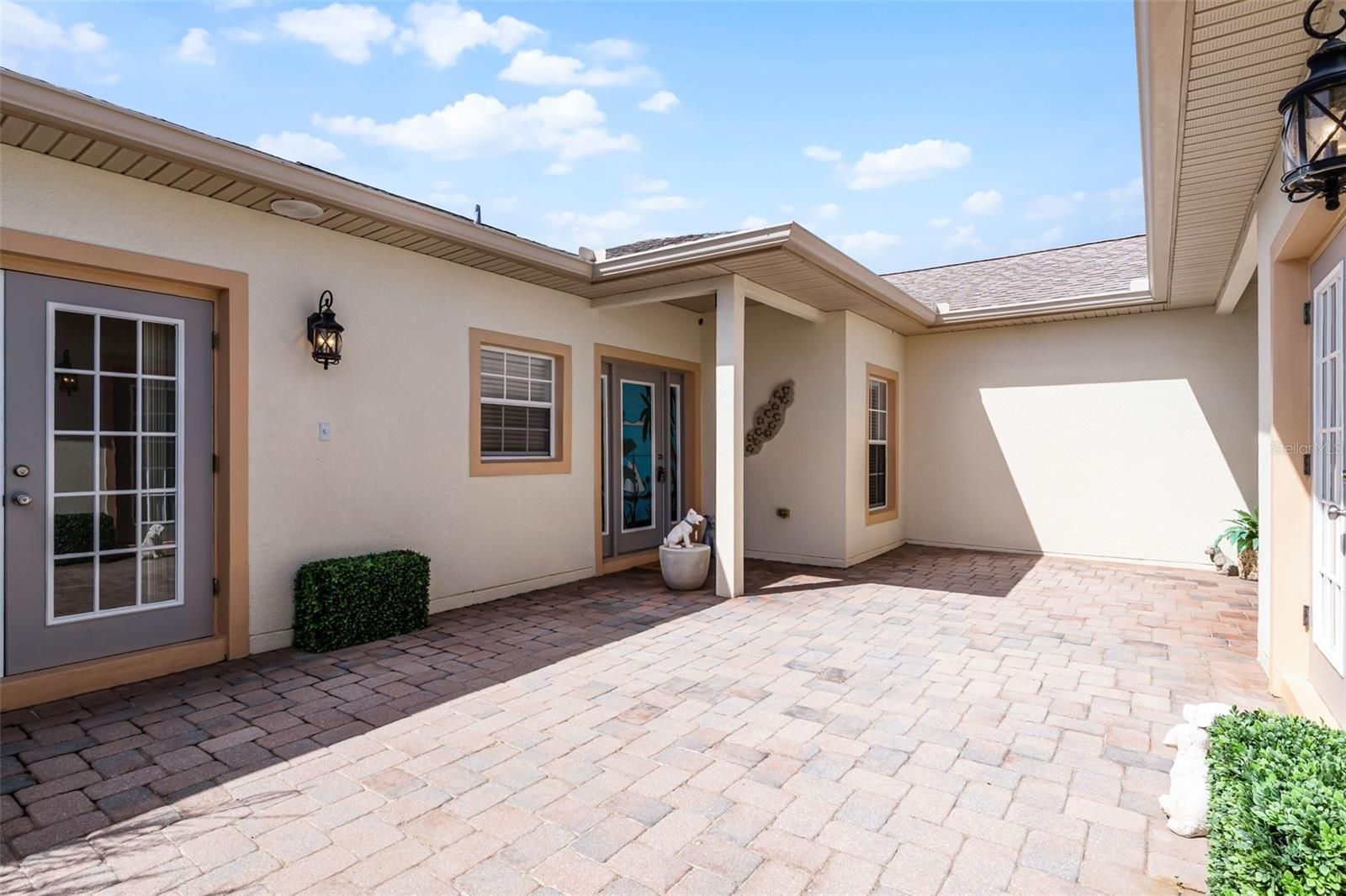 BRAND NEW PHOTOS FOR BRAND NEW UPGRADES! These new water-resistant Laminate floors have transformed this home to truly show like a model! This home is located on one of the most private and spacious lots in the premier gated 55+ community, Solivita, a Community which was designed for active, inspired living. This stunning BOLERO model sits on nearly 1/3 acre with panoramic conservation views and offers the perfect blend of privacy, space, and style. Featuring 3 bedrooms (including a private Casita), 3 full bathrooms, and an oversized 3-car garage with over (20) feet of built-in storage. This home was designed with comfort and entertaining in mind. An extremely large brick-paver driveway accommodates 8+ cars, perfect for welcoming guests including a private parking spot right next to the Casita. The entry gates lead into the large paver courtyard which permits access both the Main House and Casita. The Main House has a bright, open floor plan with new LVP flooring throughout and two 9' - 3-panel sliding glass doors that frame the lanai and serene conservation views. The spacious kitchen, one of the largest layouts in Solivita, boasts brand-new stainless-steel appliances (2025), generous counter space, and a seamless connection to the dining, living and den areas. The Casita features a large, bright open space, with a walk-in closet, linen closet and large full bathroom. There is easy private access to the Casita from the French-door located in the front courtyard. The oversized brick-paver lanai with custom vinyl windows can be easily opened to enjoy Florida's breezes or closed for year-round comfort. Surrounded by mature landscaping and nature, your backyard is a private oasis. The Owner's Suite offers a sitting area, two walk-in closets with custom California type shelving, and a spa-like bath with dual vanities, a soaking tub, and a separate shower. The Casita serves as one of the three bedrooms, complete with its own entrance and full bath, large walk-in in closet, linen closet all ideal for guests, hobbies, or a home office. Additional highlights: Luxury 3-car garage with custom shelving, workspace, and water treatment/reverse osmosis system. Secondary bedroom with private bath. Laundry room conveniently located near the garage entry. Enjoy Solivita's unmatched lifestyle amenities: 14 heated pools plus indoor pool and walking track, Fitness centers, pickleball, tennis, and golf. 250+ clubs, on-site dining, and social eventsLocated just 30 minutes from Disney and Orlando's top attractions, and minutes from the new Poinciana Lakes Plaza with shopping, dining, and multiple services. Experience the perfect mix of privacy, space, and resort-style living. Schedule your private showing today!