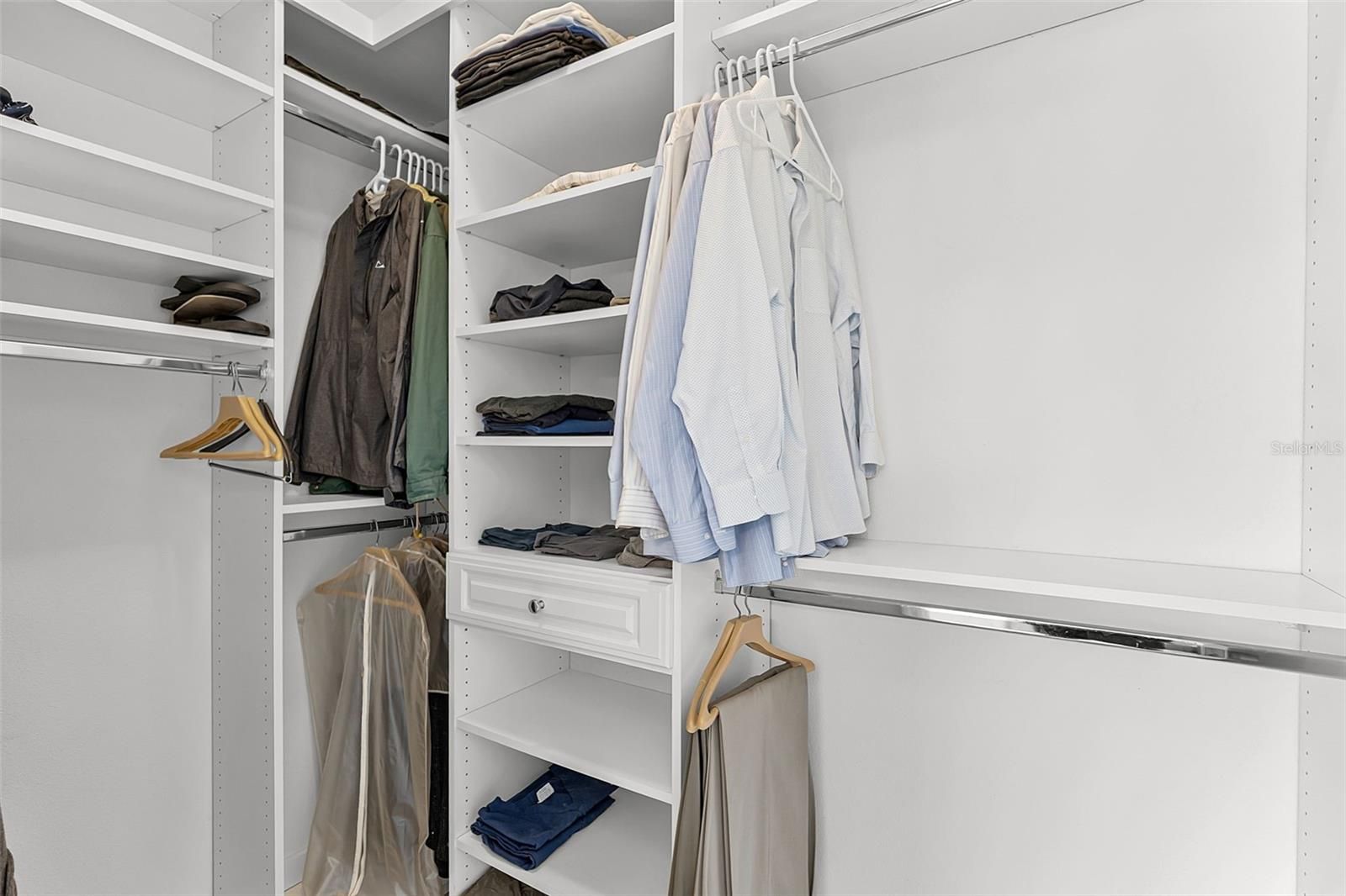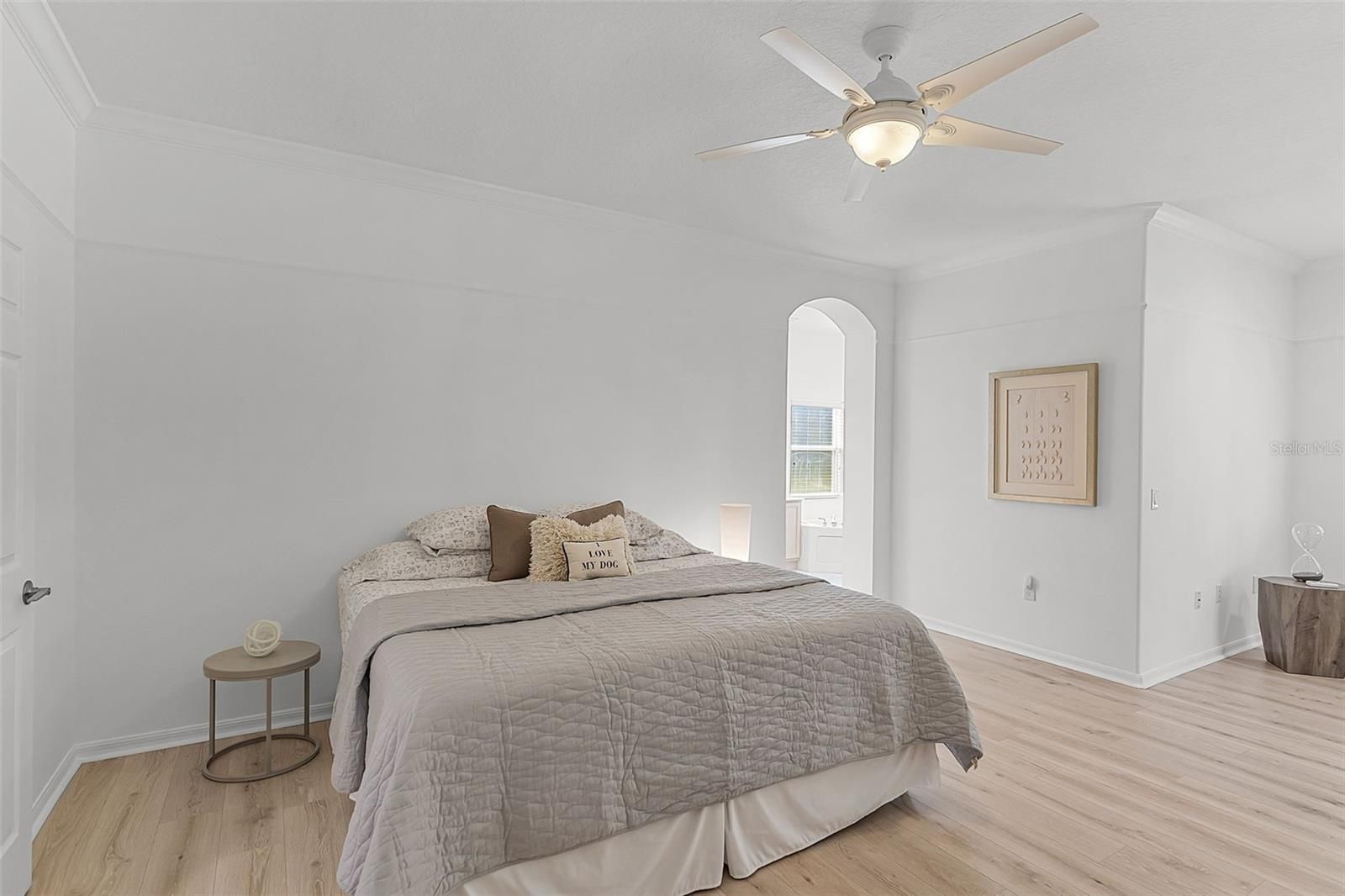- Ceiling Fan(s), Eat-in Kitchen, High Ceilings, Open Floorplan, Other, Main Level Primary, Solid-Wood Cabinets, Split Bedrooms, Thermostat, Walk-In Closet(s), Window Treatments