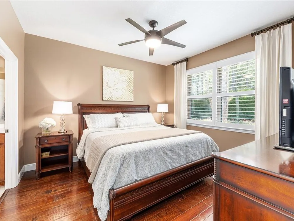 Experience carefree living with a dedicated Guest Suite for visitors in this rare Noir Coast model, complete with a bonus second story overlooking serene and private nature berm views. Nestled in the quiet Santa Fe neighborhood—home to former model residences—this property boasts undeniable curb appeal and the grandeur of a distinguished upper-echelon series home in the gated 55+ Stone Creek golf community. Set on a larger-than-normal .3 acre lot with lush, mature landscaping, this garden series home offers effortless outdoor beauty without the hassle and extra expense of lawn care, irrigation, and landscaping, as those are expertly managed for you. Professionally designed with both style and functionality in mind, this former model home welcomes you with its versatile floor plan and warm accents, featuring low-maintenance tile in the main living spaces and elegant engineered hardwood flooring in the bedrooms and second level. The well-appointed kitchen includes a cozy dining nook, recessed LED downlighting, sleek black appliances—complete with a comfort-height dishwasher—and a refined tile backsplash. The living room seamlessly extends to the covered lanai via triple glass sliders, complemented by a retractable screen—perfect for unwinding while admiring tranquil, uninterrupted nature views. Upstairs, the loft space offers an additional bedroom and bath, creating the ultimate retreat for visiting family and friends. This bonus level also serves as a flexible area for a game room, media lounge, or hobby space. The owner's suite impresses with a generous walk-in closet, peaceful nature berm views, and an ensuite bath featuring a step-in shower with a fiberglass surround and a spacious granite-topped double sink vanity. Adding even more appeal, this home is outfitted with a brand-new HVAC system with zone control and enjoys close proximity to all community amenities. Stone Creek offers an unparalleled lifestyle with a 24/7 staffed gated entrance, ensuring security and peace of mind. Luxury amenities include heated pools, a cutting-edge fitness center, a spa, hot tubs, and saunas. Stay active with pickleball, bocce, tennis, and a softball field, while a dedicated lifestyle staff curates entertainment, activities, and special events to foster meaningful connections. Just beyond the gates, residents have access to a beautifully maintained golf course, pro shop, and on-site restaurant—ideal for socializing and relaxation. Make your move today and embrace the best of resort-style living!