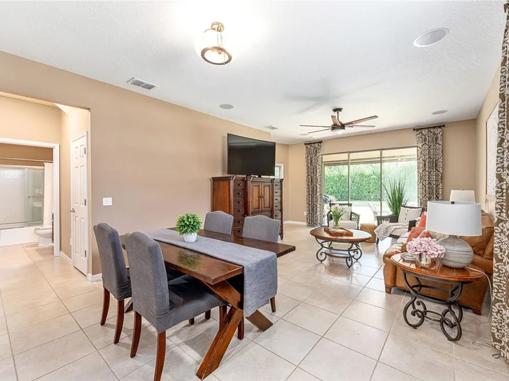 - Ceiling Fan(s), Eat-in Kitchen, Kitchen/Family Room Combo, Living/Dining Room, Open Floorplan, Main Level Primary, Solid Surface Counters, Thermostat, Walk-In Closet(s)