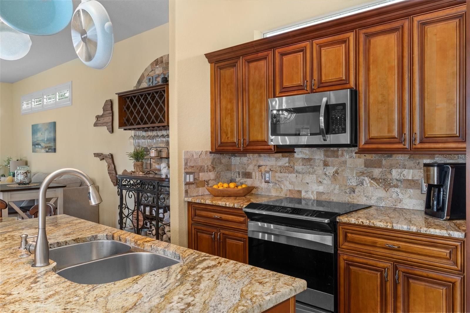 - Built-in Features, Cathedral Ceiling(s), Ceiling Fan(s), Crown Molding, Eat-in Kitchen, High Ceilings, Kitchen/Family Room Combo, Open Floorplan, Solid-Wood Cabinets, Split Bedrooms, Stone Counters, Walk-In Closet(s), Window Treatments