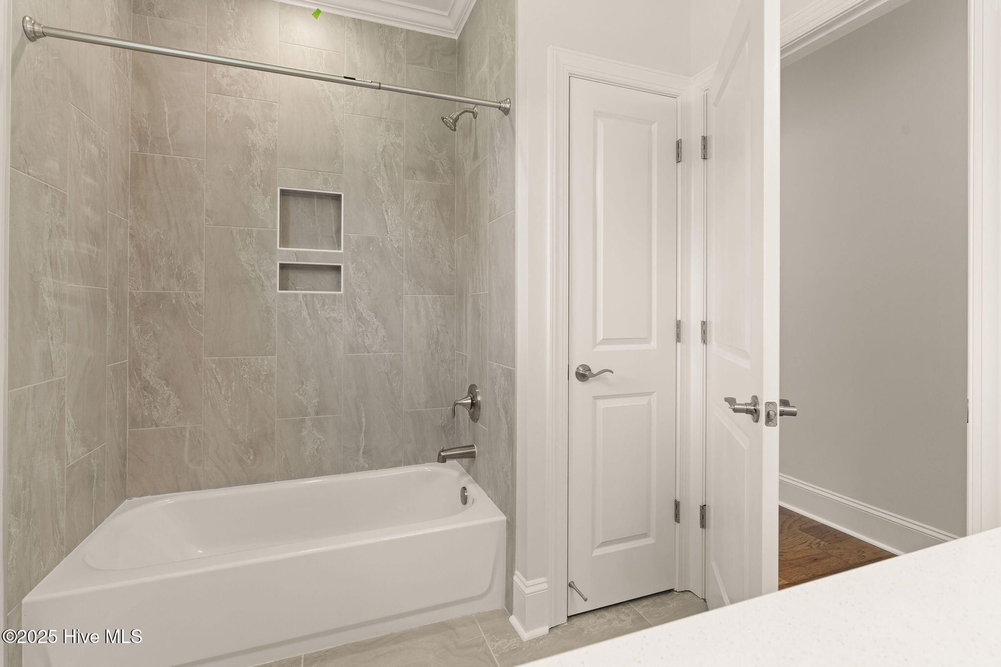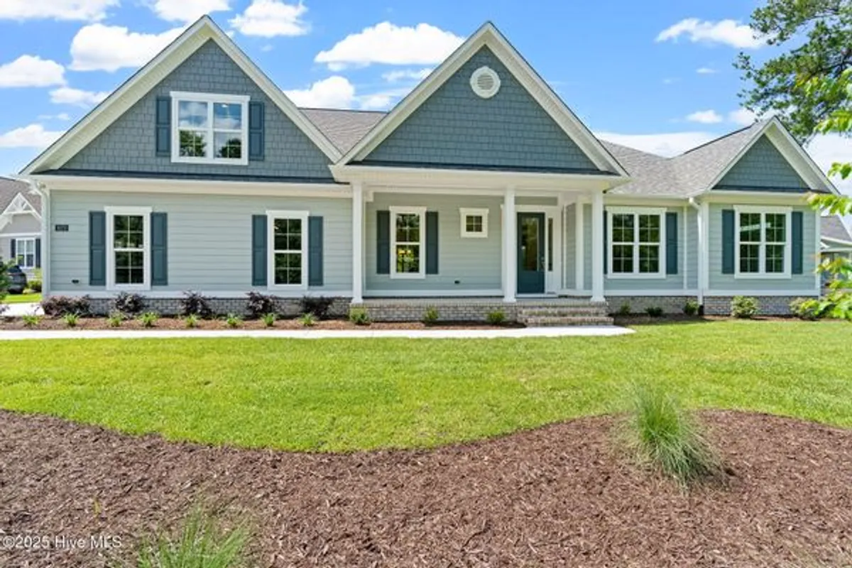 Welcome to the Turtle Cove Plan by Horizon Homes of Wilmington- Where Style Meets Functionality. This thoughtfully designed 3-bedroom, 3.5-bath home features a desirable split-bedroom layout with a first-floor study and a serene screened-in covered back porch. The open-concept living space is anchored by a chef-inspired kitchen complete with a gas range, vented hood, wall-mounted oven, built-in microwave, and a spacious island offering cabinetry on both sides for maximum storage. The owner's suite boasts a luxurious zero-entry tiled shower, while 9' ceilings, crown molding throughout, a cozy fireplace, 7¼'' baseboards, and hickory hardwood flooring add elegance and comfort throughout the home. Upstairs, a generous retreat with a full bath provides a perfect guest suite or second living space. Energy efficiency and smart technology are built-in, including radiant barrier roof decking, Low-E windows and doors, a 15 SEER HVAC system, and WiFi-programmable thermostats. The oversized finished garage is fully insulated and features a belt-driven insulated garage door for added convenience. Located in The Bluffs on the Cape Fear, residents enjoy resort-style amenities including a private beach club with beach access, marina and boat dock, clubhouse, pool, fitness center, pickleball courts, basketball court, playground, dog park, RV/boat storage, and more. All just 15 minutes from historic downtown Wilmington.