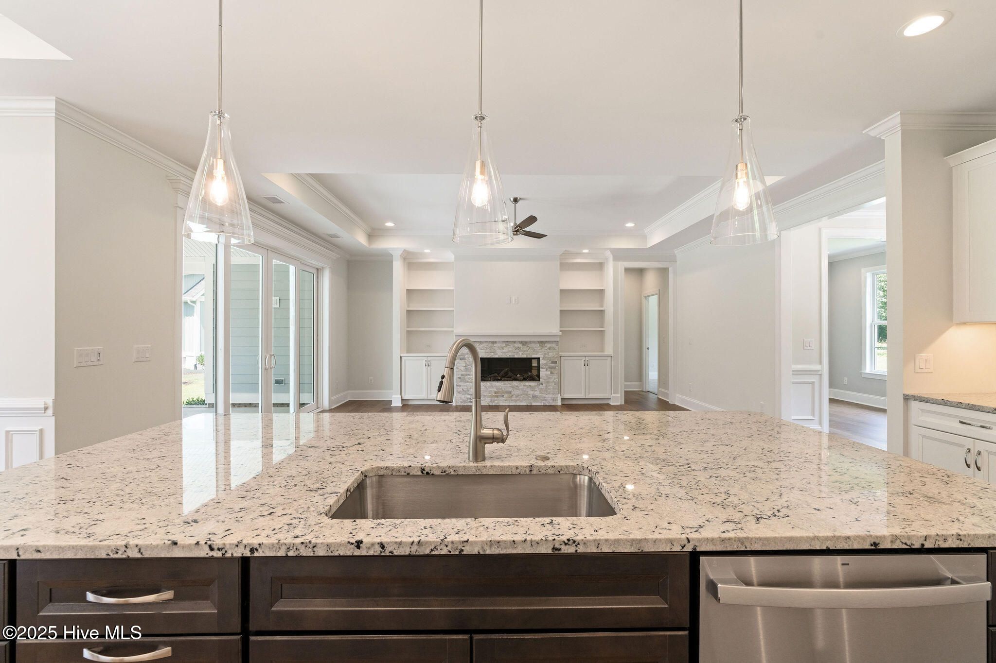 - Master Downstairs, Walk-In Closet(s), Tray Ceiling(s), High Ceilings, Entrance Foyer, Generator Plug, Bookcases, Kitchen Island, Ceiling Fan(s), Pantry, Walk-In Shower, Kitchen/Dining Combo