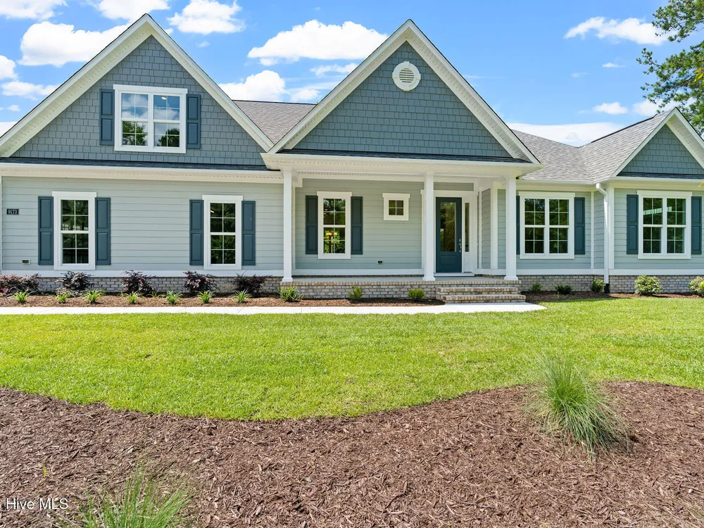 Welcome to the Turtle Cove Plan by Horizon Homes of Wilmington- Where Style Meets Functionality. This thoughtfully designed 3-bedroom, 3.5-bath home features a desirable split-bedroom layout with a first-floor study and a serene screened-in covered back porch. The open-concept living space is anchored by a chef-inspired kitchen complete with a gas range, vented hood, wall-mounted oven, built-in microwave, and a spacious island offering cabinetry on both sides for maximum storage.The owner's suite boasts a luxurious zero-entry tiled shower, while 9' ceilings, crown molding throughout, a cozy fireplace, 71/4'' baseboards, and durable LVT/LVP flooring add elegance and comfort throughout the home. Upstairs, a generous retreat with a full bath provides a perfect guest suite or second living space.Energy efficiency and smart technology are built-in, including radiant barrier roof decking, Low-E windows and doors, a 15 SEER HVAC system, and WiFi-programmable thermostats. The oversized finished garage is fully insulated and features a belt-driven insulated garage door for added convenience. Located in The Bluffs on the Cape Fear, residents enjoy resort-style amenities including a private beach club with beach access, marina and boat dock, clubhouse, pool, fitness center, pickleball courts, basketball court, playground, dog park, RV/boat storage, and more. All just 15 minutes from historic downtown Wilmington.
